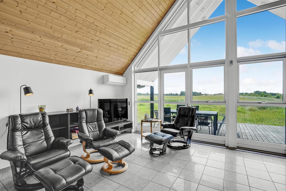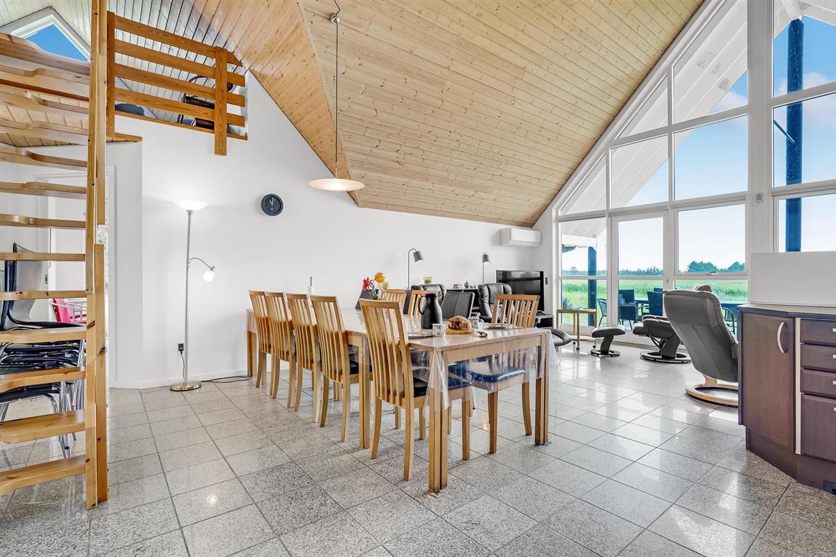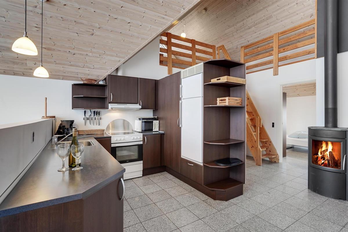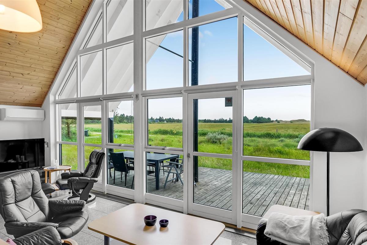 Alle kamers van het waardige en mooie huis zijn voorzien van prachtige marmeren klinkervloeren en vloerverwarming. De grote woonkamer heeft een open dakconstructie en het op het westen gerichte geveldeel zorgt voor een fantastische hoeveelheid licht. Vanuit de open slaapzolders, die deels zijn ingericht als slaapkamers en deels als tv-/speelkamers, kijk je uit over de woonkamer en naar het westen. Er is ook een whirlpool en een sauna waar je helemaal tot rust kunt komen. De buitenruimte nodigt ook uit tot activiteiten op vakantie, zoals barbecues met vrienden en familie.