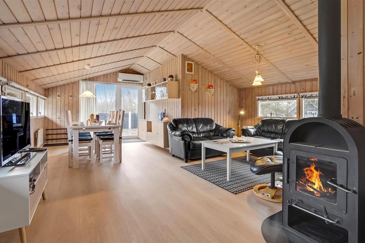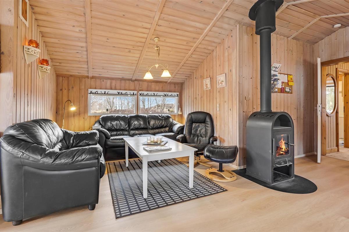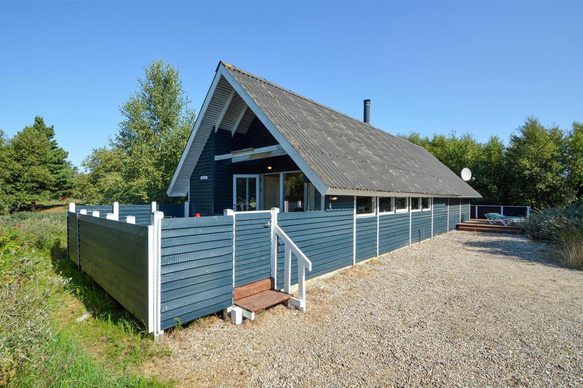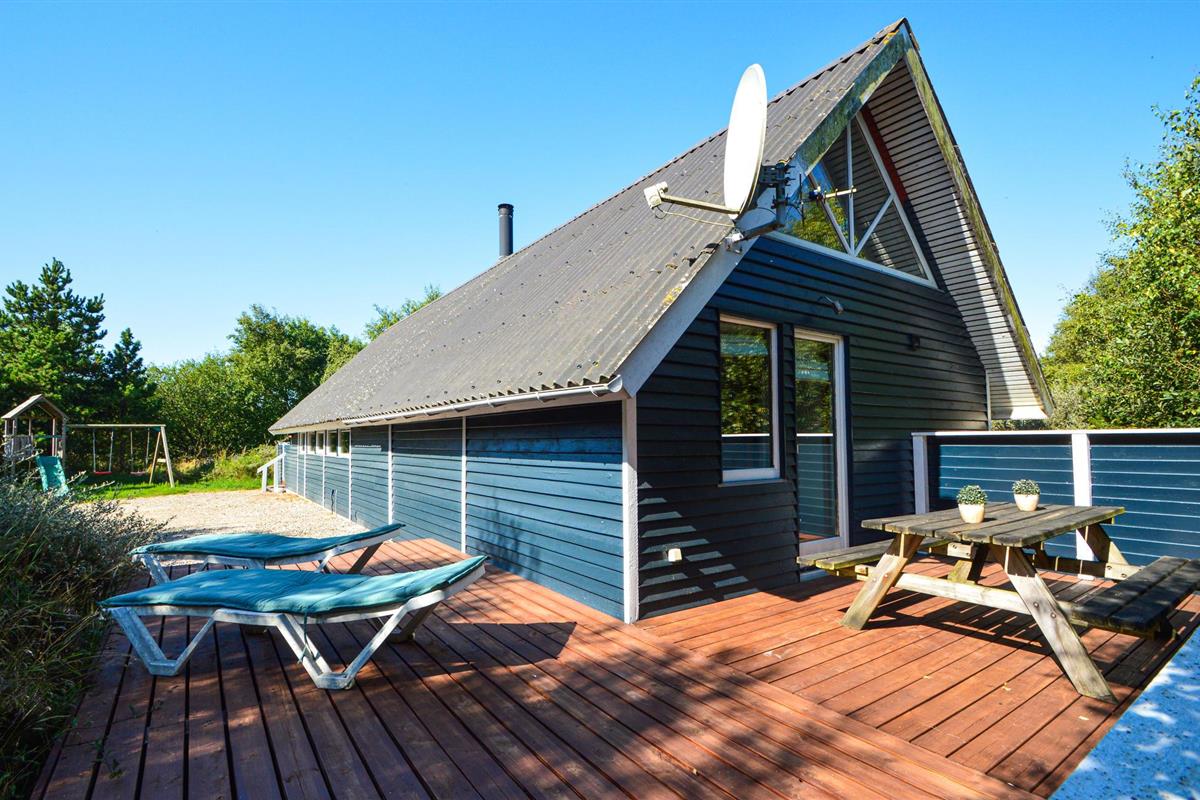 Gezellig houten vakantiehuis in Toftum, omgeven door natuur met sauna, houtkachel en uitzicht over het heuvelachtige landschap.