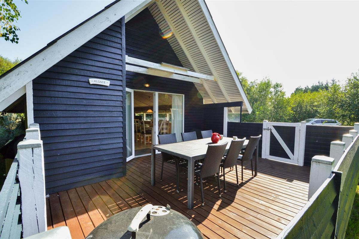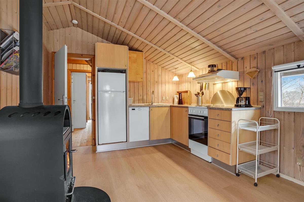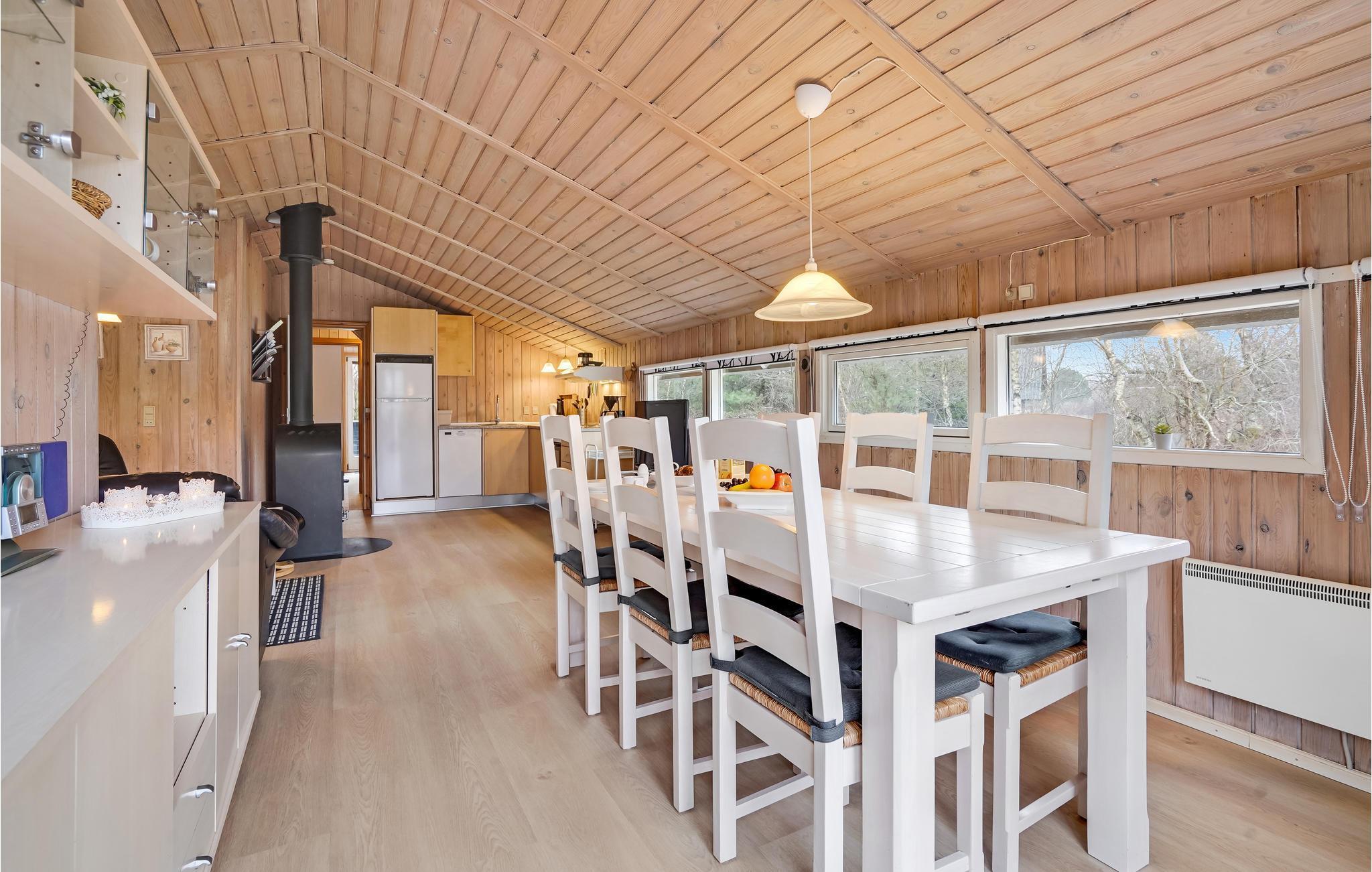 Gezellig houten vakantiehuis in Toftum, omgeven door natuur met sauna, houtkachel en uitzicht over het heuvelachtige landschap.