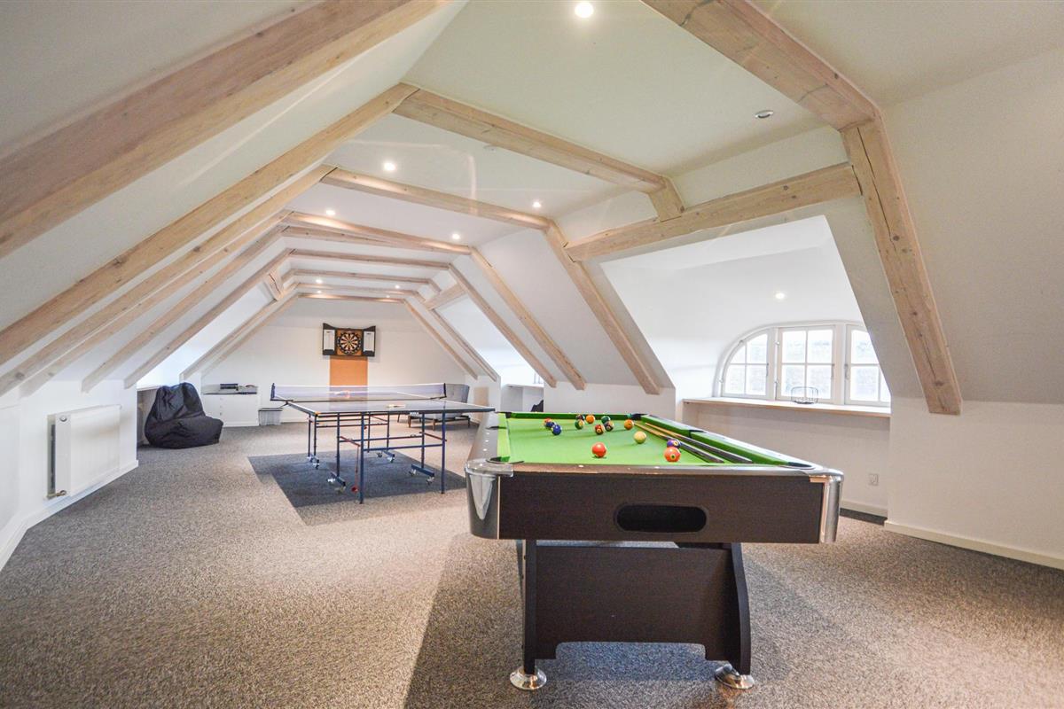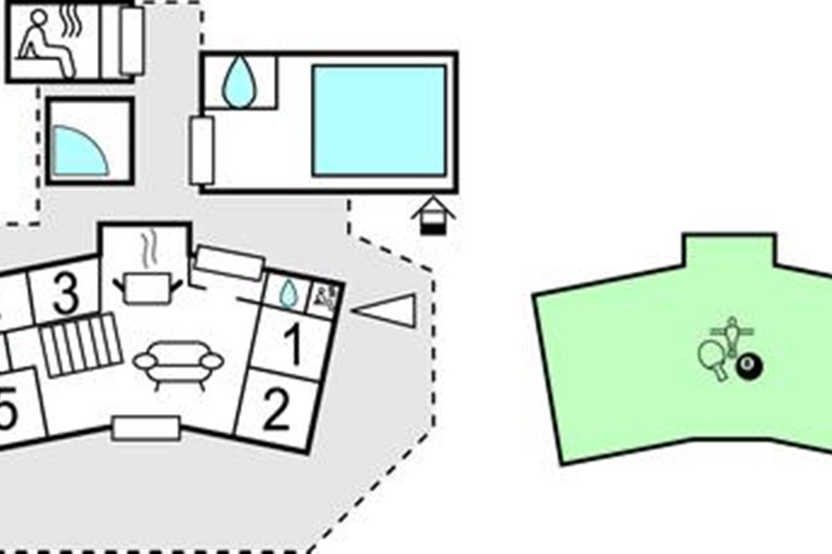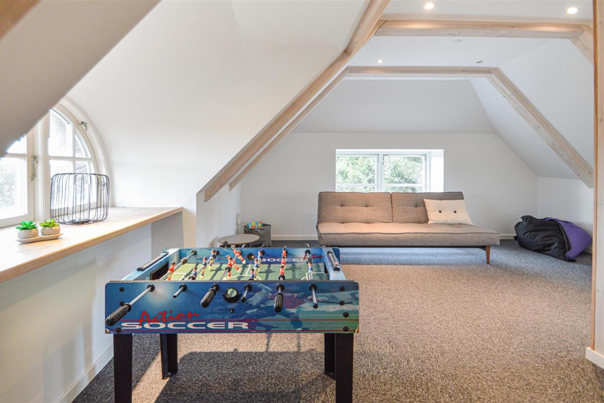 In het huis zijn er 2 slaapcompartimenten met respectievelijke badkamers, waarvan één is uitgerust met een sauna. Op de eerste verdieping is er een activiteitenruimte met tafelvoetbal, tafeltennis, darts en biljart.