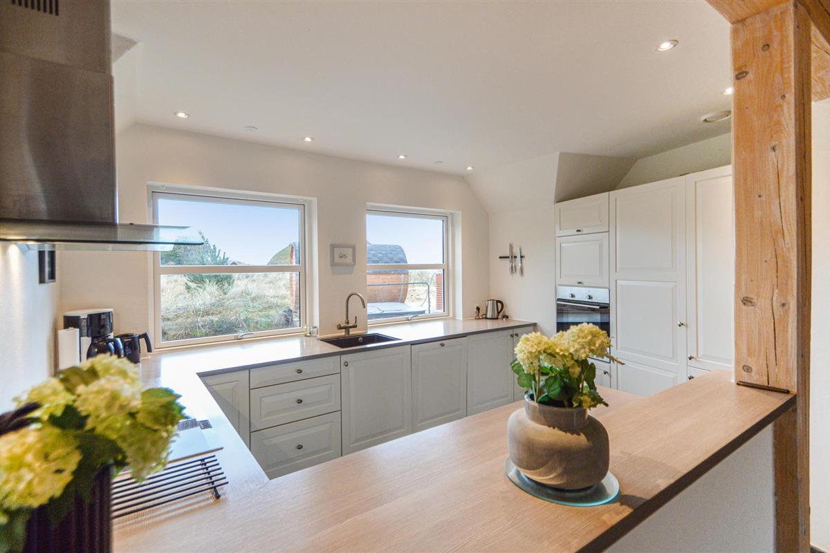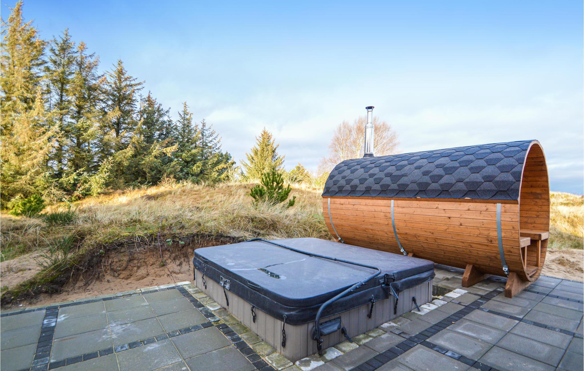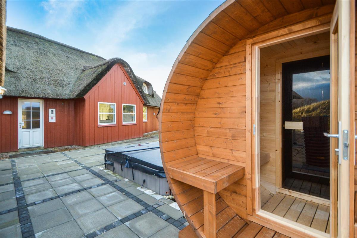 Dit mooie vakantiehuis voor in totaal 10 personen ligt in het noorden van Rømø. Hier wacht u een prachtig huis met een eigen wellnessruimte: binnen is er een goed uitgerust zwembad met glijbaan en aparte douche, terwijl buiten zowel een whirlpool als uw eigen sauna zijn gebouwd. De woonkamer en keuken zijn comfortabel ingericht en u kunt genieten van het uitzicht op het omringende duinlandschap.