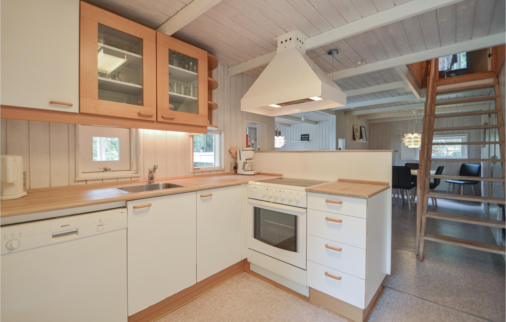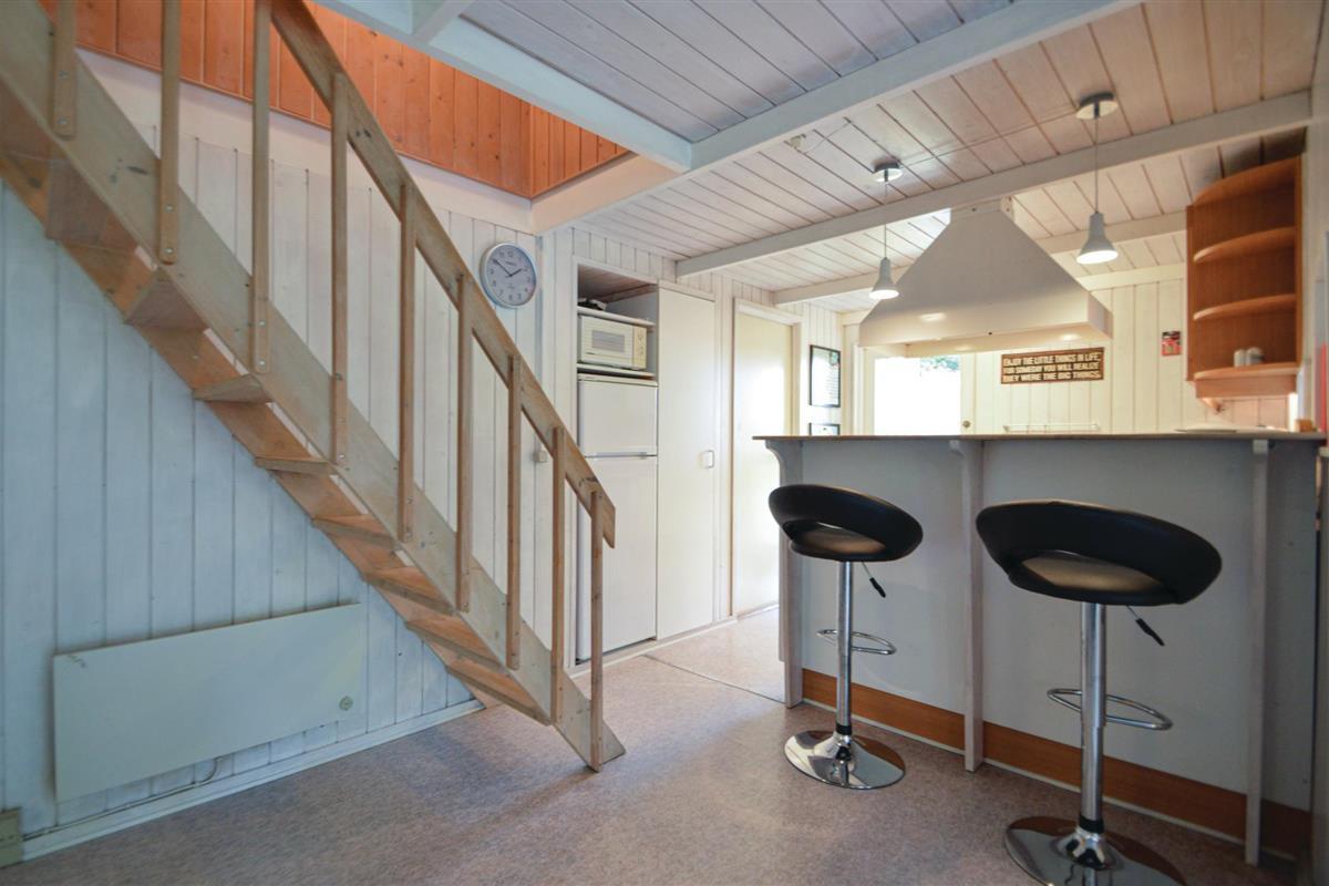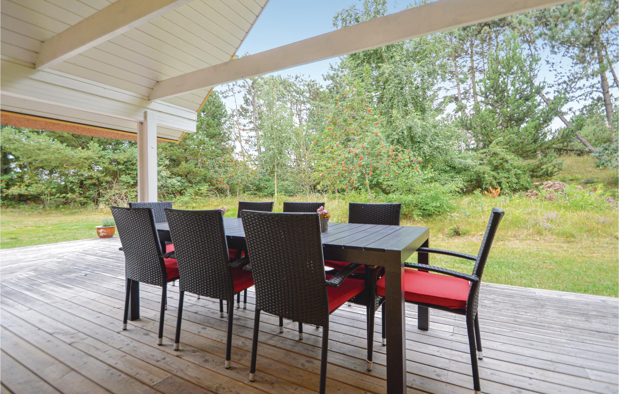 Mooi, rietgedekt vakantiehuis op een heuvelachtig perceel. De tuin is omringd door bomen en biedt daardoor zon en schaduw naar behoefte. Je leeft hier heel dicht bij de natuur en misschien zie je wel een hert in de tuin. Als het buiten koeler wordt, kun je lekker knus voor de houtkachel zitten. De keuken ligt in het midden van het huis en vanuit de hoekkamer stap je op het overdekte terras. Eén slaapkamer bevindt zich op de begane grond en heeft een tweepersoonsbed. De andere twee slaapkamers liggen op de bovenverdieping en hebben elk twee eenpersoonsbedden.