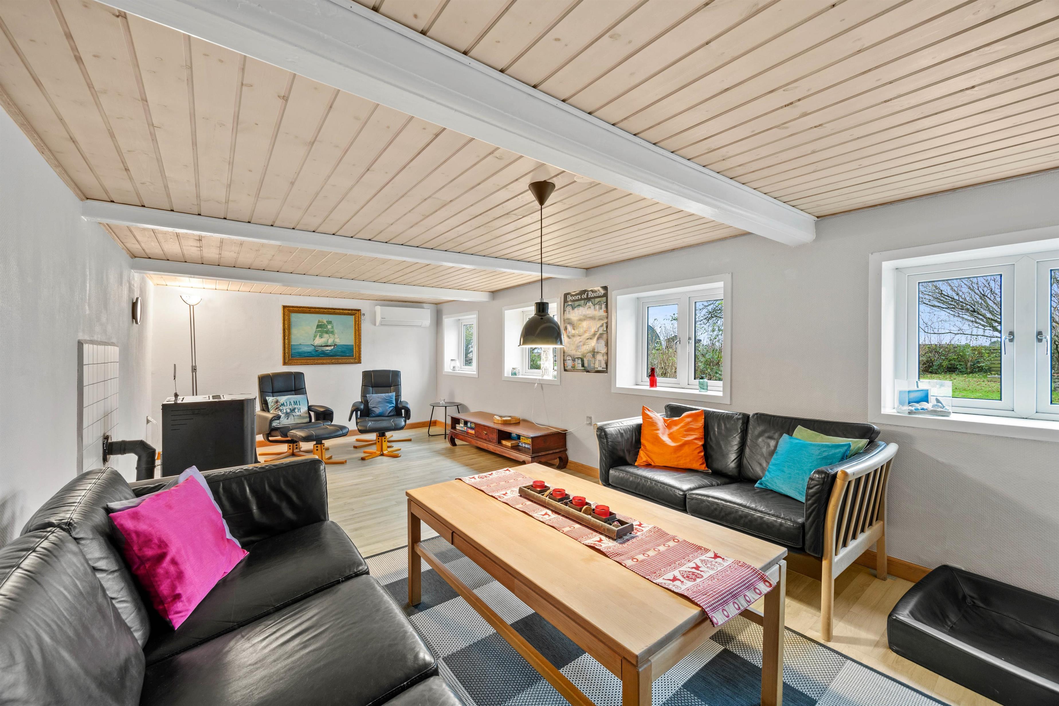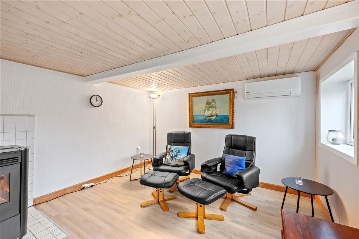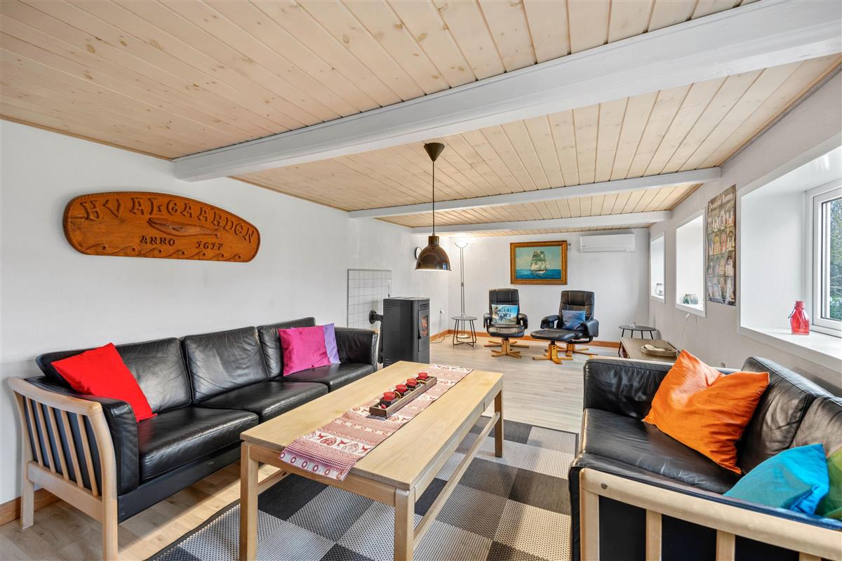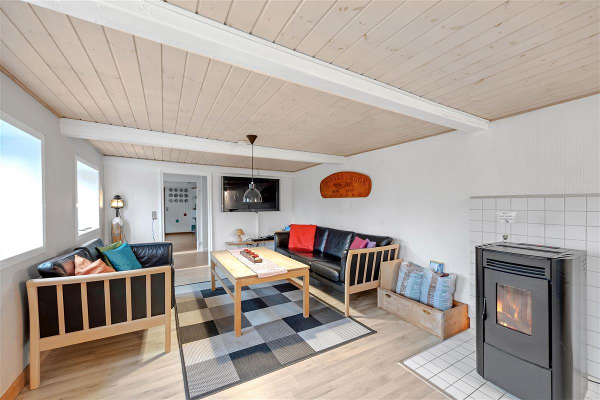 The living room is perfect for spending quality time with the whole family. On a windy autumn day, you can light the wood pellet stove and let its cosy warmth envelop you while listening to the crackling fire. Two energy-efficient heat pumps are also available when needed.