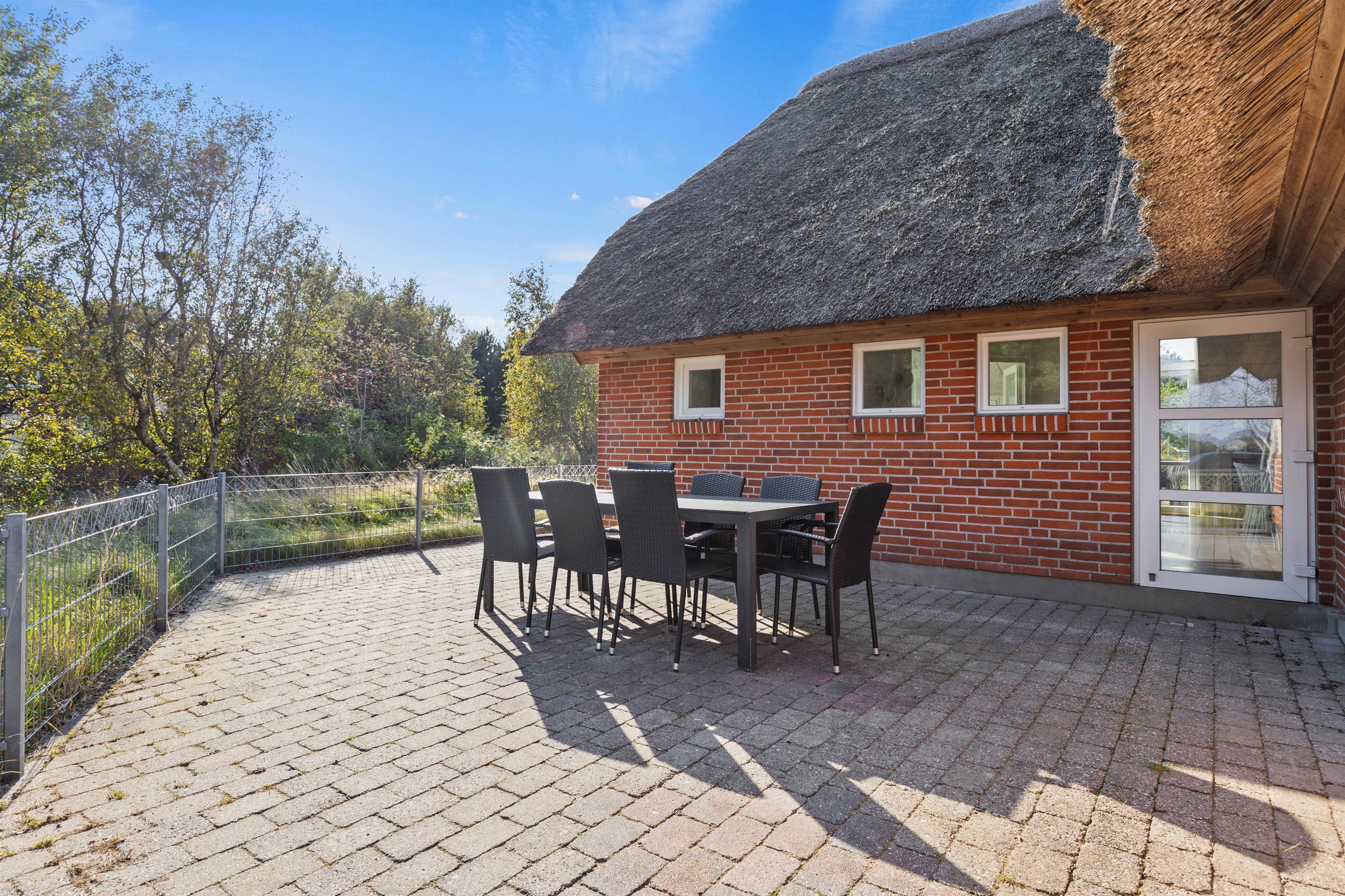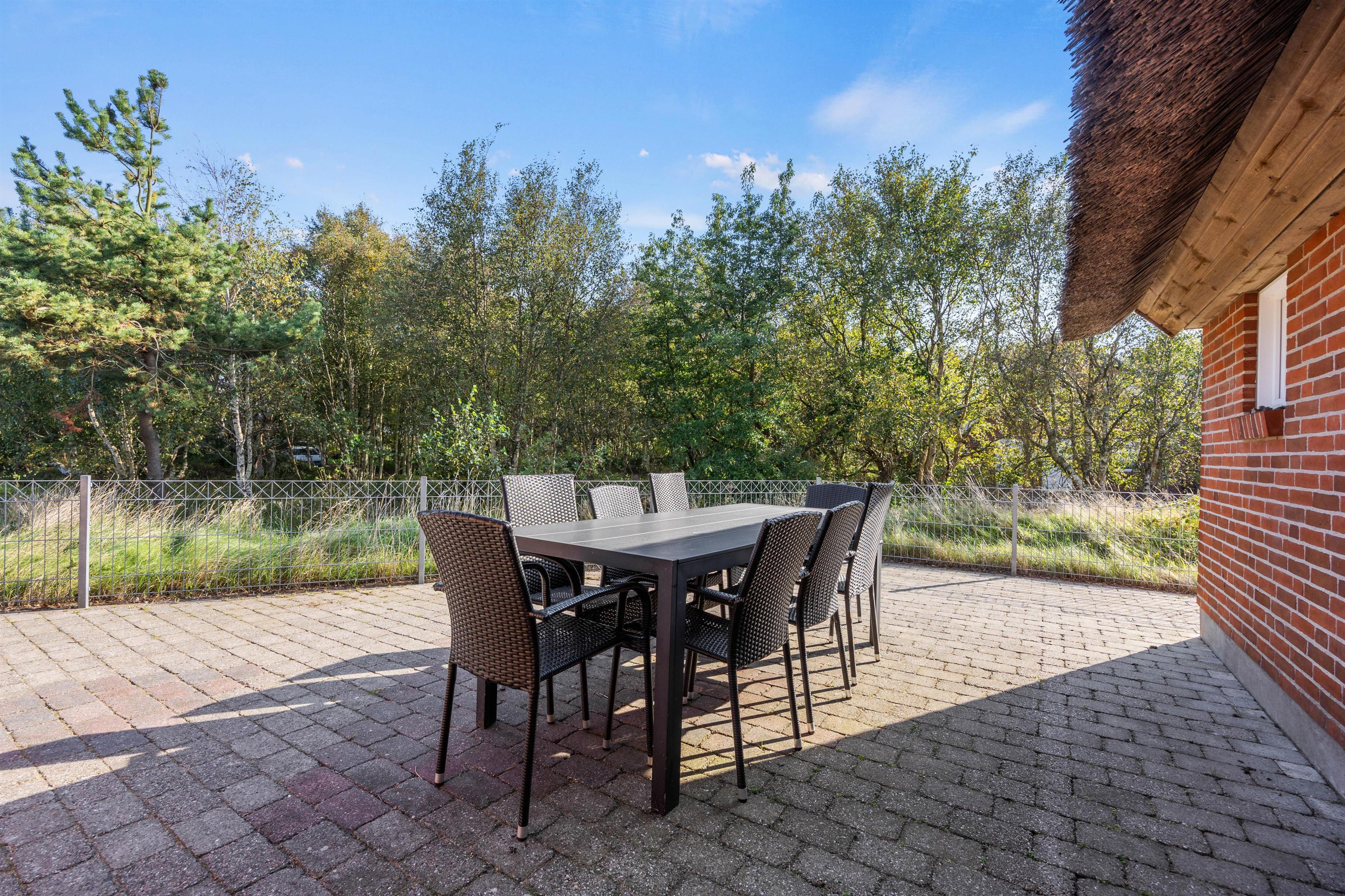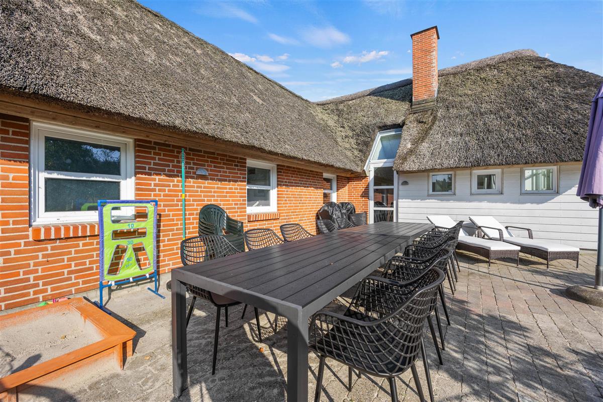On the south side of the holiday home, you'll find an idyllic, partially fenced terrace. Here you can enjoy fantastic barbecue evenings, morning coffee, and many sunny hours. Garden furniture is provided. Enjoy the tranquillity of Rømø while the little ones play and swing in the garden.