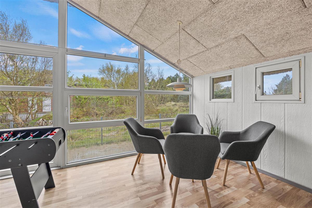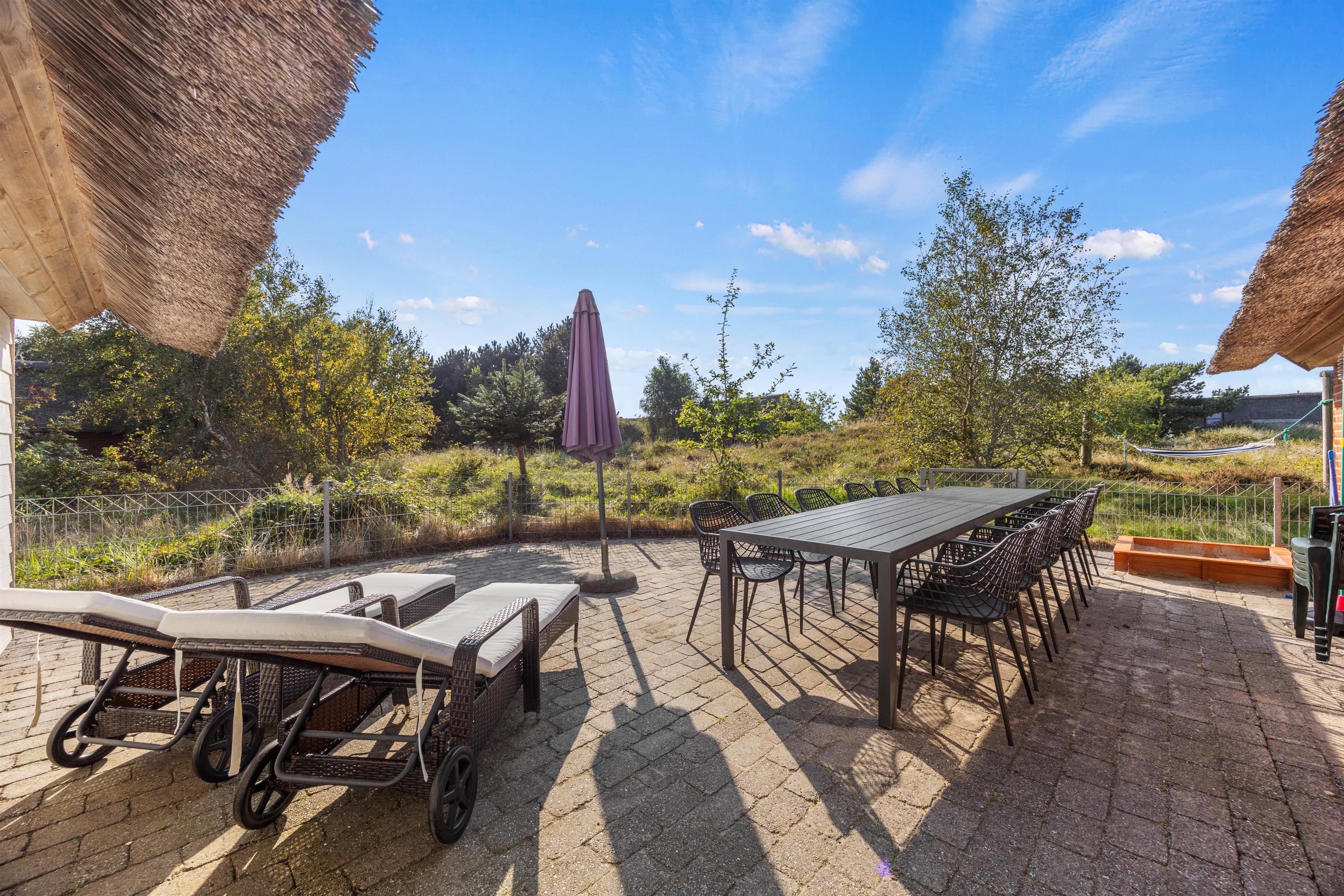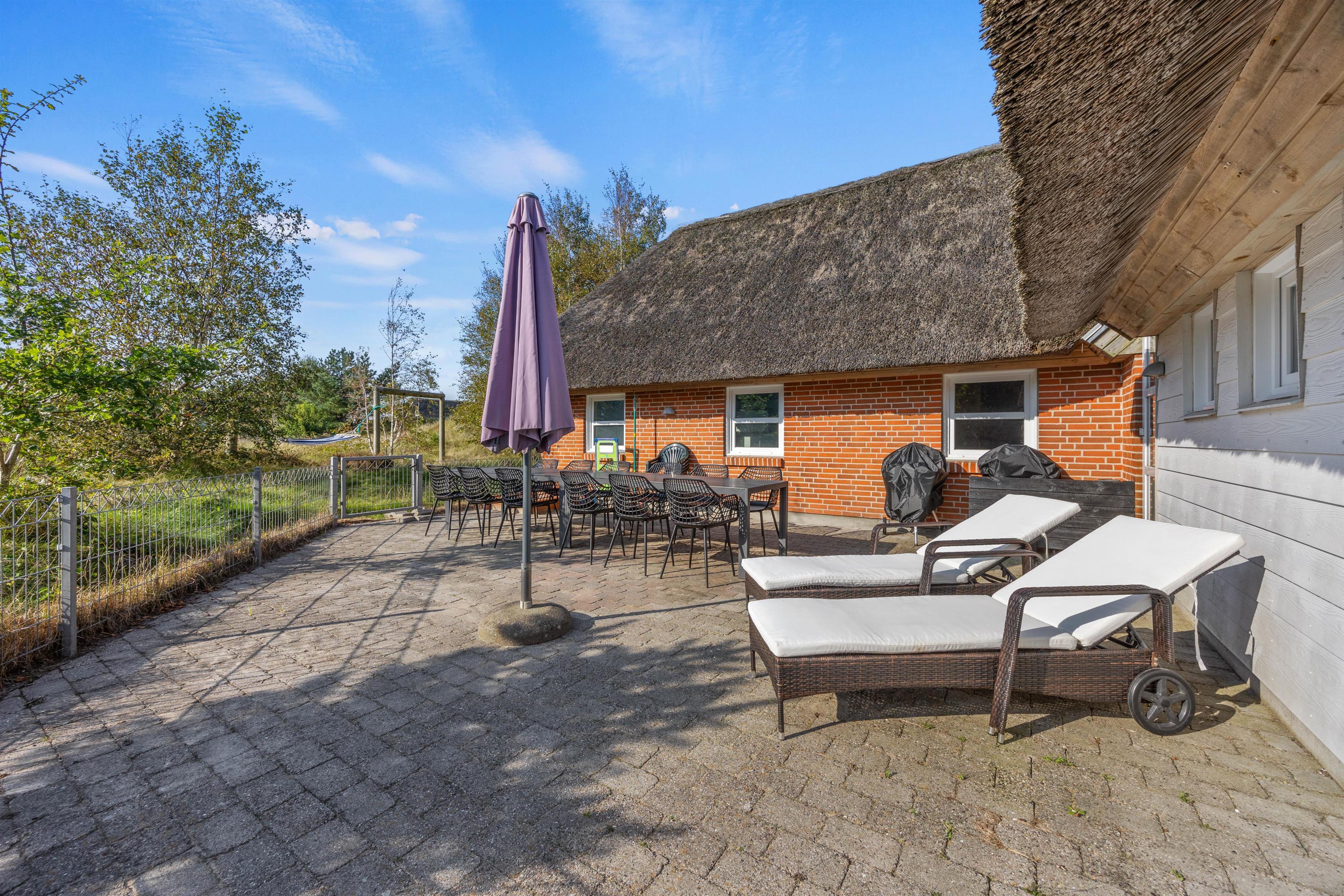 On the south side of the holiday home, you'll find an idyllic, partially fenced terrace. Here you can enjoy fantastic barbecue evenings, morning coffee, and many sunny hours. Garden furniture is provided. Enjoy the tranquillity of Rømø while the little ones play and swing in the garden.