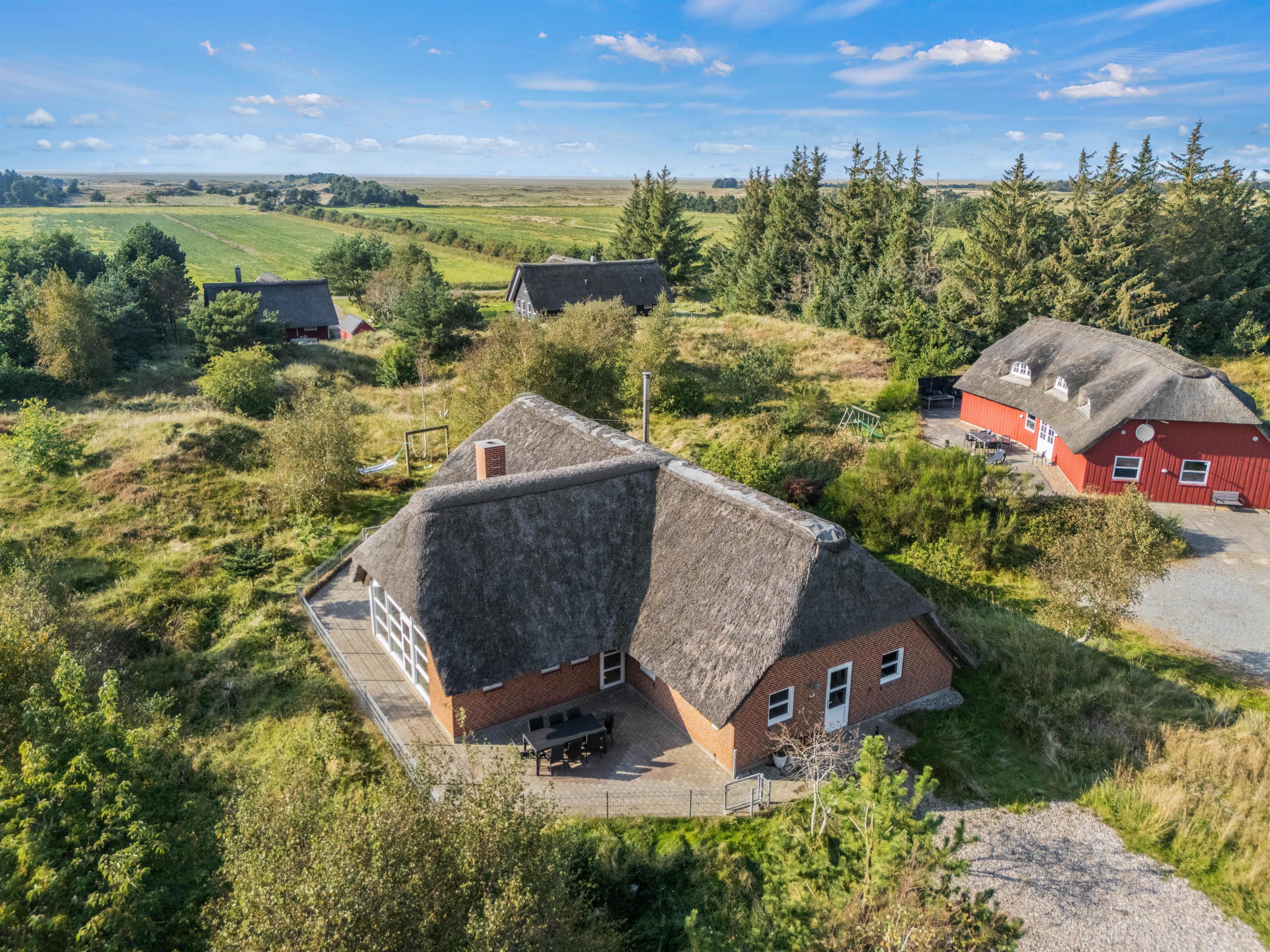 This delightful thatched-roof holiday home offers abundant space, set within natural grounds covering 203 square metres. It features two bathrooms with underfloor heating, six bedrooms, and a sleeping loft providing additional accommodation. Of the six bedrooms, three have beds measuring 160x200cm, two feature 140x200cm beds, and one contains twin beds of 80x200cm each. The comfortable beds ensure a restful night's sleep, leaving you refreshed and ready for new activities and swimming adventures.
