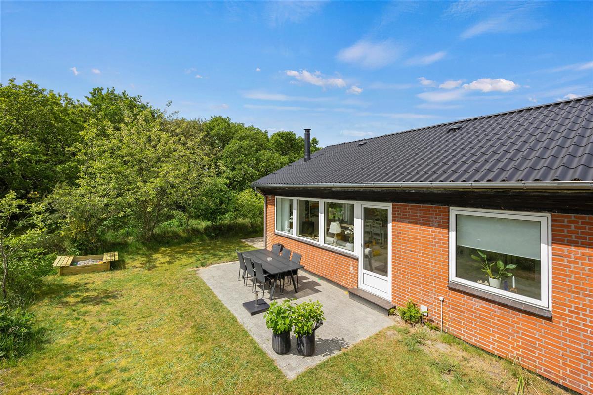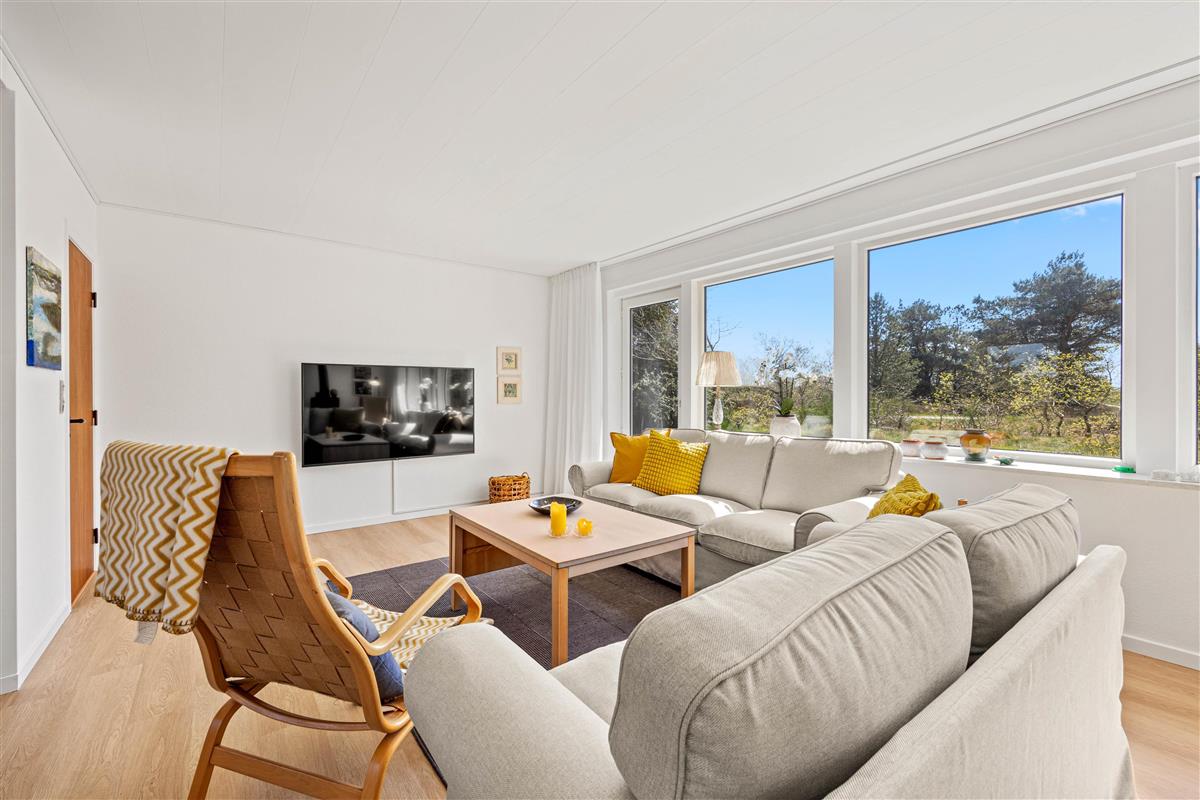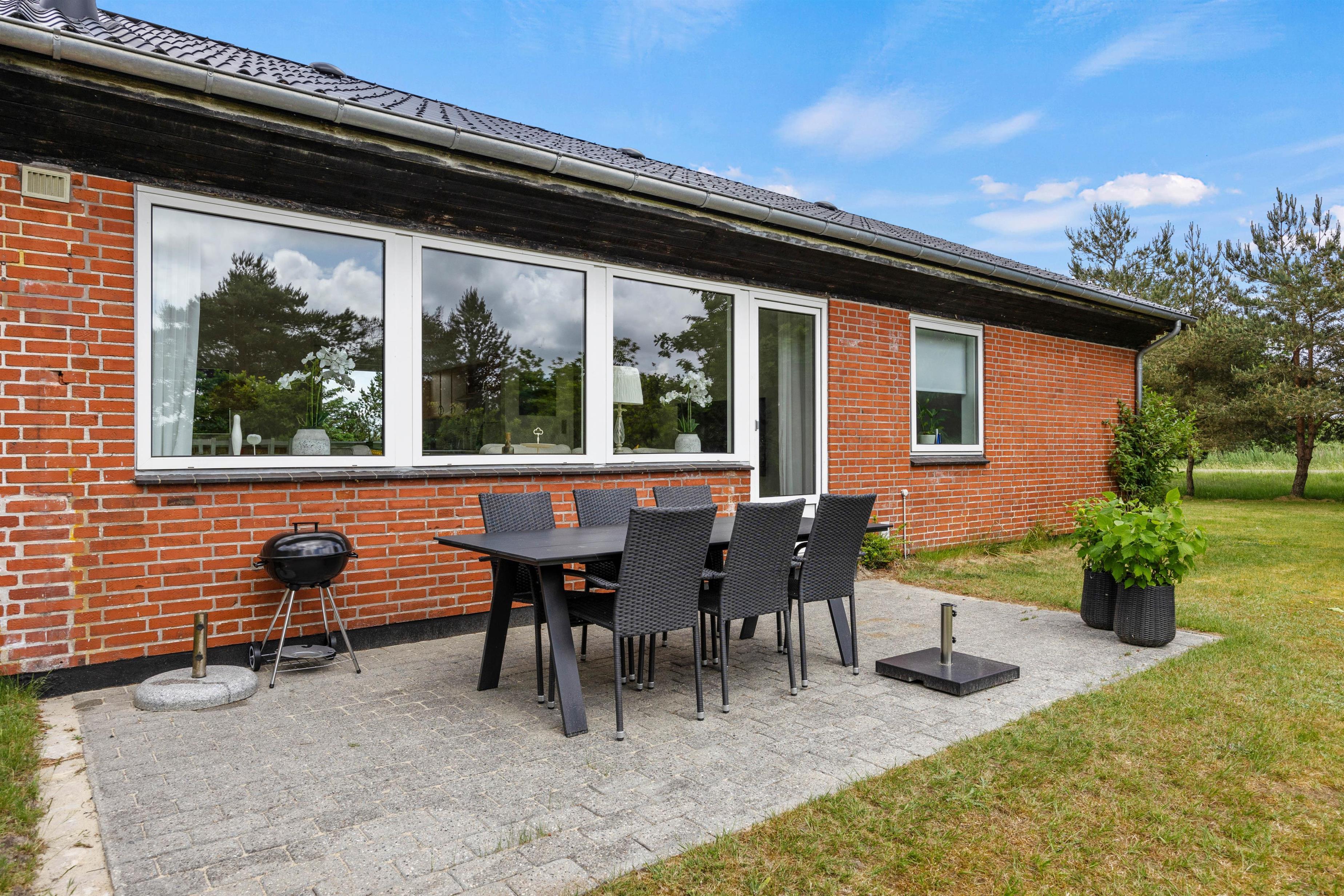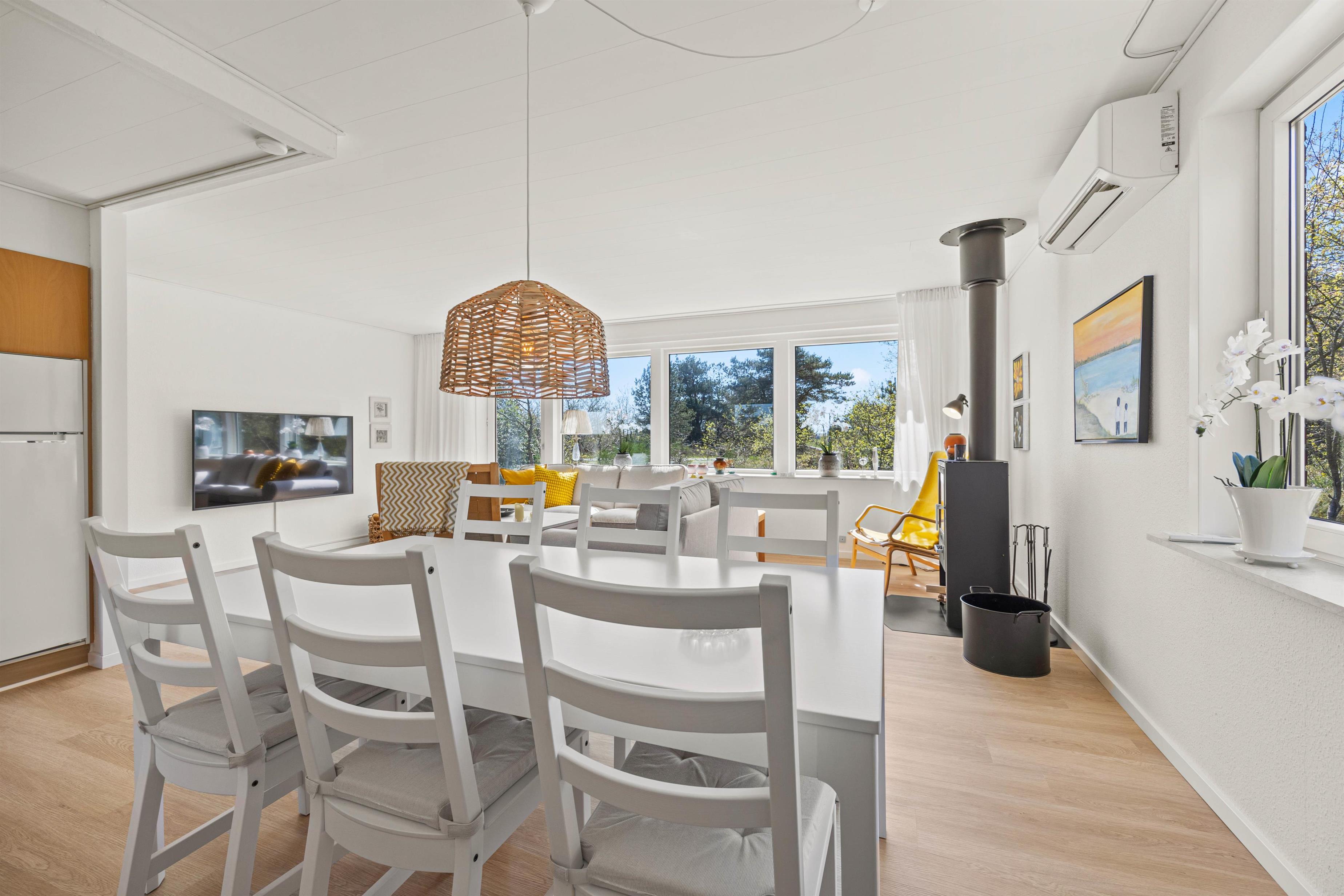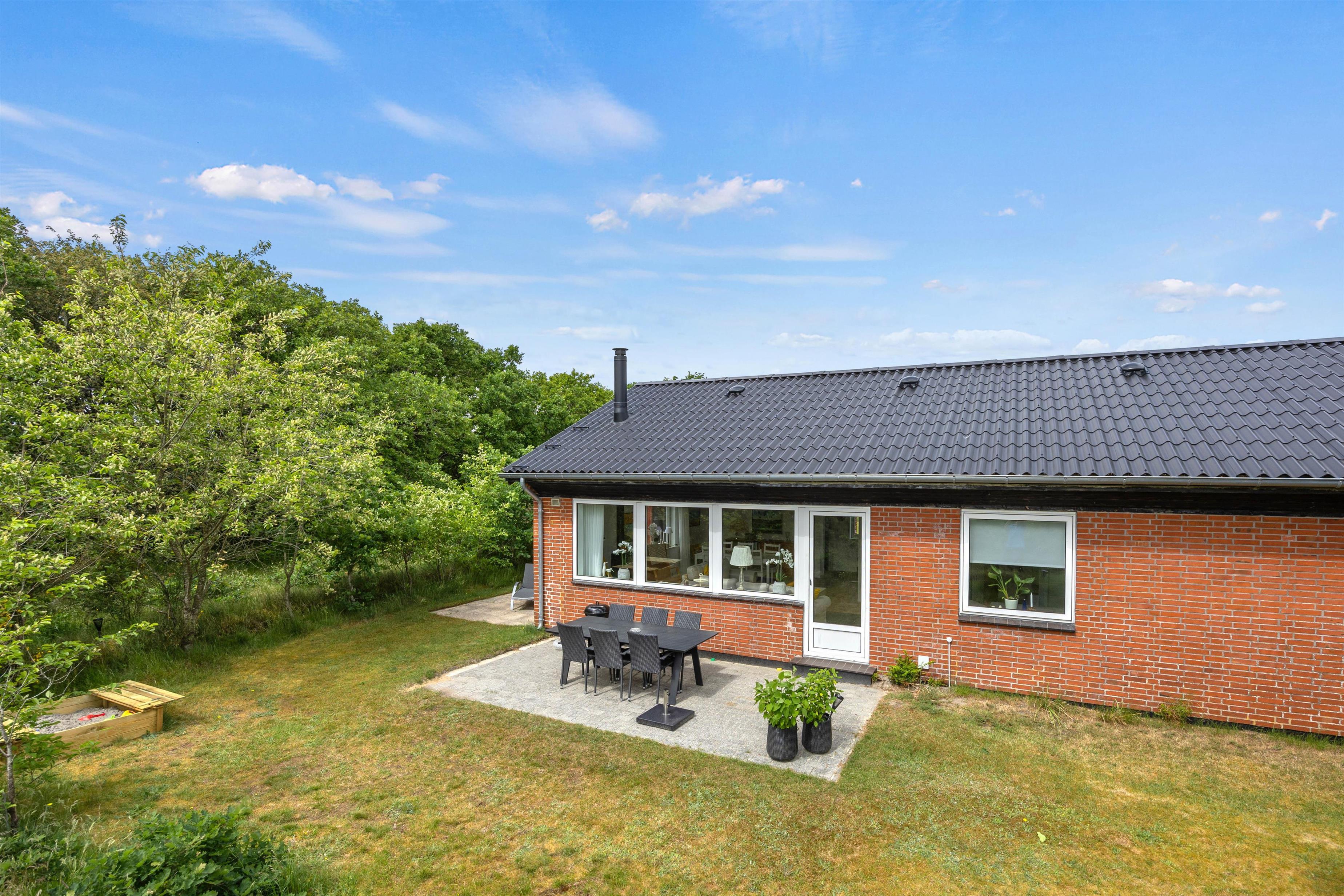 Welcome to the beautiful island of Rømø! You'll love spending your Danish holiday with loved ones in this holiday home. The lovely living area features two comfortable leather sofas and a television with Chromecast, offering Danish and German TV channels. In the evening, the wood-burning stove transforms the house into a true haven of comfort as the flames dance on the walls. Large windows provide beautiful views of the green surroundings, and everyone can gather around the large dining table for shared meals and cosy evenings. A high chair is provided, and a cot is available free of charge upon request.