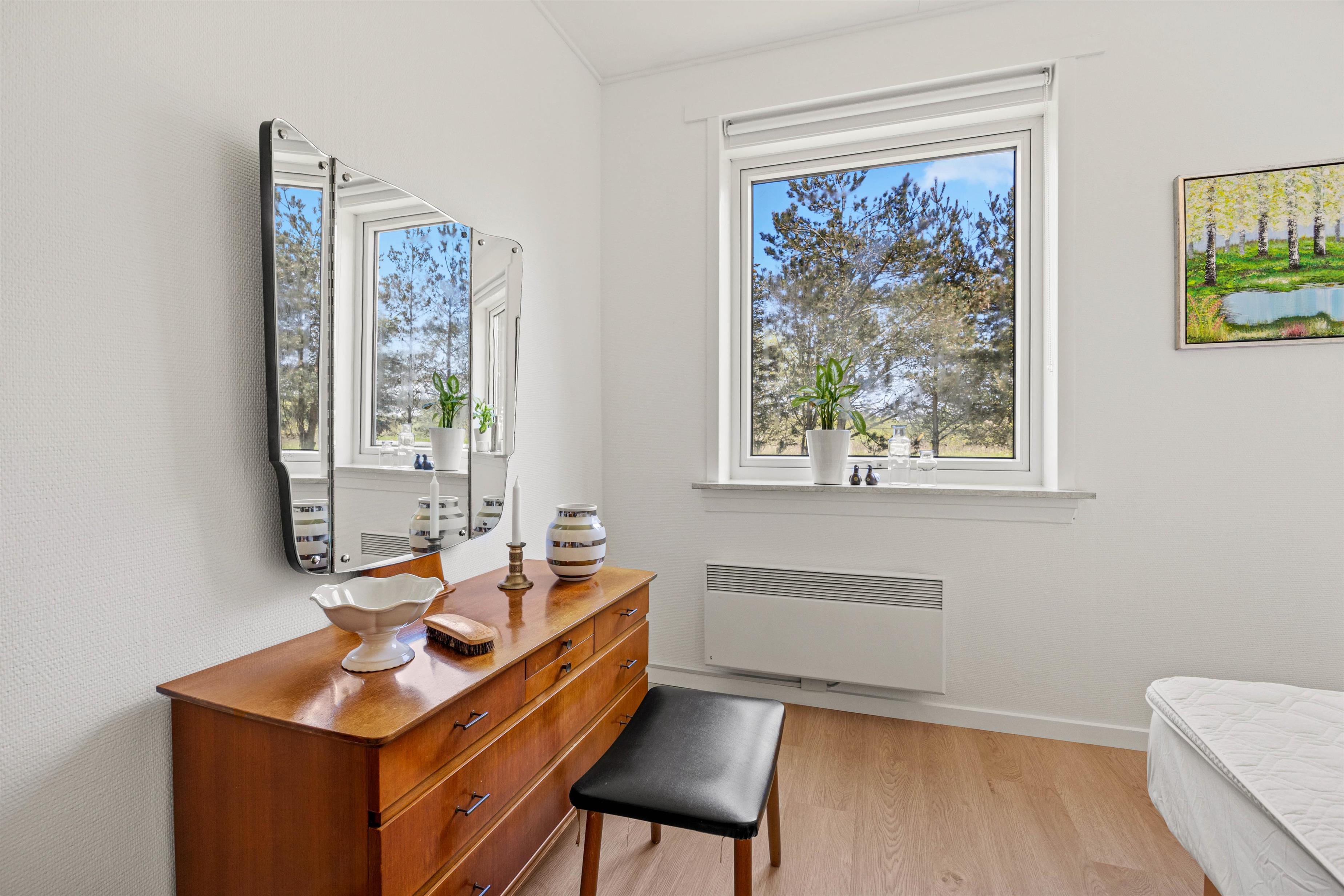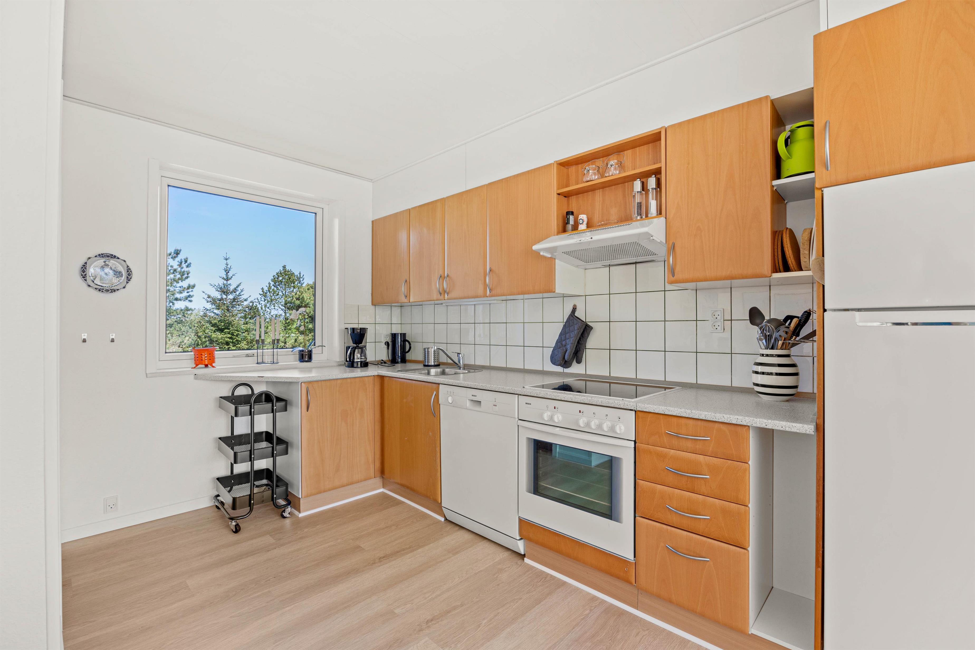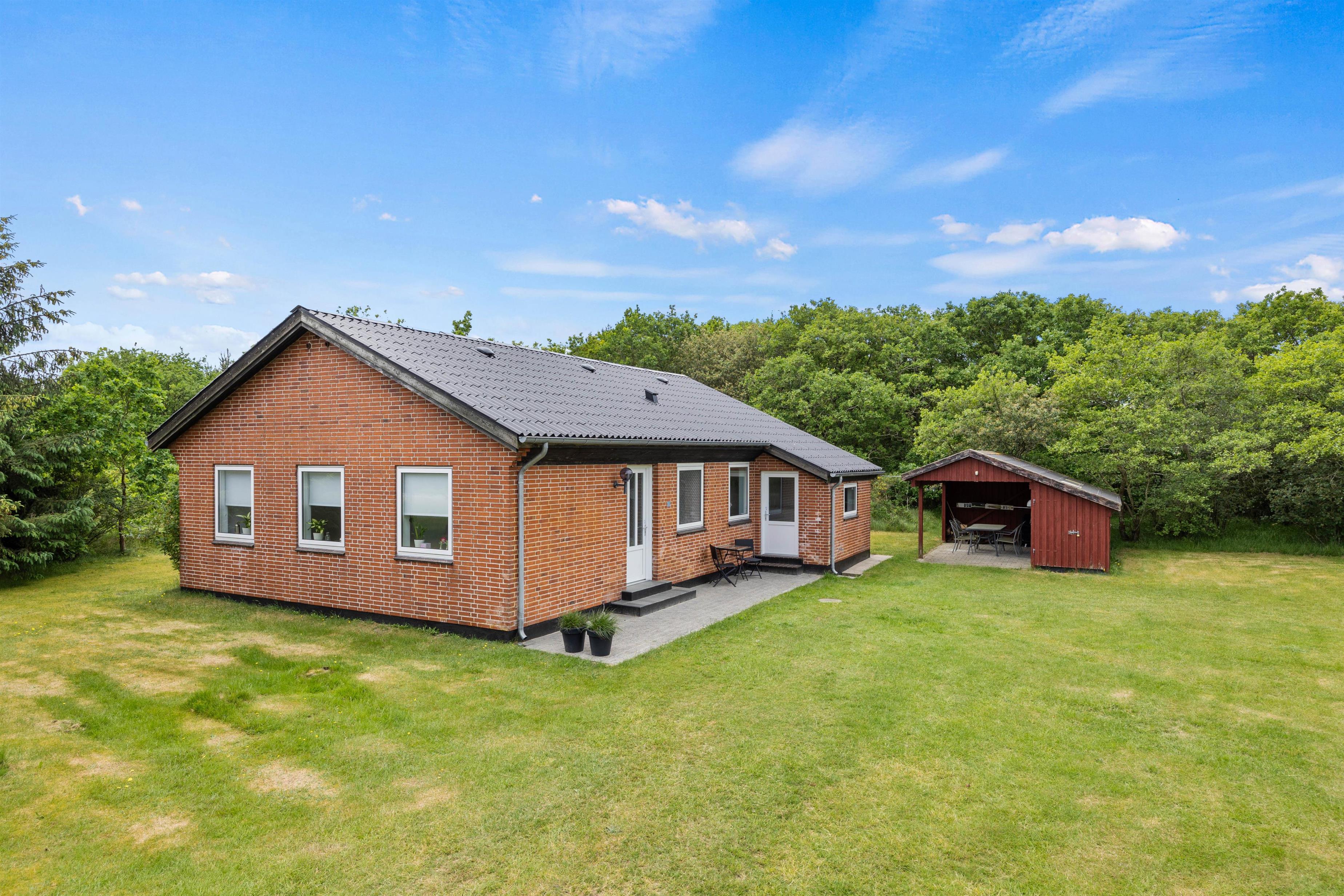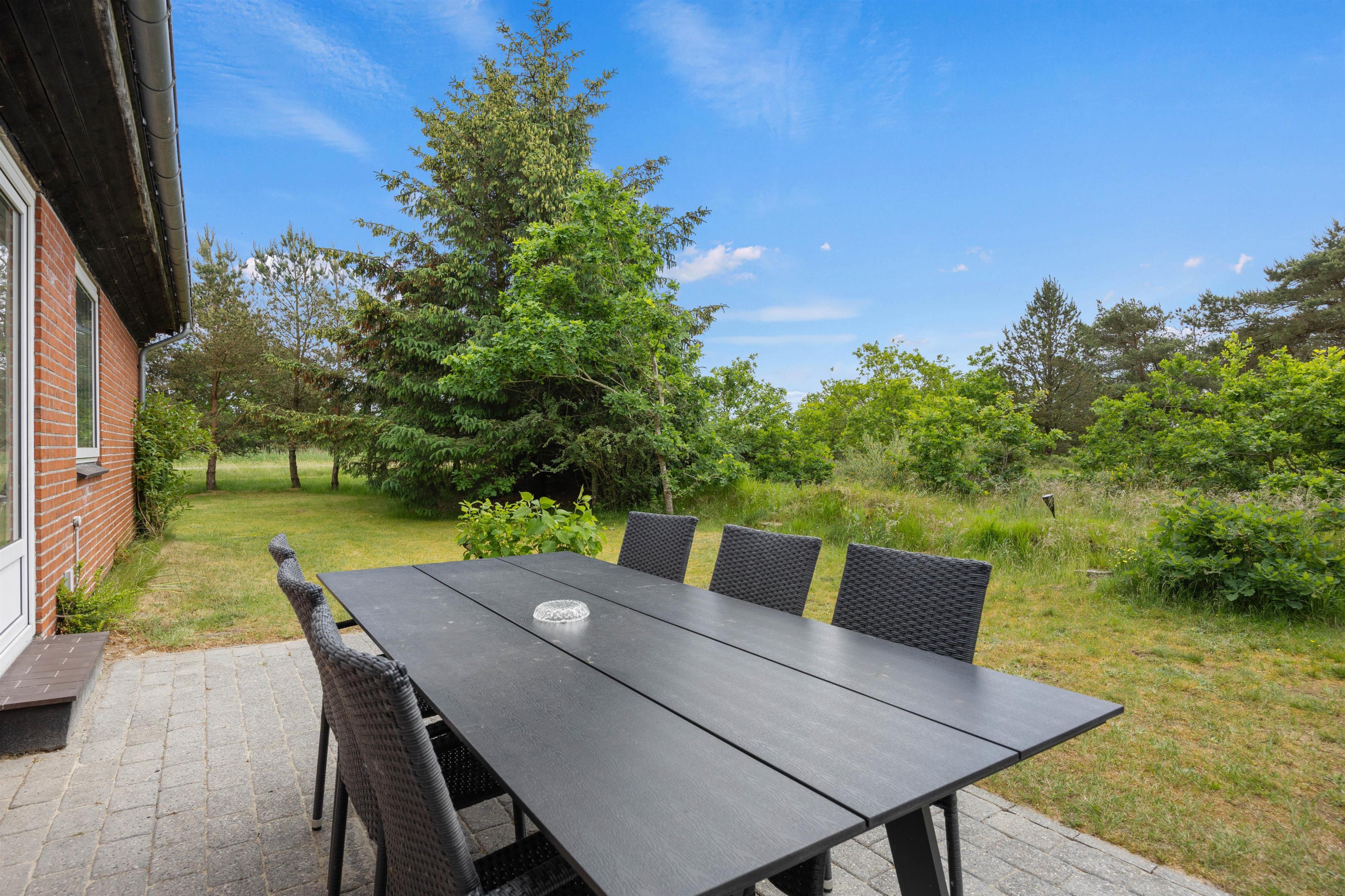 Welcome to the beautiful island of Rømø! You'll love spending your Danish holiday with loved ones in this holiday home. The lovely living area features two comfortable leather sofas and a television with Chromecast, offering Danish and German TV channels. In the evening, the wood-burning stove transforms the house into a true haven of comfort as the flames dance on the walls. Large windows provide beautiful views of the green surroundings, and everyone can gather around the large dining table for shared meals and cosy evenings. A high chair is provided, and a cot is available free of charge upon request.
