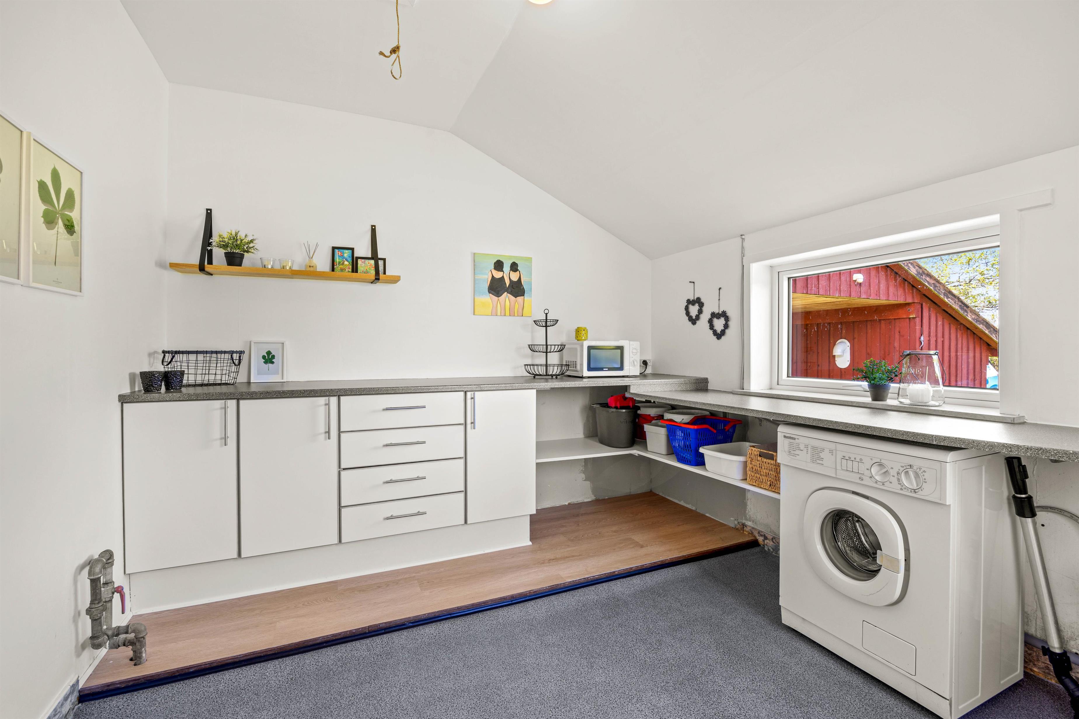 The holiday home also features a washing machine for fresh towels and clothes, and an energy-efficient heat pump providing comfortable warmth throughout the house.
