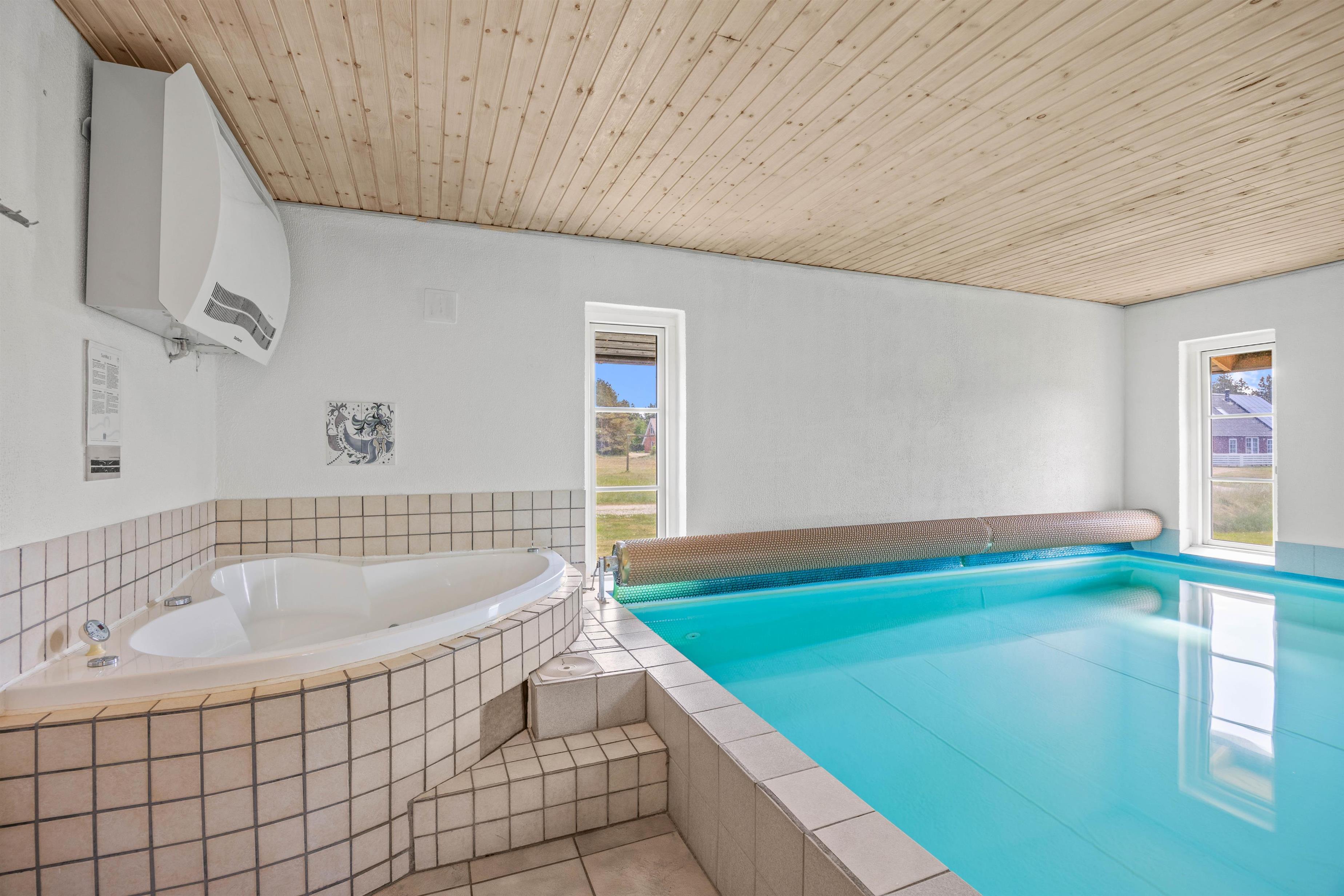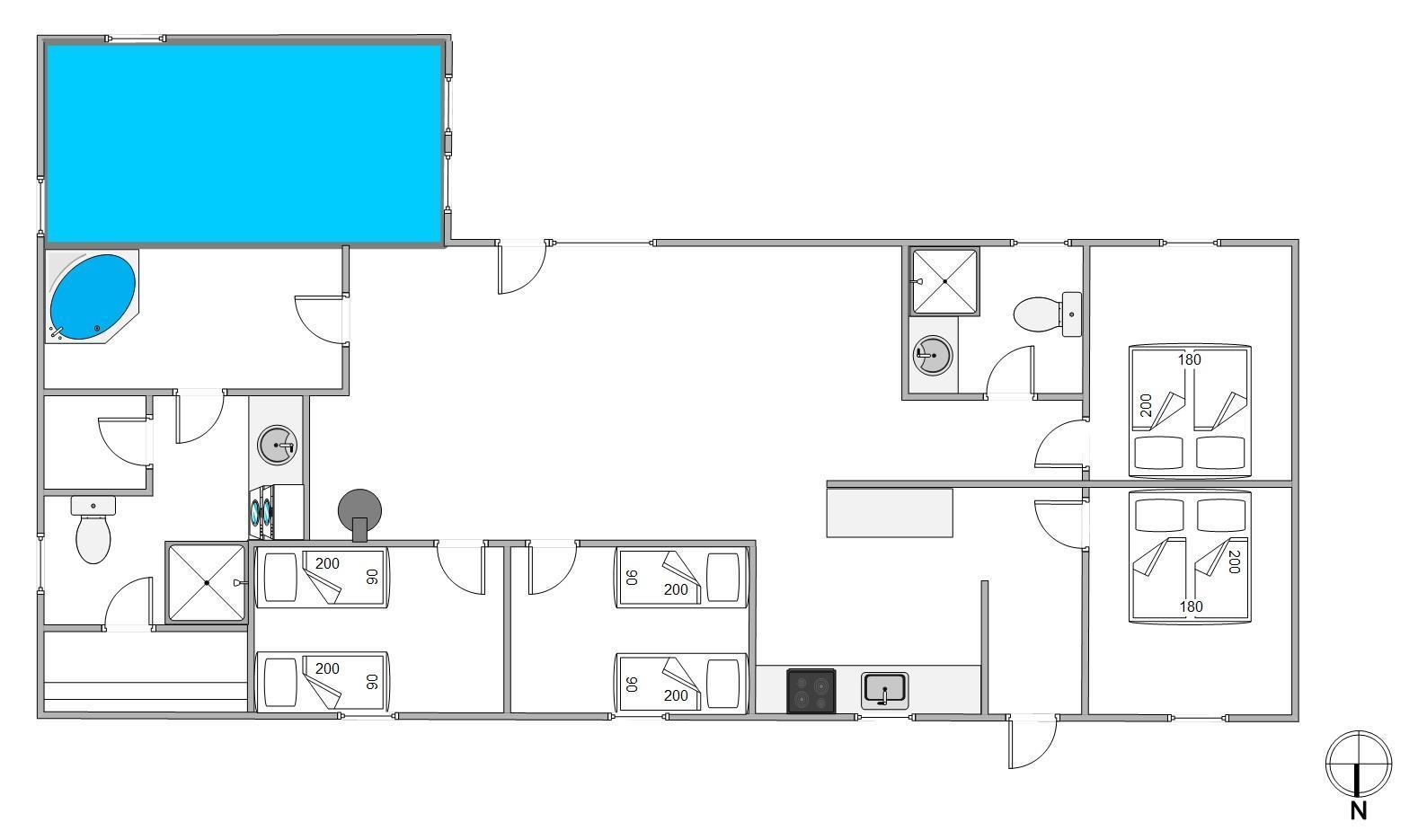 Ein Highlight des Ferienhauses in Toftum ist der 28 m² große Swimmingpool, der dir zu jeder Jahreszeit Badespaß bietet. Nach einem erfrischenden Bad kannst du in der Sauna oder im Whirlpool entspannen und den Stress des Alltags hinter dir lassen. Für die Kinder gibt es einen Spielbereich im Freien mit Schaukel, Sandkasten und einem Trampolin, während du auf der geschlossenen Terrasse die Sonne mit einem guten Buch genießen kannst. Abends lädt der Grill zu geselligen Runden mit Freunden und Familie ein. Eine Luft-Luft-Wärmepumpe sorgt das ganze Jahr über für eine angenehme Temperatur.