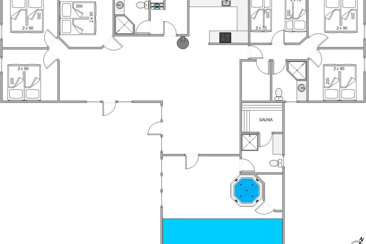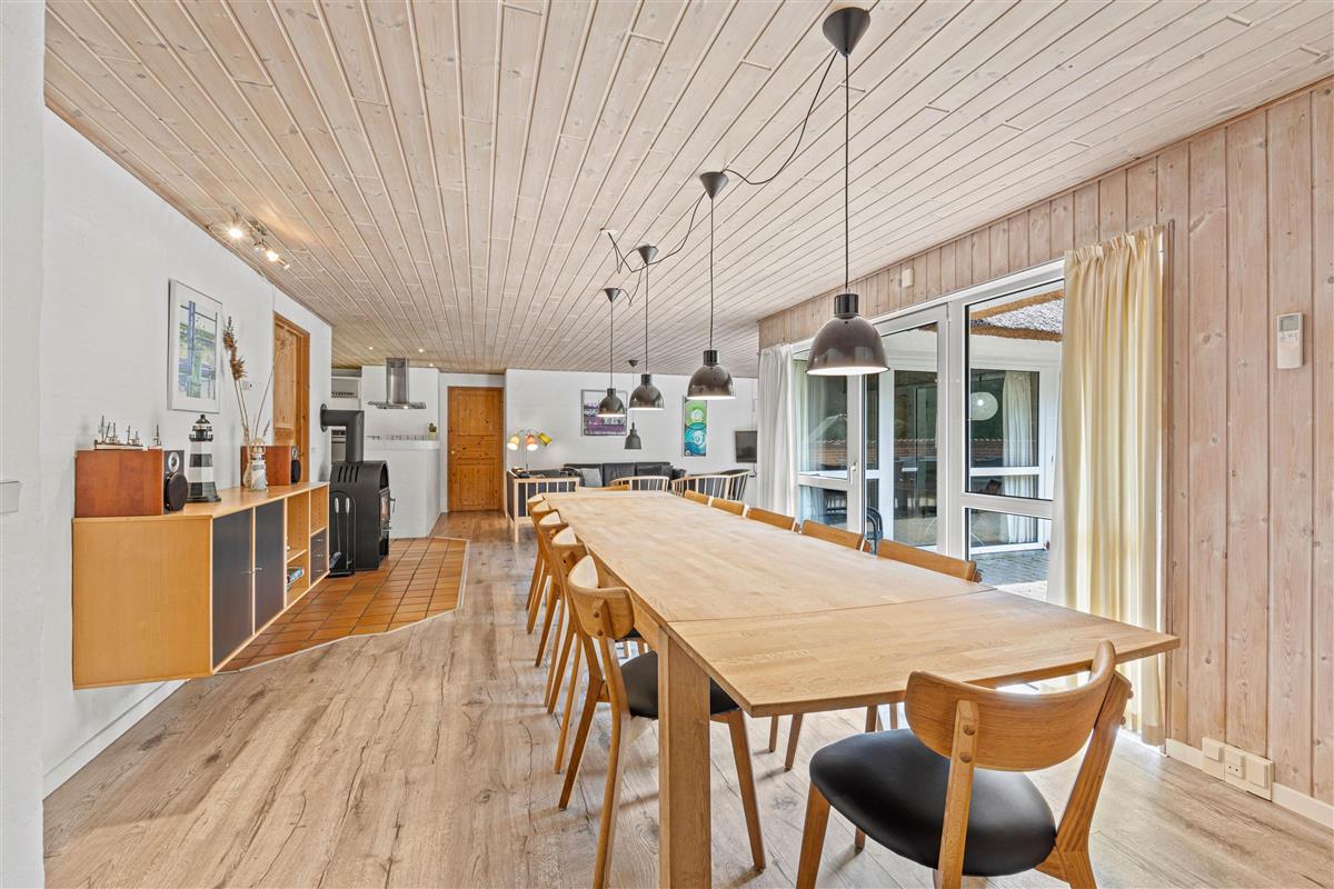 This cosy holiday home invites you to enjoy wellness facilities including an indoor swimming pool, hot tub and sauna, in a beautiful location on Rømø. With five double bedrooms and one room with two bunk beds, there's space for family gatherings or multiple groups of friends holidaying together. You're welcome to bring two dogs. The holiday home accommodates up to 14 people, and each bedroom (except the bunk room) features a Smart TV with Chromecast.