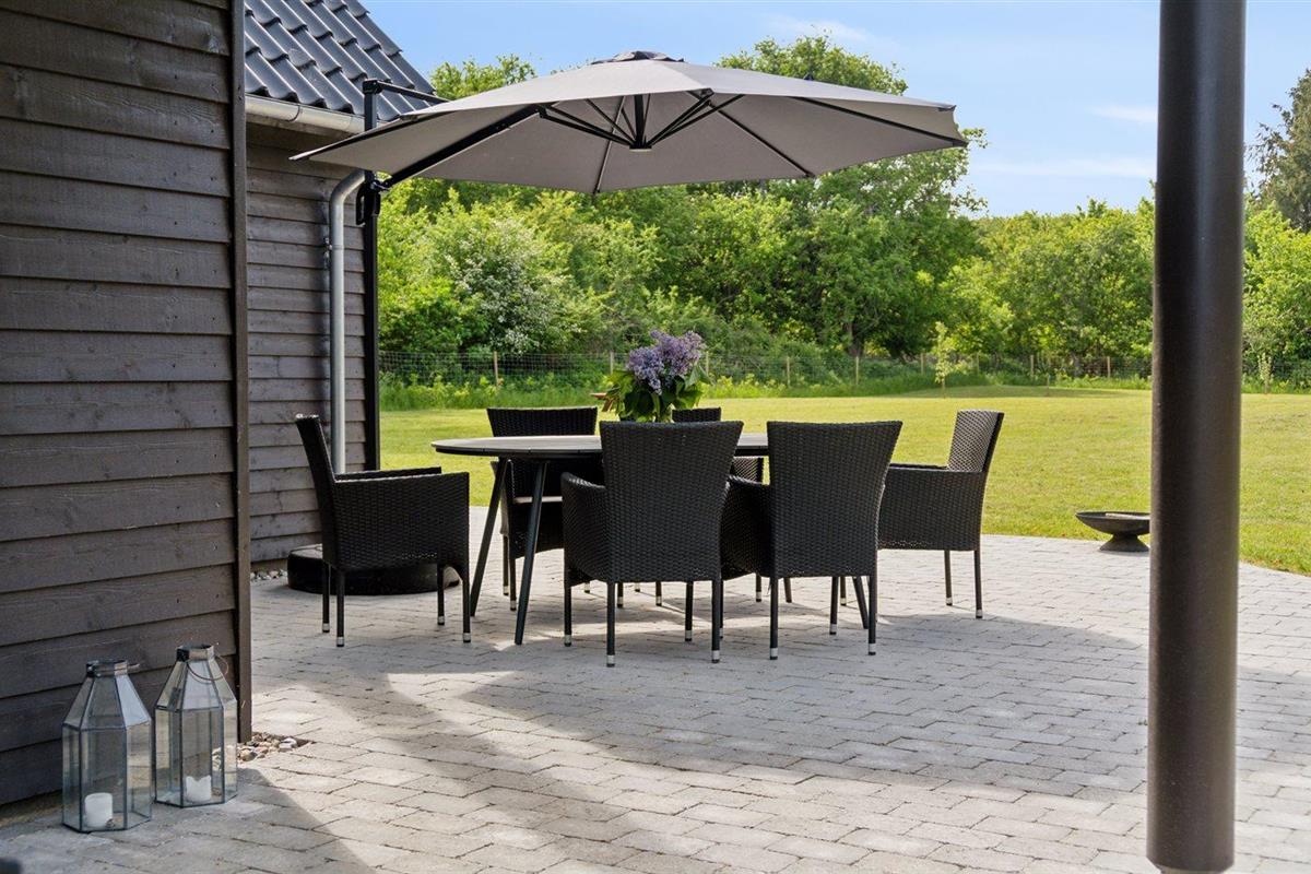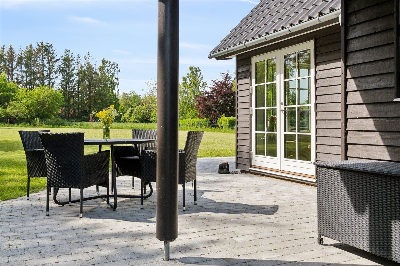 De vakantiewoning is gelegen op een 2457 m² groot aangelegde tuin. De grond is omheind. Afstand tot de zee 1250 m. Dichtstbijzijnde winkel 6300 m. Bij de vakantiewoning hoort terras. Daarnaast is er een overdekt terras. Barbecue. Het huis heeft een stopcontact voor het opladen van een elektrische auto. Oplaadstekker type 2. Met 11 kW-laadvermogen. Parkeerplaats bij het huis.