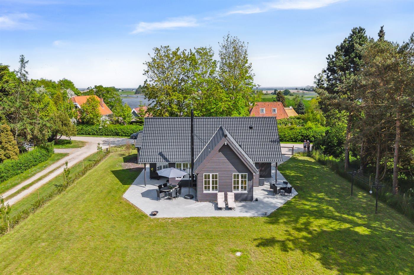 Modern vakantiehuis met tuin, houtkachel, elektrische laadpaal en dichtbij zee in Tranekær.