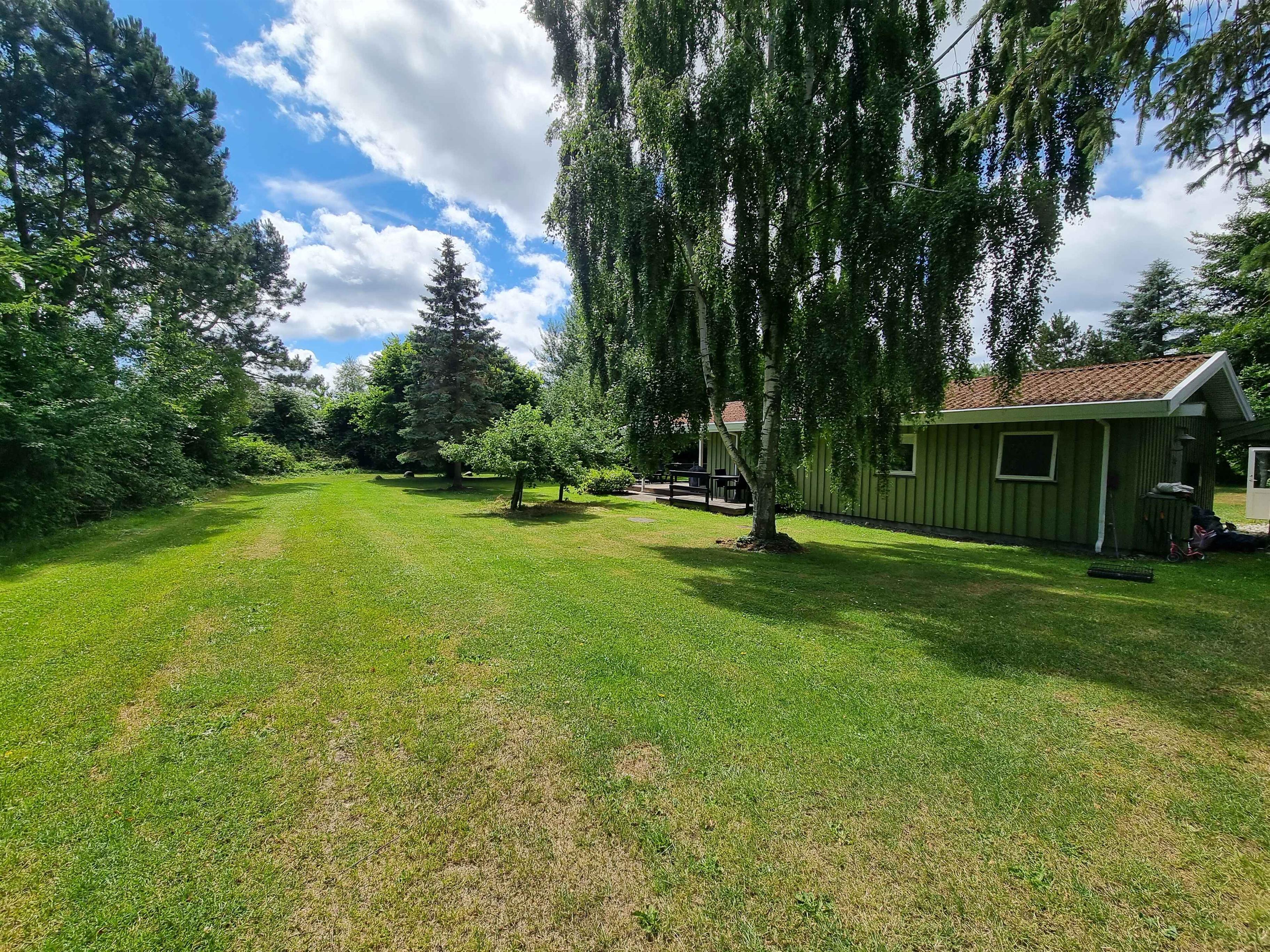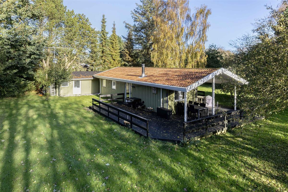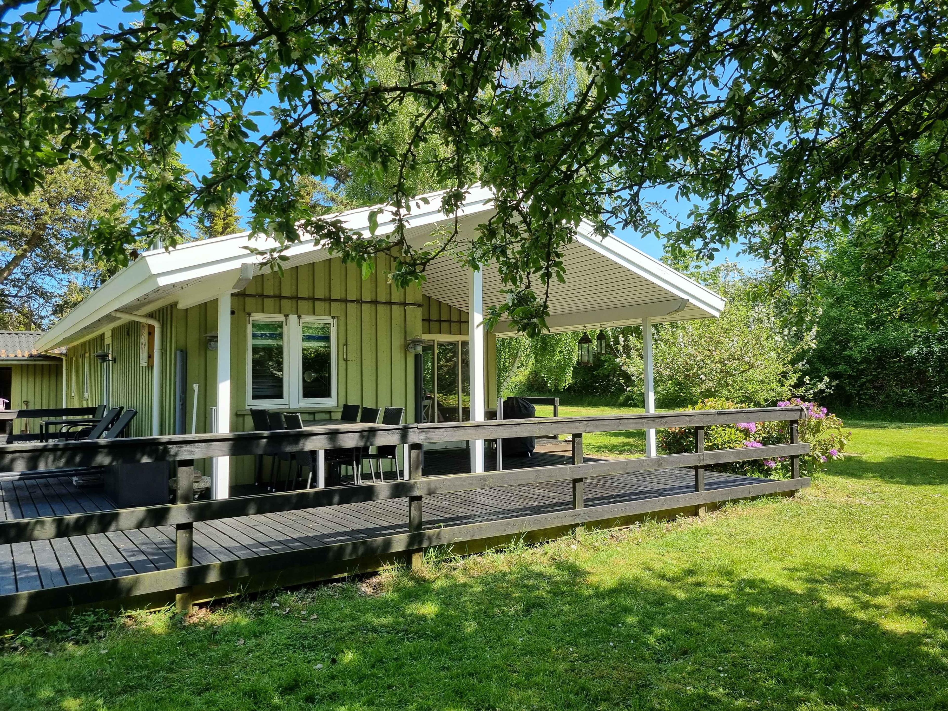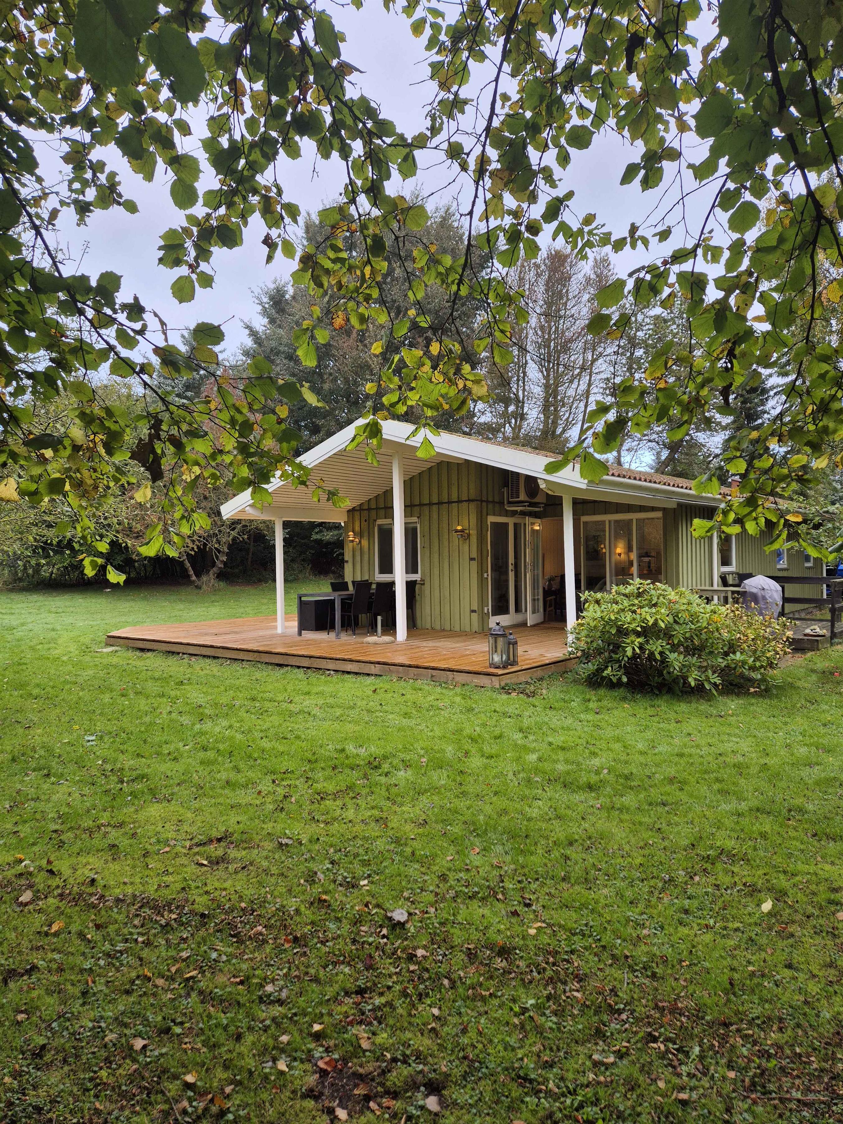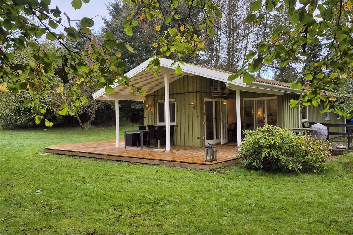 Vrijstaand zomerhuis in Langeland met zeezicht en nieuw terras, ideaal voor rust en visliefhebbers.