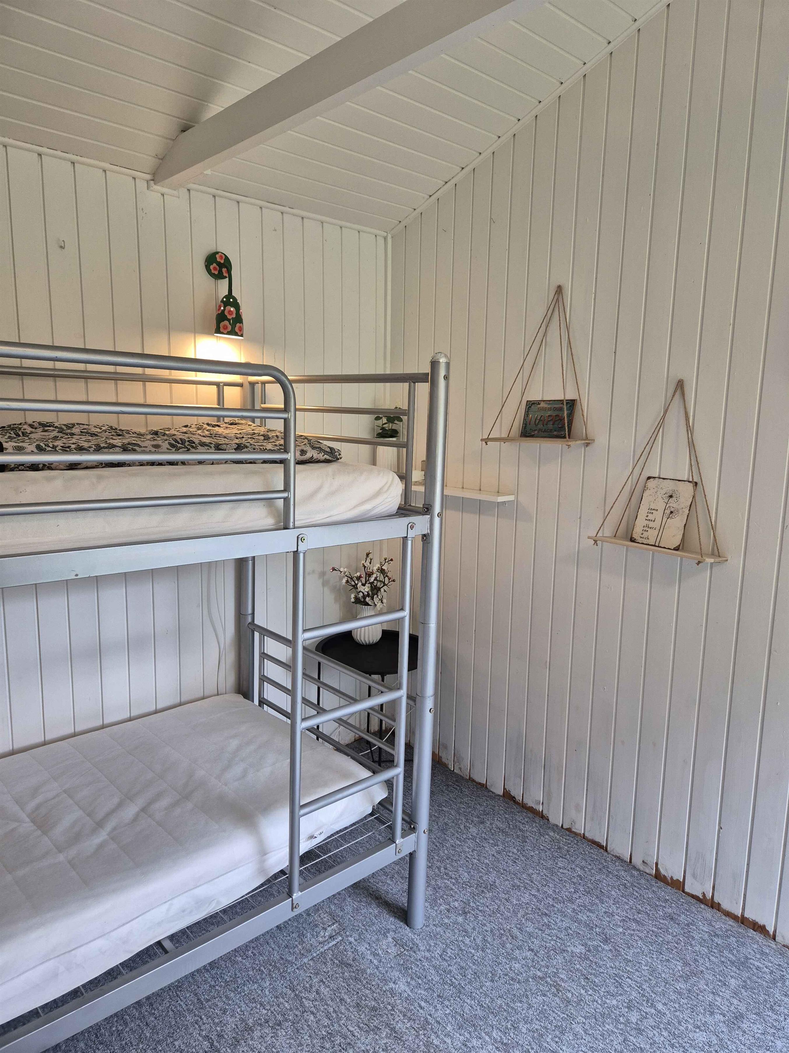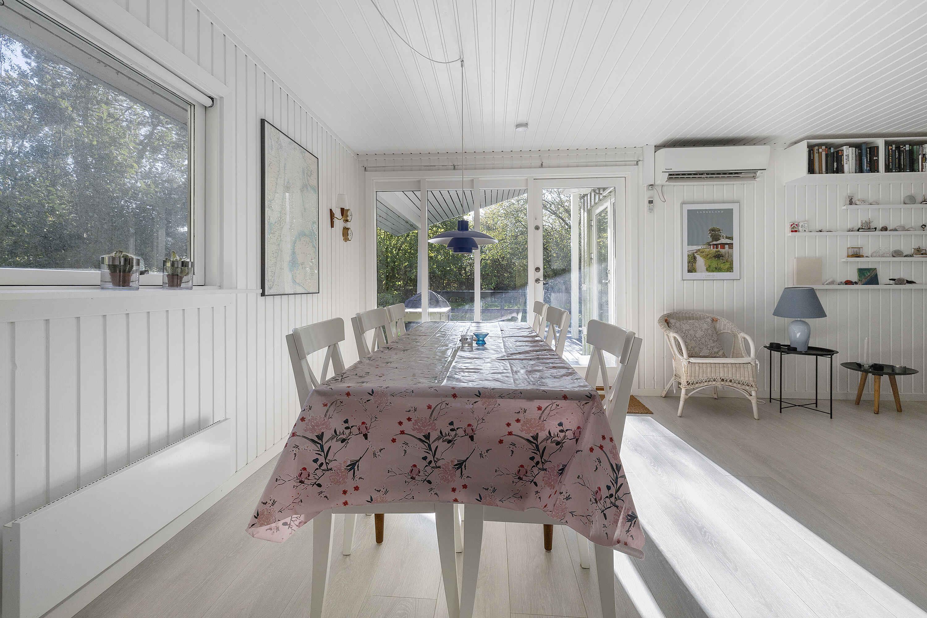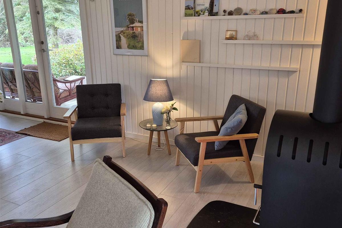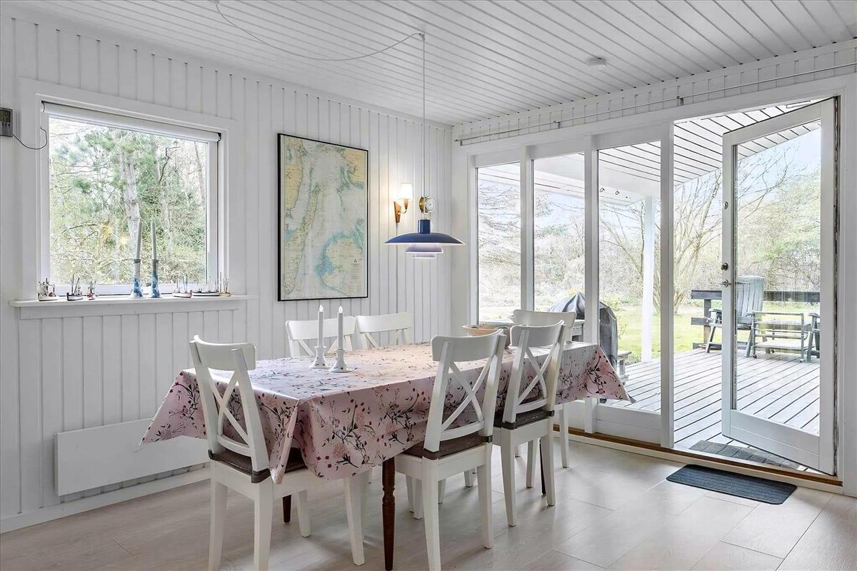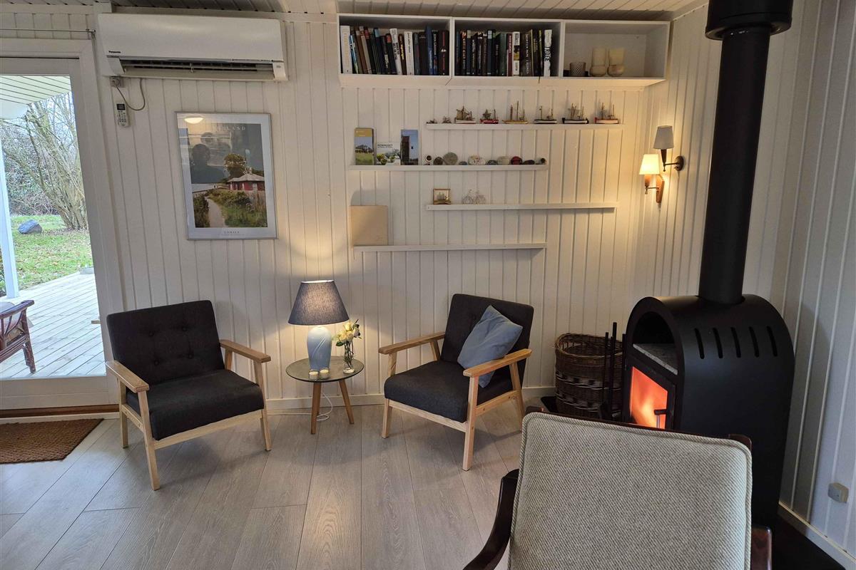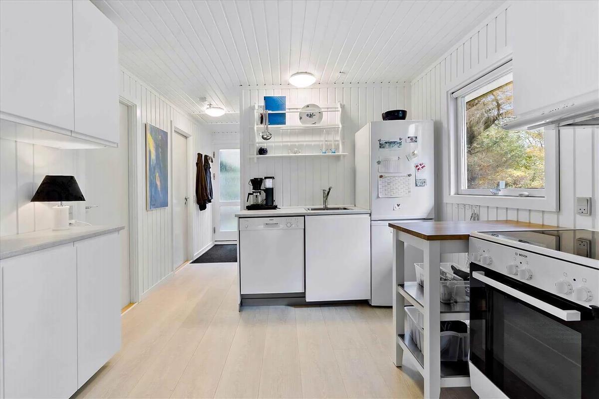 Dit charmante vakantiehuis in het noorden van Langeland biedt een echte vakantiesfeer in een schilderachtige omgeving. Binnen is het huis geschilderd in lichte kleuren die een luchtige en uitnodigende sfeer creëren. U zult zich direct thuis voelen in dit gezellige huis, gelegen in een rustige omgeving aan het einde van een klein zijstraatje in het noordelijkste Langeland, op slechts 2 minuten lopen van de zee. In 2025 is er een nieuw terras aangelegd. De nabijgelegen gedeelde steiger biedt gemakkelijke toegang tot de zee en is de perfecte plek om te genieten van de zonsopgang of een verfrissende duik te nemen. Bent u een fervent visser? Dan zult u genieten van de vele mogelijkheden die deze omgeving biedt. De indeling van het huis bestaat uit een hal, een badkamer met douche, een slaapkamer met een tweepersoonsbed en een kamer met een stapelbed. De ruime woonkeuken combineert keuken, eethoek en woonkamer in een harmonieuze sfeer. Vanuit hier geeft de deur toegang tot het overdekte terras, waar u ongeacht de weersomstandigheden van het buitenleven kunt genieten. Er is ook een bijgebouw bij het terras met stapelbedden. Of u nu houdt van ontspanning, natuurwandelingen, vissen of gewoon even wilt ontsnappen aan de drukte van alledag, dit vakantiehuis is de ideale plek om dit alles en meer te ervaren. Ga op verkenning in de omgeving, bezoek lokale bezienswaardigheden of ontspan gewoon en geniet van de schilderachtige sfeer die dit mooie huisje omringt. Twee honden zijn toegestaan, maar andere huisdieren zijn niet toegestaan vanwege allergieën. Let op: Niet te huur voor commercieel gebruik.
