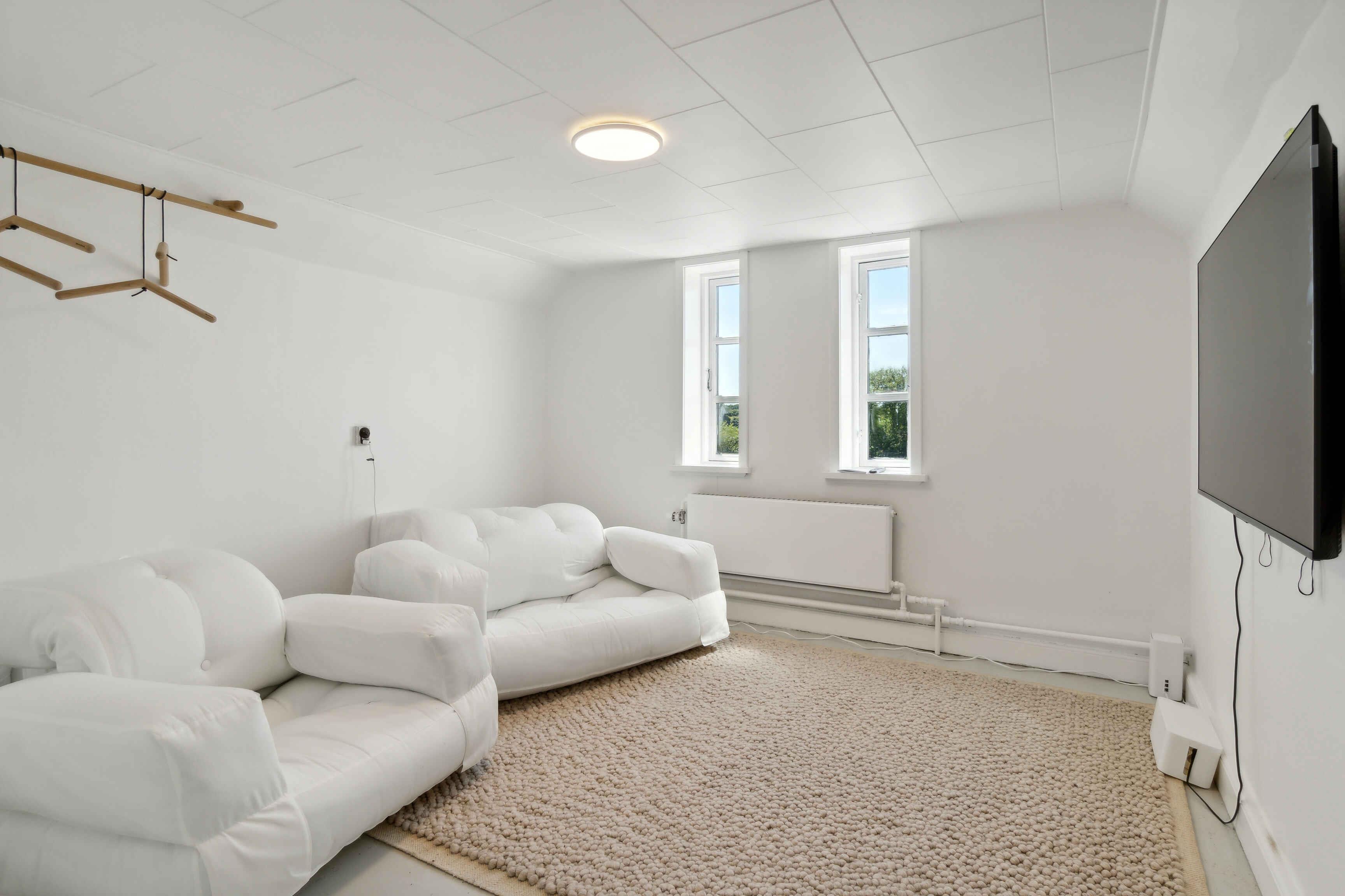 Het huis is een waardevol oud aftrektshuis van het Tranekær kasteel dat dicht bij het originele is gehouden, maar met moderne voorzieningen, waaronder een nieuw laadpunt voor elektrische auto's. Het huis is klein naar de maatstaven van de tijd waarin het werd gebouwd, maar heeft een groot hart. De tuin, met de grote oude walnotenboom die werd geplant toen het huis werd gebouwd, is onaangeroerd gebleven, wat de rust die het huis biedt, compleet maakt. Hier kunt u de schouders laten zakken en genieten van het rijke dierenleven dat overal opduikt. De wilde paarden grazen vaak op de vlakte aan het einde van de weg en kunnen ook worden gezien vanuit de relaxhoek van de tuin. Het huis is ingericht voor verschillende behoeften. Er zijn futonmatrassen (3 slaapplaatsen) met een combinatie van sofa/stoel/bed in de ene kamer voor de jongeren en comfortabele verstelbare bedden (3) in de andere slaapkamer. In de woonkamer kan de bank worden uitgeklapt tot een tweepersoonsbed voor gasten met mobiliteitsproblemen. Het huis is gerenoveerd met nieuw meubilair. In de omgeving zijn er veel mogelijkheden voor interessante activiteiten. Het kasteel, restaurant en café liggen op korte loopafstand. De bus stopt aan het einde van de weg en er is een prachtig bos voor wandelingen en een strand dichtbij. Lokale fietsverhuur is op een paar kilometer van het huis. Veel geschiedenis, cultuur en sfeer. WELKOM!