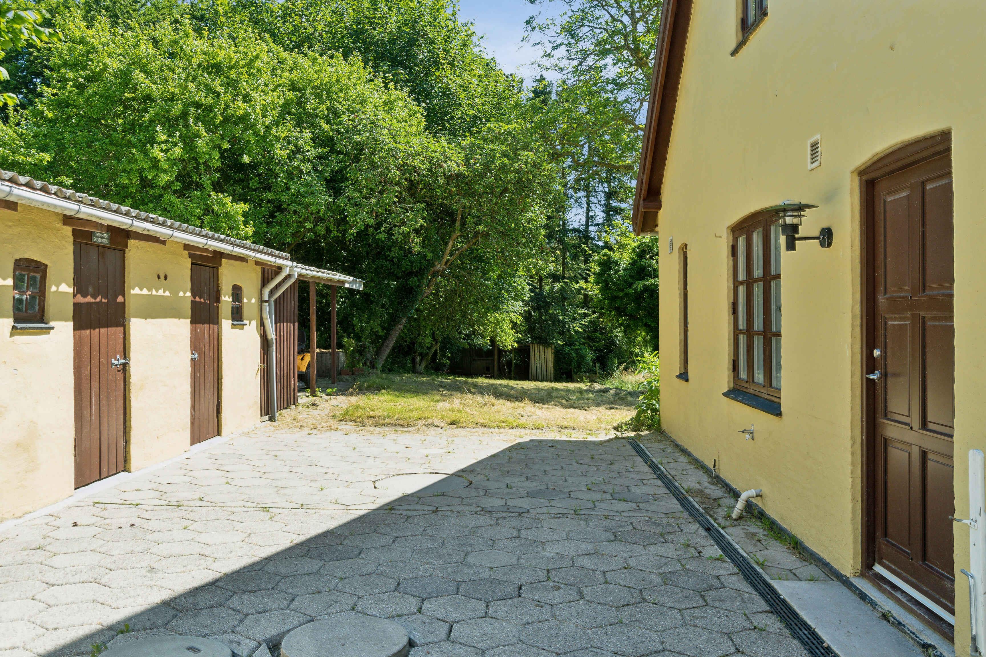 Ontspan in het originele pension uit 1904 bij Kasteel Tranekær, met moderne voorzieningen en een rustige tuin vol natuur.