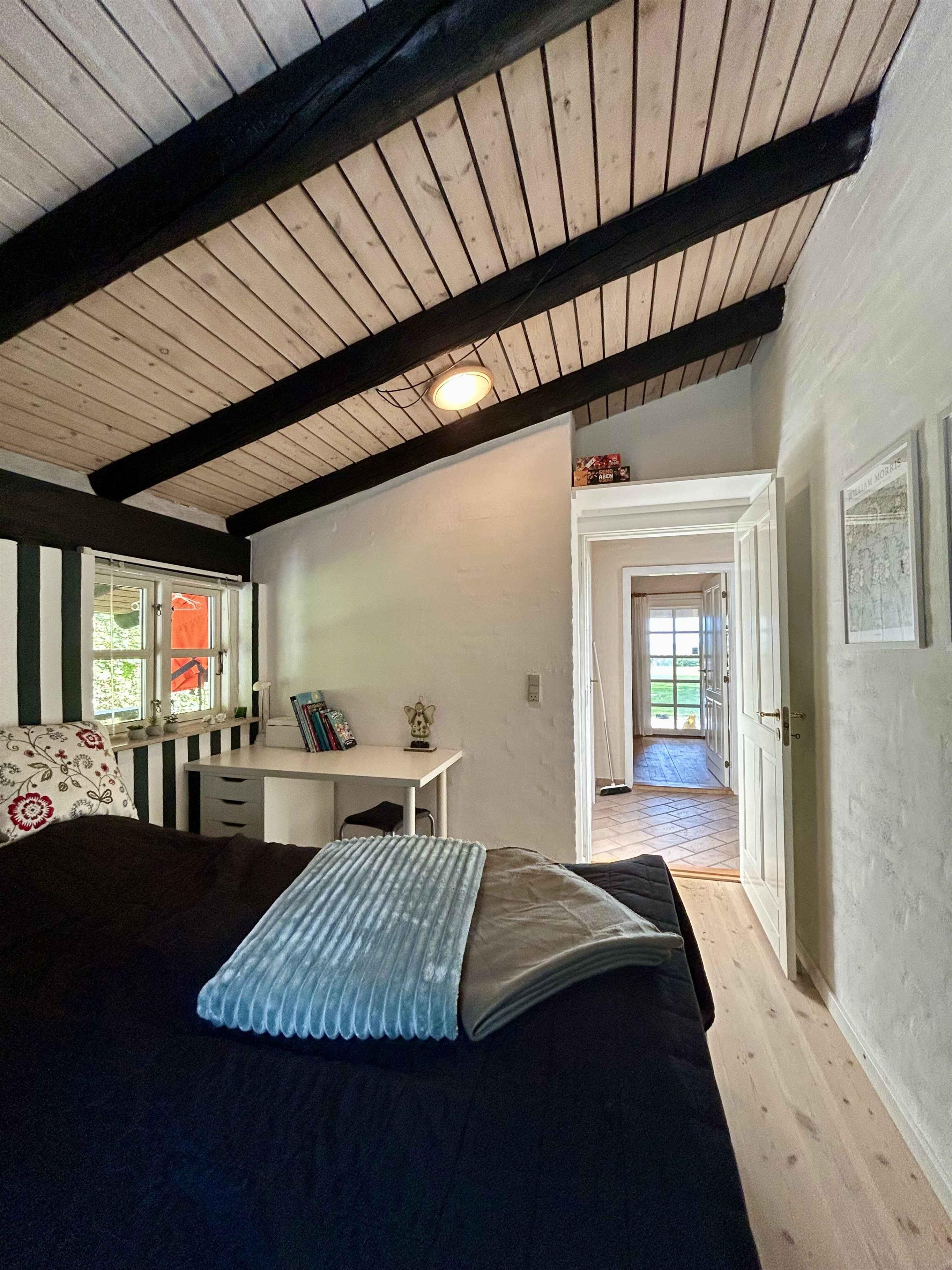 Welkom in ons vakantiehuis op de top van Langeland – een heel bijzondere plek waar rust, natuur en zeezicht samensmelten tot één onvergetelijke ervaring. Het huis ligt op de eerste rij aan het Storebælt (de Grote Belt), met een panoramisch uitzicht dat nooit verveelt – of de zon nu opkomt boven het water of de wind door de bomen ruist. Hier zakken je schouders automatisch en gaat de tijd net iets langzamer. Vanaf het terras kun je de schepen aan de horizon volgen, of gewoon met een kop koffie genieten van het geluid van de golven die tegen het strand slaan. Met een beetje geluk zie je zelfs bruinvissen jagen, vaak vlak voor het huis. De tuin leidt je rechtstreeks naar het water, waar je kunt zwemmen, vissen, steentjes laten stuiteren of gewoon je tenen in de heldere zee kunt dippen. Daarna kun je douchen in onze knusse buitendouche, uiteraard met heerlijk warm water het hele jaar door. Het huis heeft meerdere terrassen, dus of je nu de zon achterna zit of juist de koele schaduw zoekt, er is altijd een plekje om te ontspannen. Je vindt er zowel eetmeubels, plekken om met een kop koffie te relaxen als ligplekken om van het uitzicht te genieten – en voor de kinderen is er buitenspeelgoed en een paar stevige voetbaldoelen. Krijgen ze grasvlekken op de knieën, dan staan er in de bijkeuken zowel een wasmachine als een droger. Het zomerhuis is knus en persoonlijk ingericht – met liefde voor de plek en de omringende natuur. Het is onze vrijplaats en we hopen dat jij je hier net zo thuis voelt als wij. Er is ruimte voor rust en samenzijn – en voor de kleine momenten die een vakantie onvergetelijk maken. Binnen is het huis ruim, in totaal 137 m². Er zijn 4 slaapkamers, elk met een eigen, gezellige stijl. Alle kamers hebben tweepersoonsbedden, en in één kamer staat bovendien een stapelbed. Er is ook een babybedje dat je in elke gewenste kamer kunt neerzetten. Er zijn daarnaast twee badkamers – één aan elke kant, dicht bij de slaapkamers. Verder is er een ruimte met een tafeltennistafel en natuurlijk de grote gecombineerde woonkamer en keuken, waar wij het grootste deel van onze “binnen-tijd” doorbrengen met spelletjes, tekenen en gezelligheid. Dat kun jij ook: op de planken, in lades en kasten vind je een selectie familievriendelijke spelletjes en tekenmaterialen. De keuken is goed uitgerust, dus als je van lekker koken houdt, hoef je geen concessies te doen! We proberen ook basiskruiden, bakpapier enz. aan te vullen wanneer we er zelf zijn; en heb je na je verblijf nog iets over, dan zullen de volgende gasten dat zeker waarderen. Geloof ons: zodra je bent ingecheckt, wil je eigenlijk niet meer weg. Maar krijg je toch zin om de omgeving te verkennen, dan zit je op slechts 5 km van het supergezellige Lohals. Hier vind je een fijne supermarkt, restaurants, een beachbar, café, bakker, minigolf, kringloopwinkels en een mooi havenplein waar vooral in de zomer verschillende activiteiten plaatsvinden, zoals grillavonden, zomermuziek en marktdagen. Hier is alles wat jullie nodig hebben om te ontspannen – met familie of vrienden. Een uitvalsbasis met ruimte voor lachen, samenzijn en mooie herinneringen. Het huis is met hart en aandacht gemaakt, zodat je je vanaf het eerste moment thuis voelt. We hopen dat jullie er net zo van genieten als wij – elke keer dat we hier zijn.