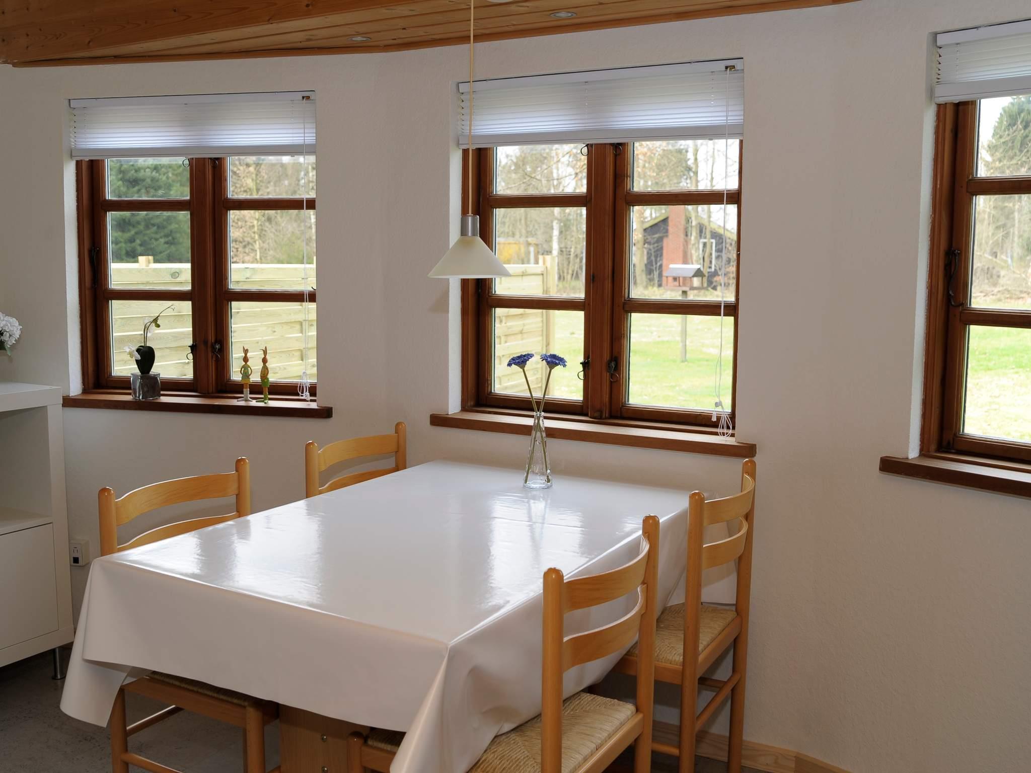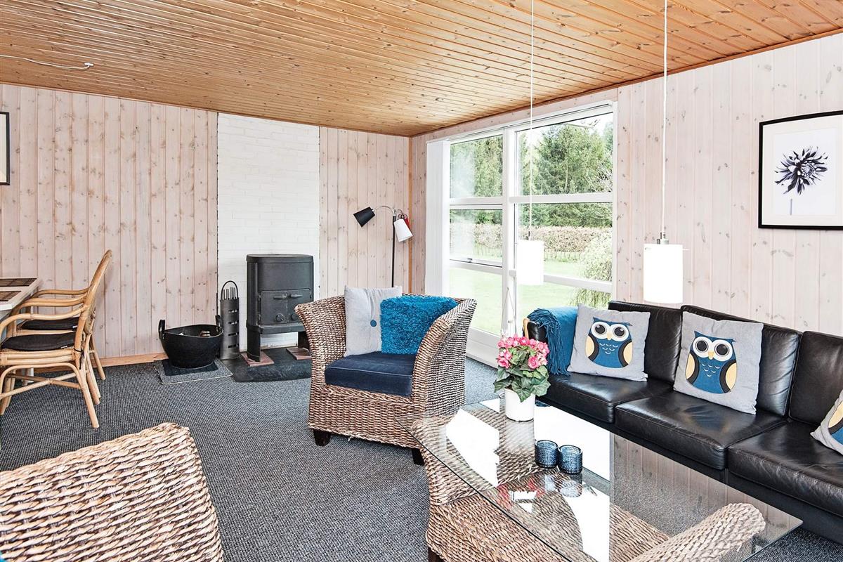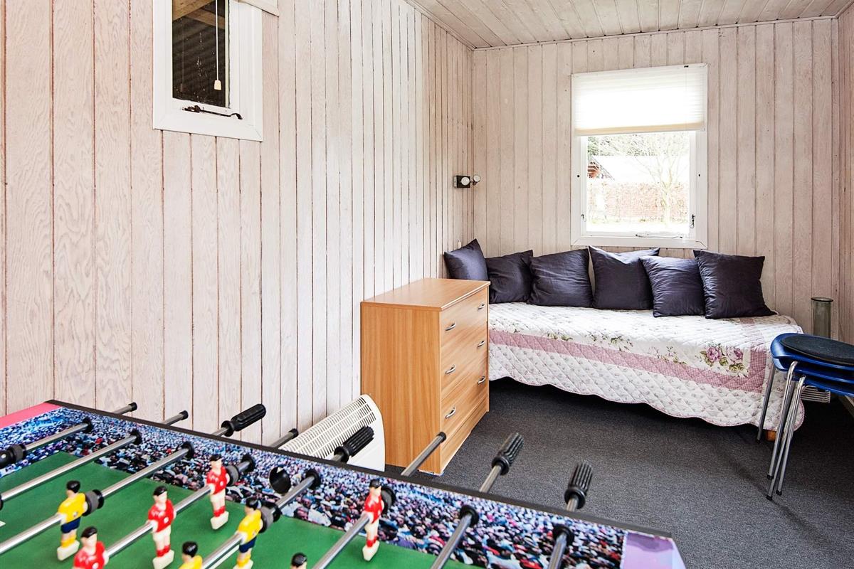 Älteres Ferienhaus auf einem großen, offenen Naturgrundstück mit Schaukel, Fußballtor und Sandkasten für die Jüngsten sowie Rasenfläche für Ballspiele. Im Haus wurden Küche und Bad zuletzt 2010 renoviert. Es gibt zwei Schlafzimmer; eines mit Doppelbett, das zweite mit Etagenbetten. Im Annex/Nebengebäude wurde ein Aktivitätsraum mit Kickertisch und Dartscheibe eingerichtet.