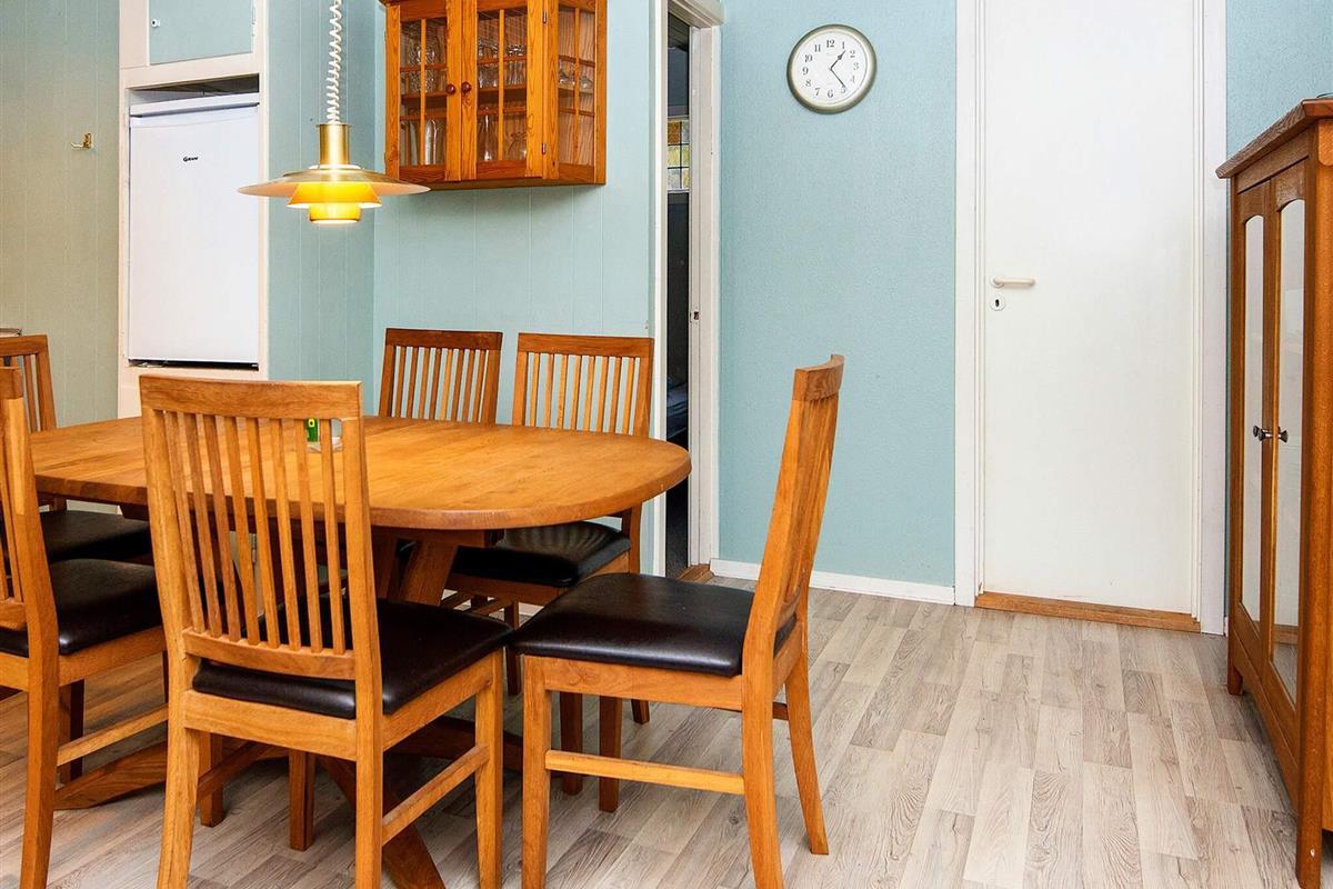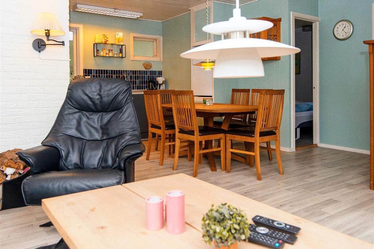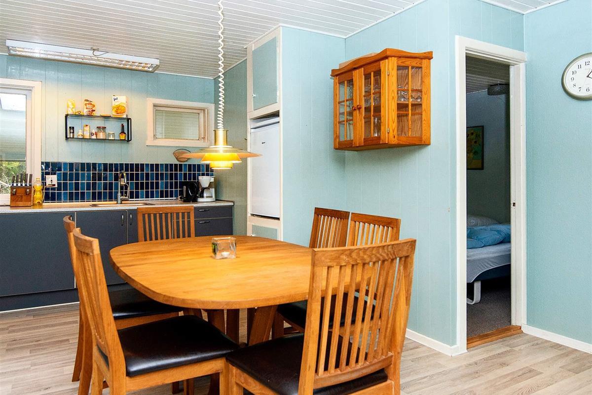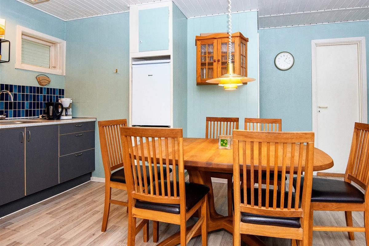 Älteres Ferienhaus auf einem geschützten Naturgrundstück, zuletzt 2011 ansprechend renoviert. Es hat einen Wohnbereich mit Holzofen und offen integriertem Küchen-/Essbereich. Ein Teil der Kücheneinrichtung wurde erneuert. Chromecast vorhanden zum Streamen eigener TV-Anbieter. Das Bad im Haus ist älter. Genießen Sie die Sonnentage draußen auf der Terrasse. Zudem teils überdachte Terrassenfläche mit Filetierbank für Angler in einer Ecke. Schuppen mit Gefriertruhe und Waschmaschine.