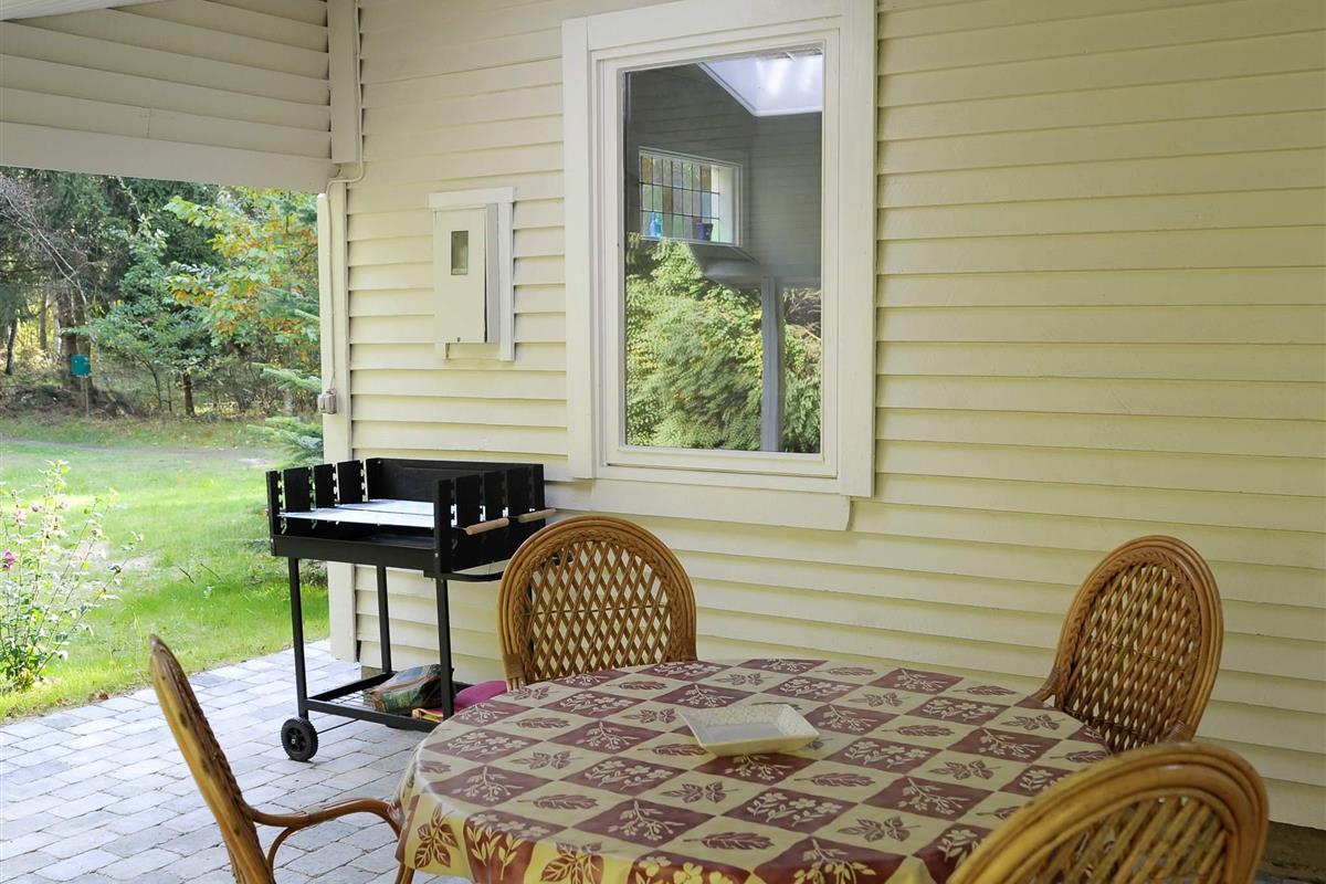 Und: Terrasse, überd. Terrasse, E-Heiz., Grill, Naturgrundst. m. Bäumen 3384 m2, gemischte Möblierung, Ferienhausgebiet, Nichtraucherhaus