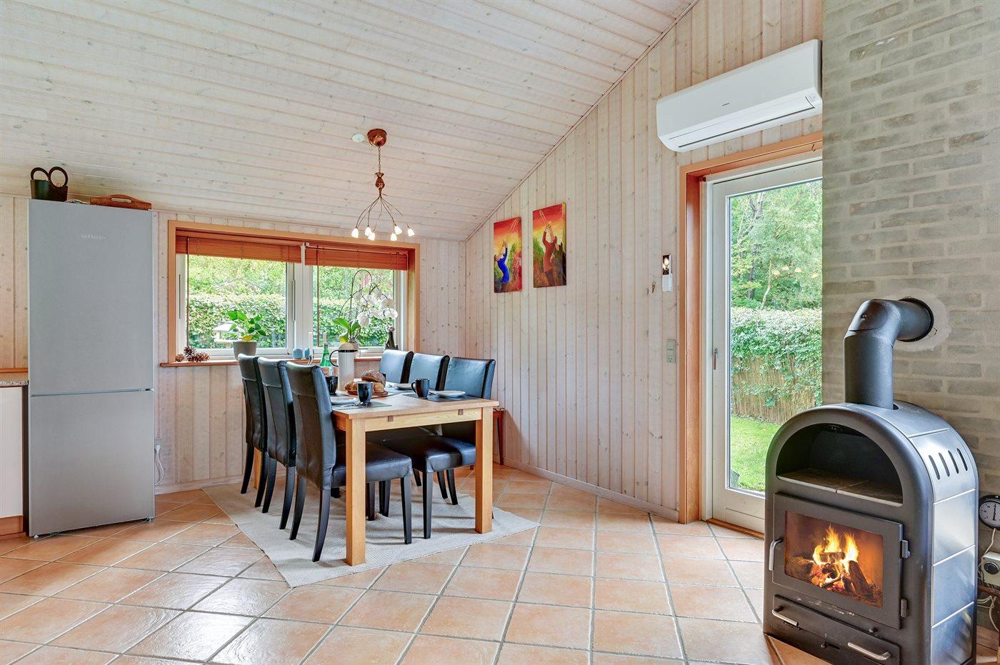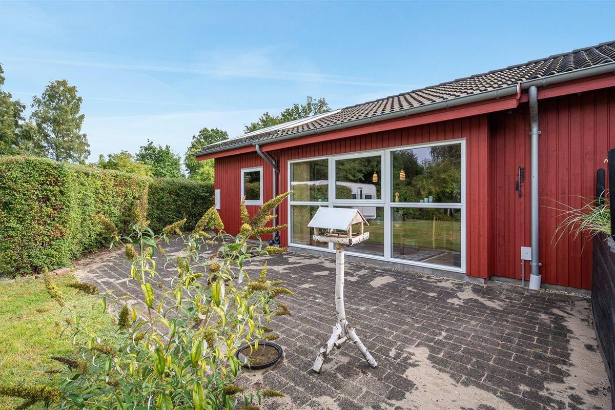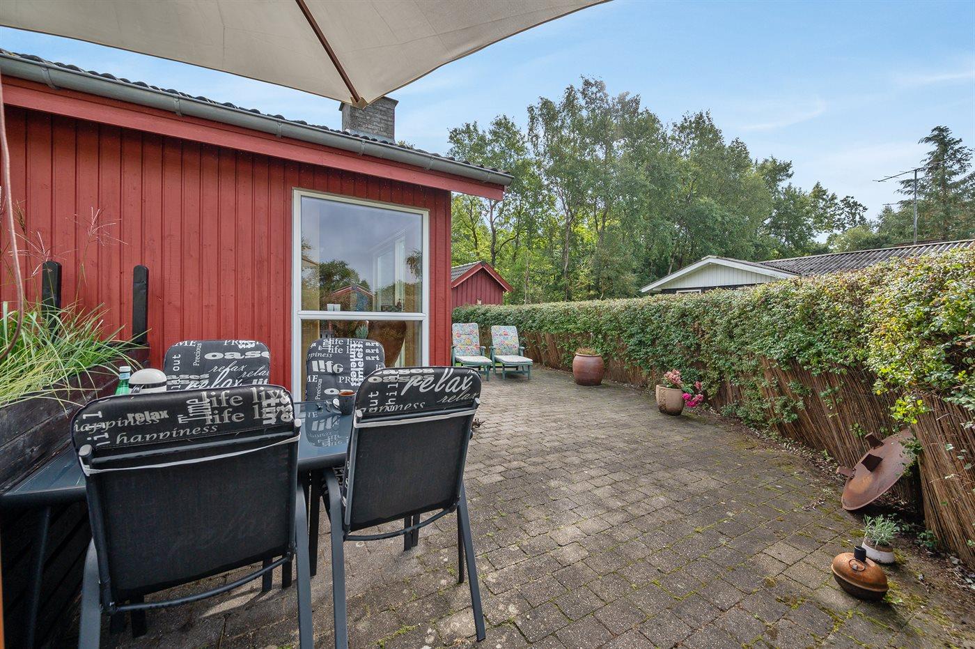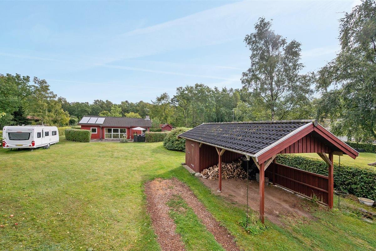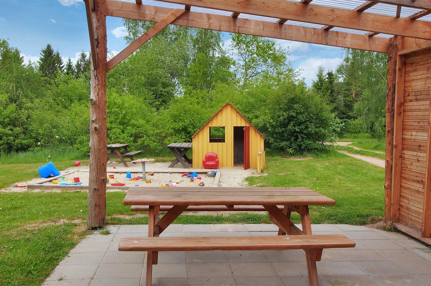 De vakantiewoning is gelegen op een 1050 m² groot aangelegde tuin. De grond is omheind. Afstand tot meer 300 m. Dichtstbijzijnde winkel 5000 m. Bij de vakantiewoning hoort terras. Afstand tot speelplaats 200 m. Shelter. Barbecue. Carport ter beschikking. Parkeerplaats bij het huis.