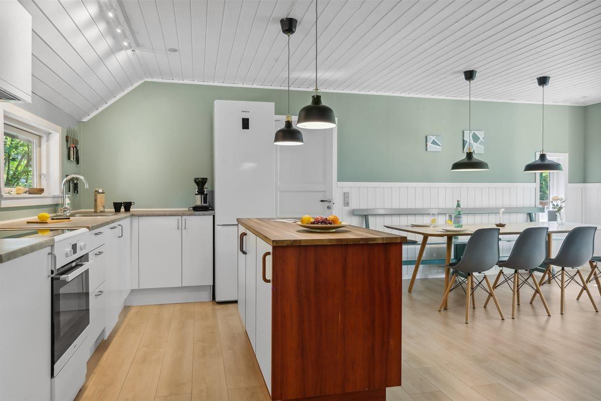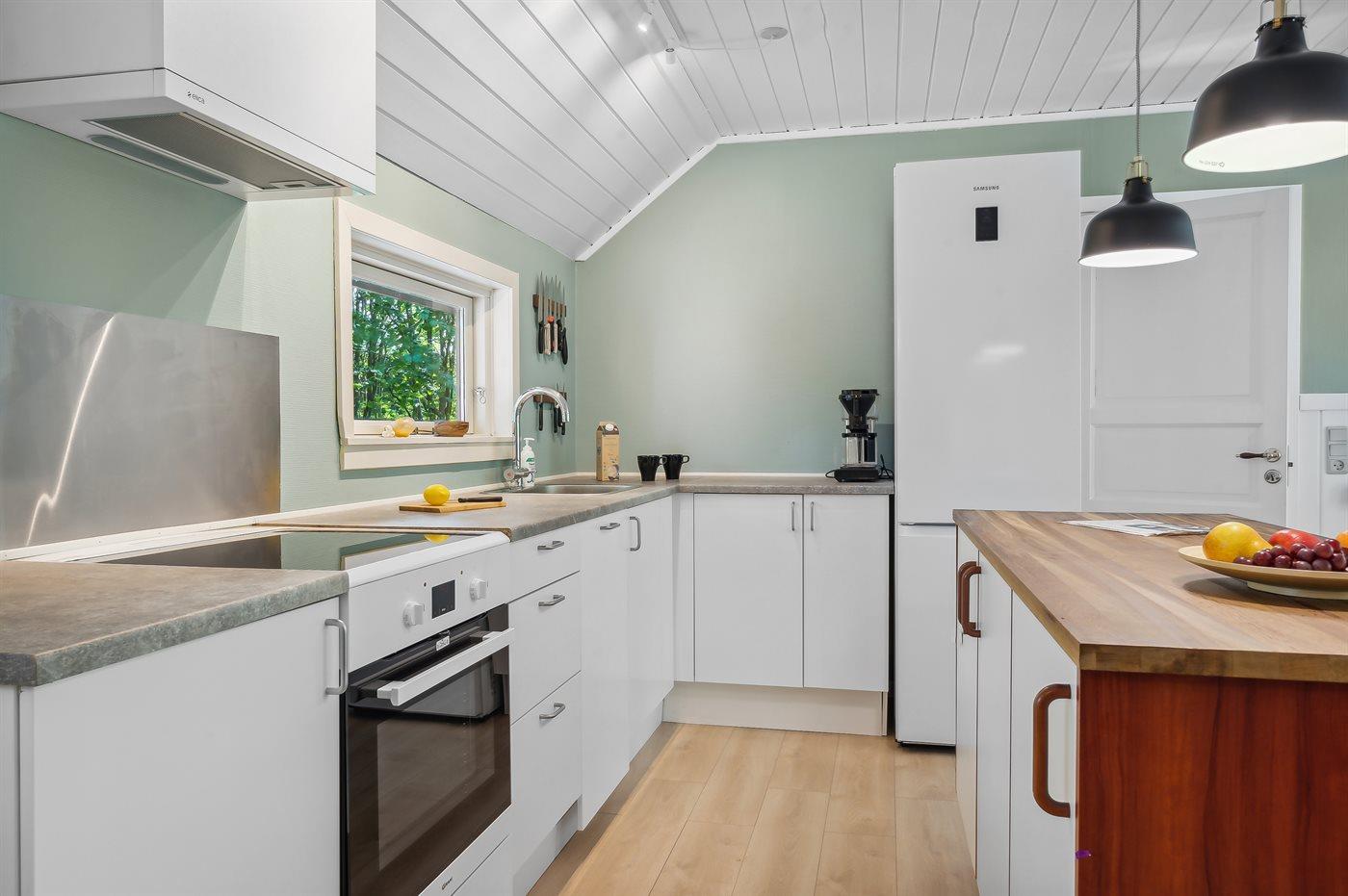 De keuken is uitgerust met koelkast Er is 4 inductiekookplaten, heteluchtoven, magnetron en vaatwasser.
