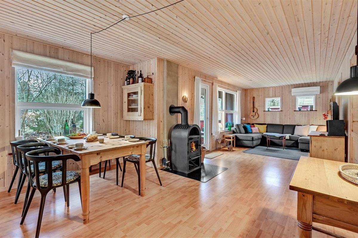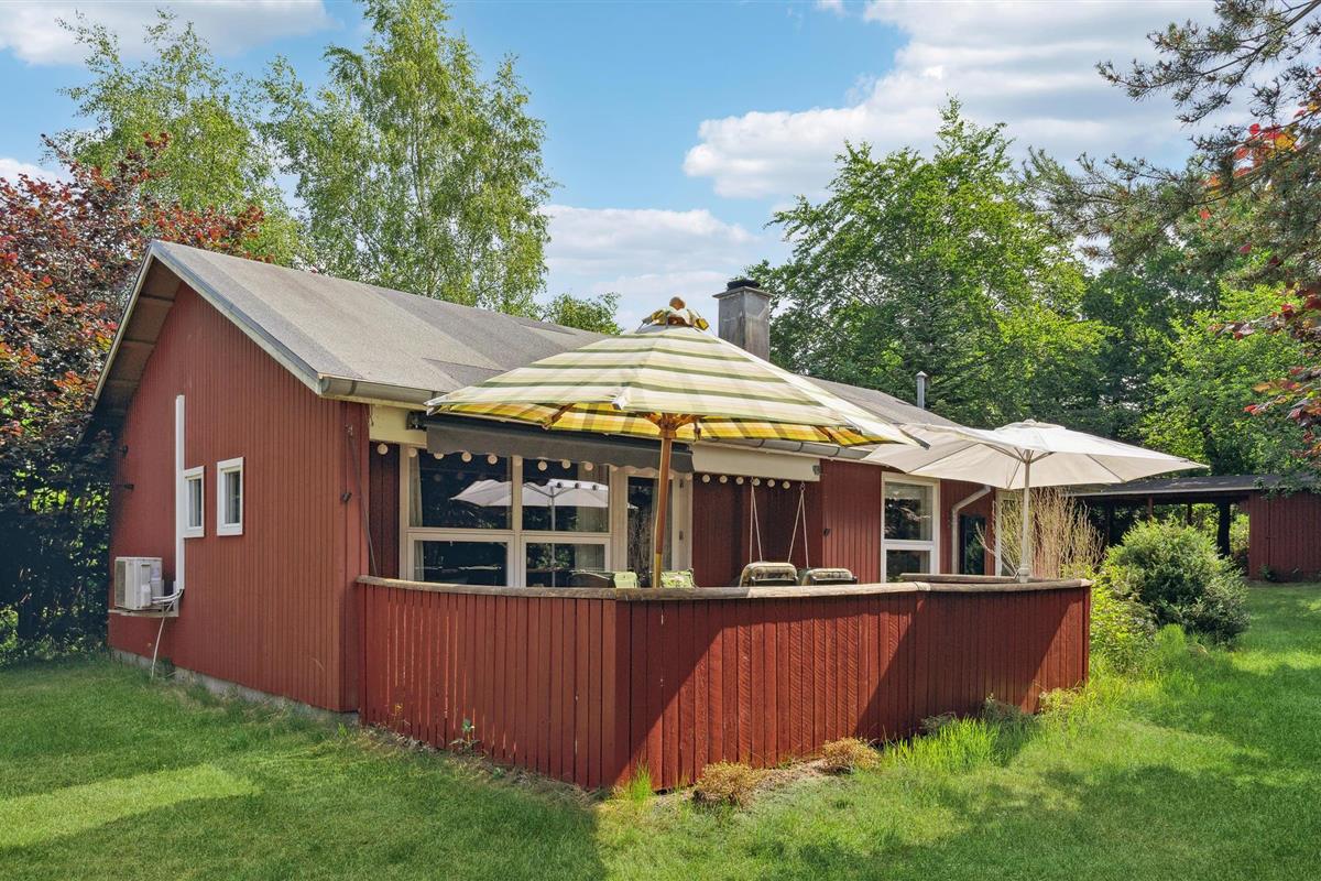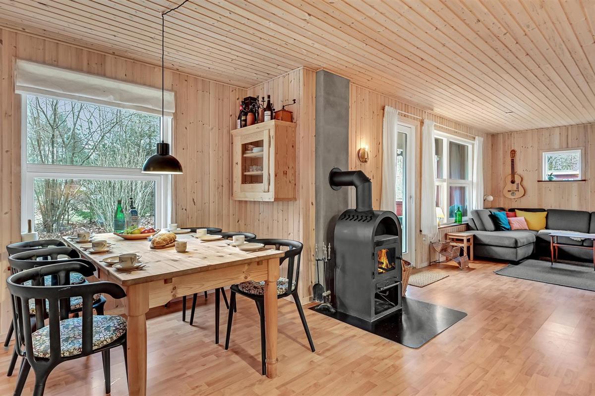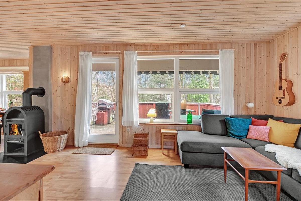 Ontspan in dit charmante houten vakantiehuis in het rustige Truust, met open haard, tuin en nabij de rivier Gudenåen.