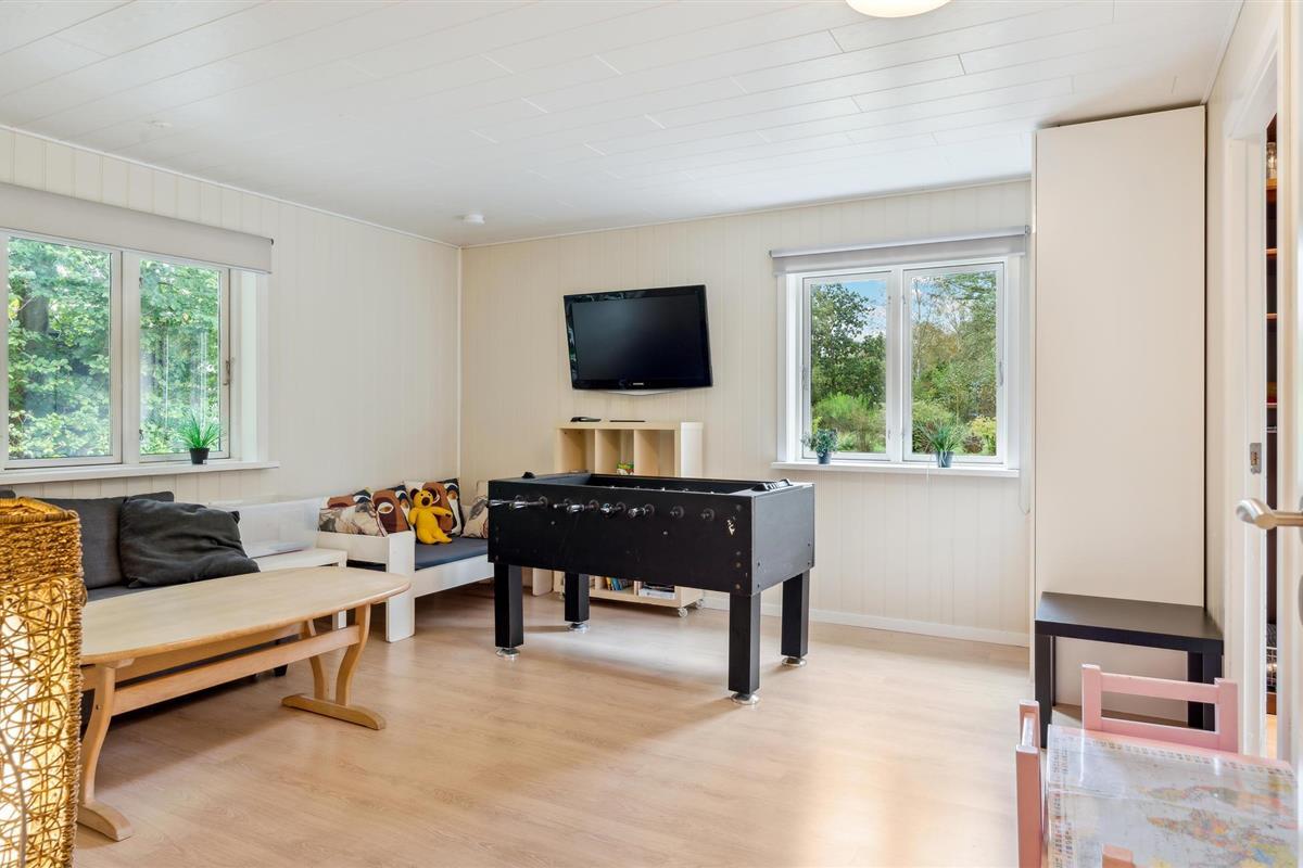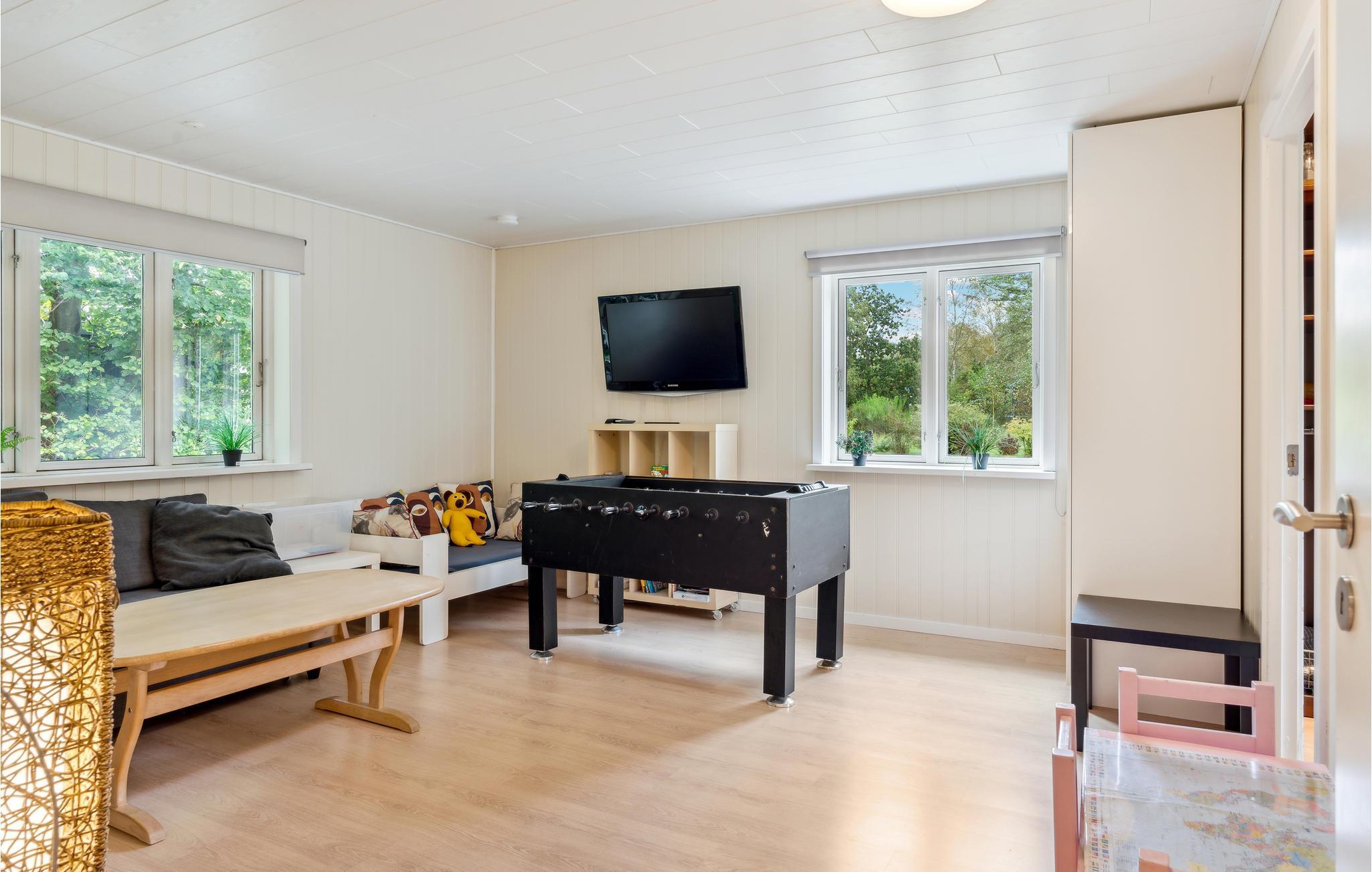Het gezellige huis verwelkomt je op een prachtige locatie omringd door bomen. Je zult je meteen thuis voelen in de lichte kamers met gezellige inrichting. Het huis biedt ruimte voor de grotere familie of een groep vrienden en heeft mooie gemeenschappelijke ruimtes. De tijd vliegt voorbij als je een potje tafelvoetbal speelt. Na een bewogen dag en een rustgevende saunasessie, maak het jezelf gemakkelijk op de bank en praat tot laat in de avond.