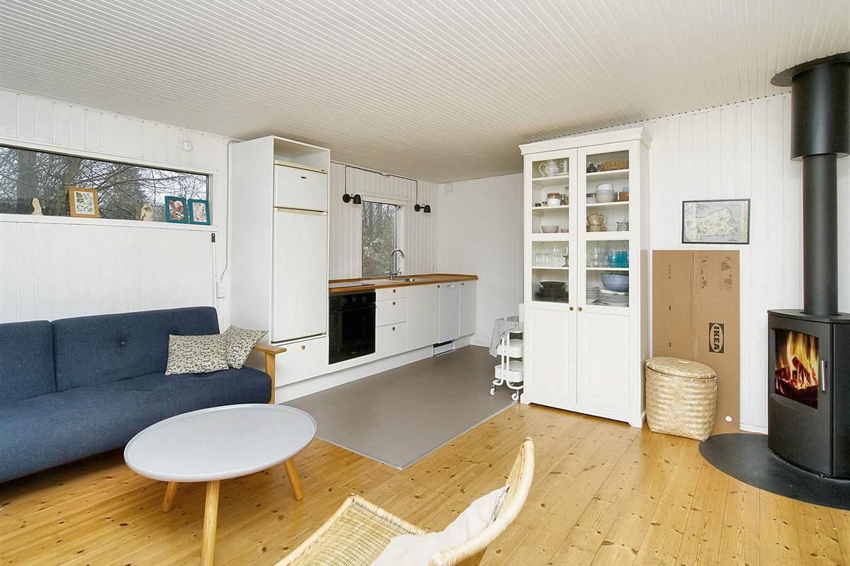 Bei Tuse Næs finden Sie unweit der Küste dieses ältere Ferienhaus. Es liegt in einem ruhigen Ferienhausgebiet mit gemeinschaftlichem Badesteg und Petanque-Platz. Das Haus ist für die kleine Familie oder zwei Paare geeignet und stellt zwei Schlafzimmer, Küche, Bad und Wohnzimmer mit Holzofen zur Verfügung. Auf der überdachten Terrasse kann man die Mahlzeiten des Tages und auch gemütliche Grillabende genießen.