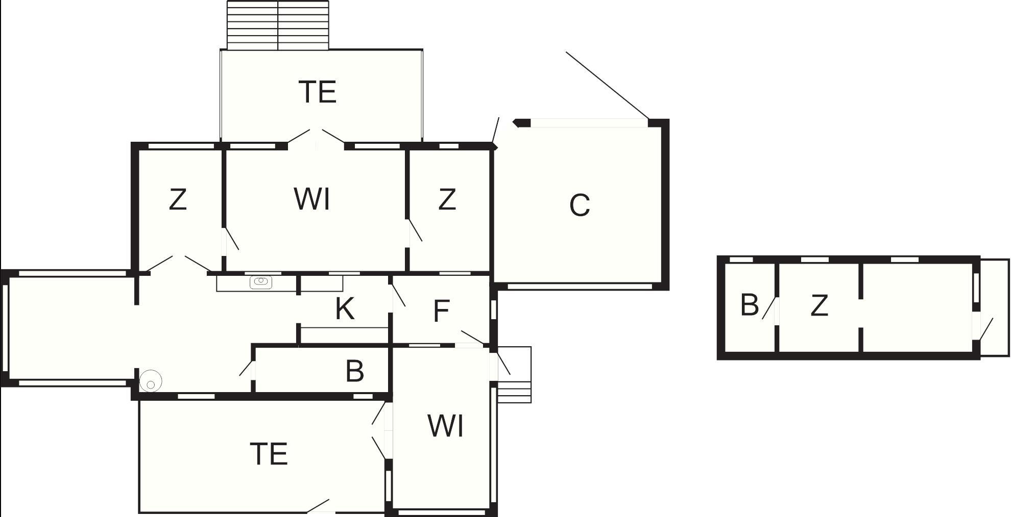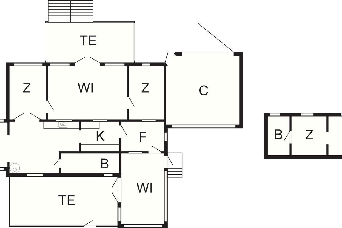 Die Unterkunft ist in ein Haupthaus und einen separaten Anbau unterteilt. Das Haupthaus verfügt über zwei Schlafzimmer mit Doppelbetten, während der 20 m² große Anbau vier zusätzliche Schlafplätze in Etagenbetten bietet. Beide Gebäude wurden geschmackvoll renoviert, und es gibt zwei moderne Badezimmer mit Duschen – eines im Haupthaus, das auch eine Waschmaschine enthält, und eines im Anbau. Das Herzstück des Hauses bildet der offene Küchen- und Wohnbereich mit Essbereich, gemütlichen Sitzgelegenheiten und Kamin – ideal für Familienfeiern. Highspeed-Internet ist im gesamten Gebäude verfügbar.