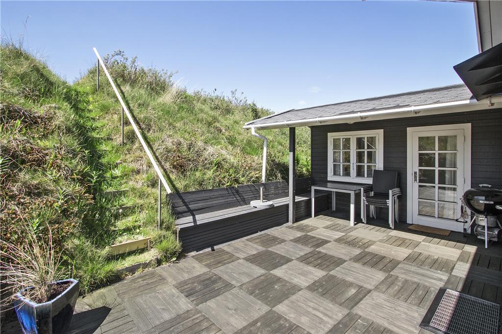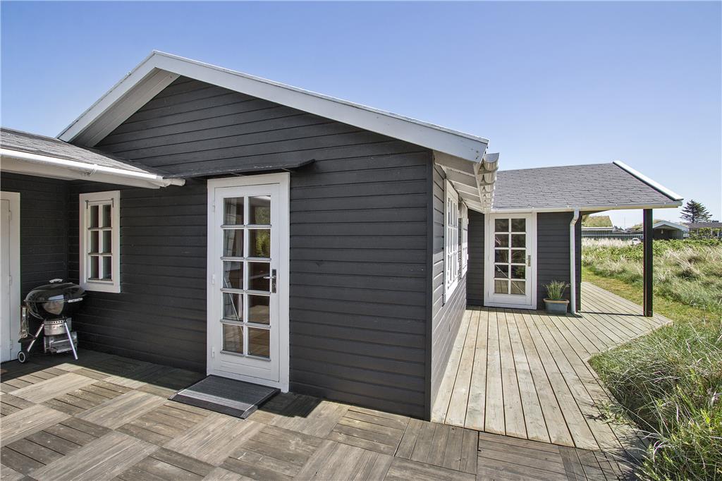Die Außenbereiche des Ferienhauses sind ideal für Groß und Klein. Das umliegende Naturgrundstück verfügt über eine Rasenfläche, auf der Kinder spielen können, während die Erwachsenen die Ruhe bei einer Tasse Kaffee genießen. Die friedliche Atmosphäre mit Vogelgesang und der Meeresbrise lädt zum Verweilen ein. Die Terrasse ist der perfekte Ort für ein Frühstück in der Sonne oder einen gemütlichen Grillabend unter freiem Himmel.