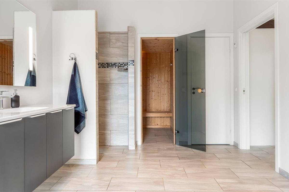 Er is 2 badkamers met douchehok en 2 toiletten. Er is vloerverwarming in 2 van de badkamers. De sauna biedt de gelegenheid tot ontspanning.
