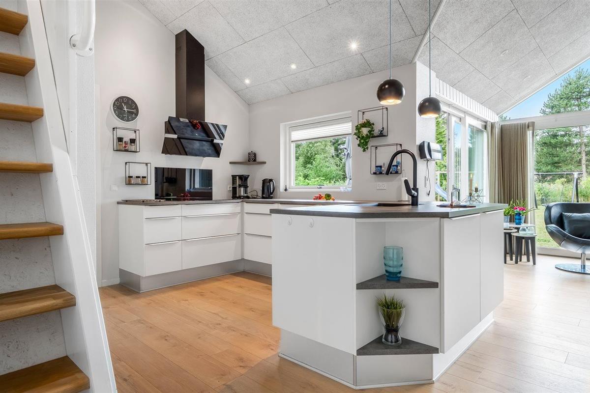 De keuken is uitgerust met koelkast Er is 4 inductiekookplaten, heteluchtoven, magnetron en vaatwasser.