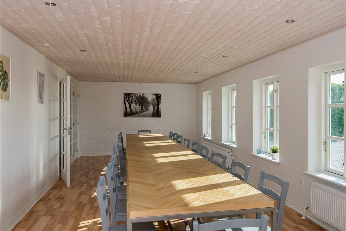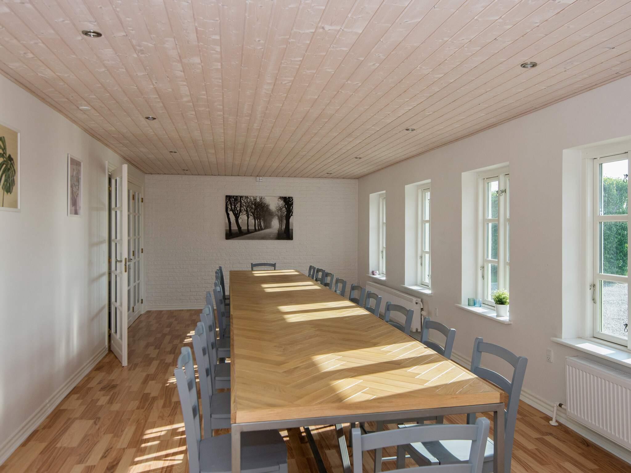 Hell und funktional eingerichtetes, sehr geräumiges Feriendomizil am Randers Fjord, näher bezeichnet dicht an Udbyhøj Havn. Hier können Sie sich auf 450 m2 Wohnfläche ausbreiten und haben nicht weniger als acht Schlafzimmer und zwei Bäder sowie einen 50 m2 großen Aktivitätsraum mit Tischtennis, Poolbillard, Tischkicker und Darts für den Freizeitspaß zur Verfügung.