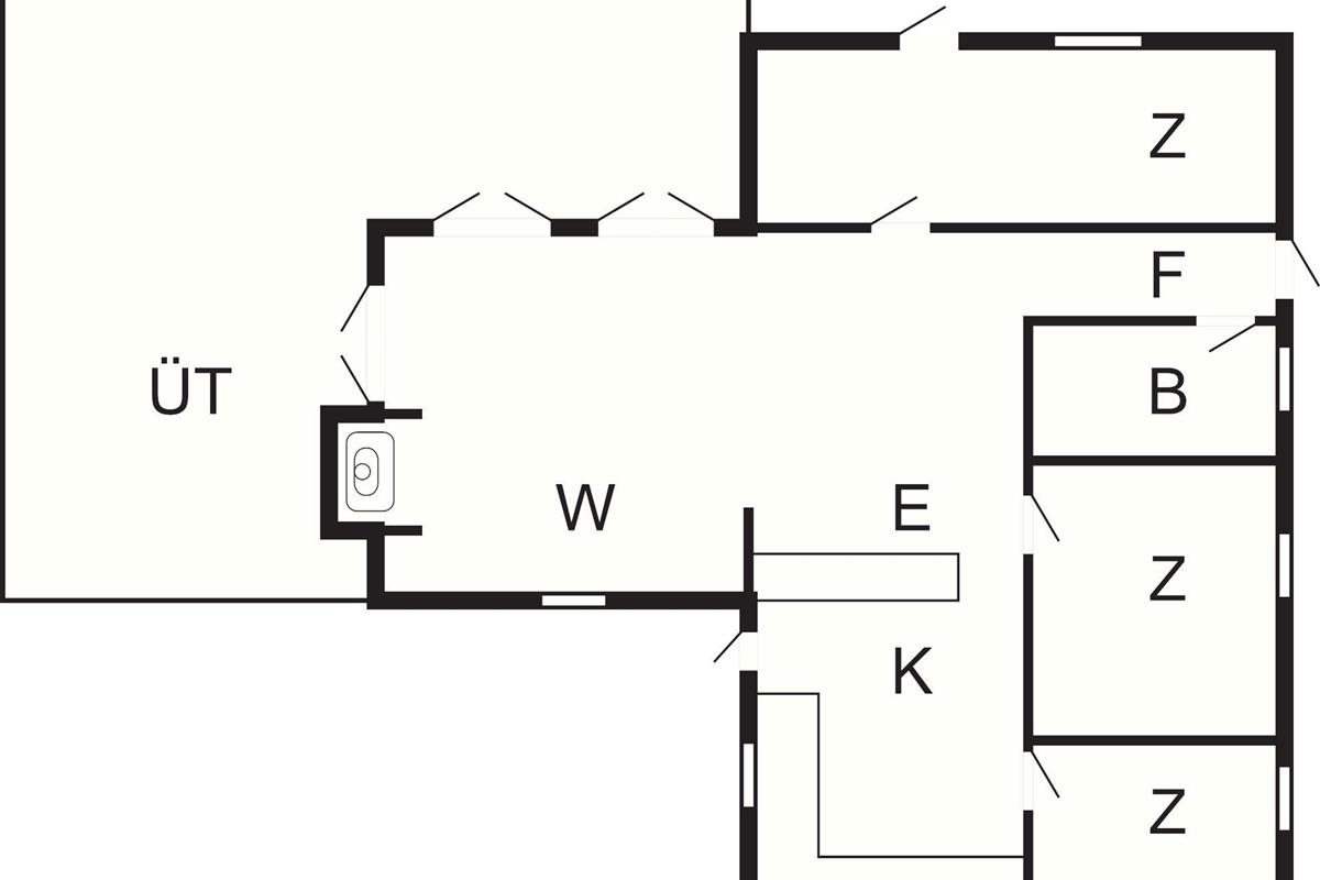 Das Ferienhaus verfügt über Eingangsdiele, drei Schlafzimmer, Abstellraum und ein Badezimmer. Zudem gibt es einen offenen Küchen-/Wohnbereich für das Familienleben.