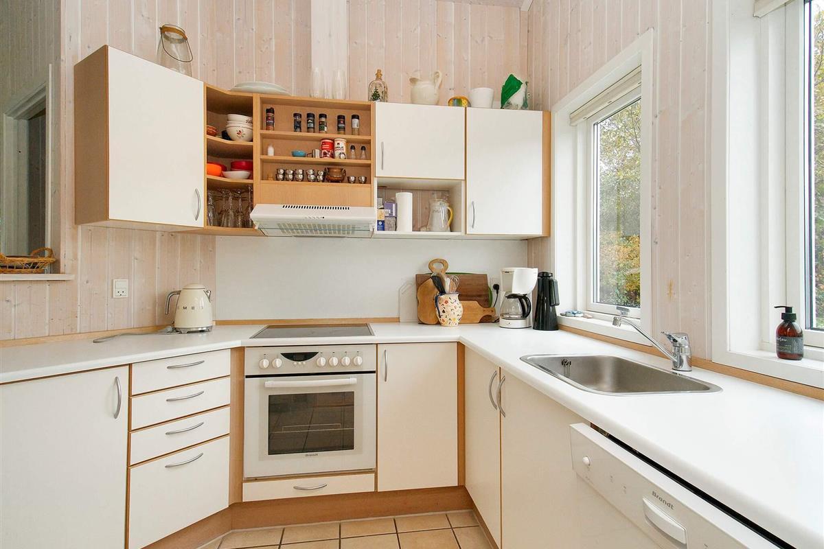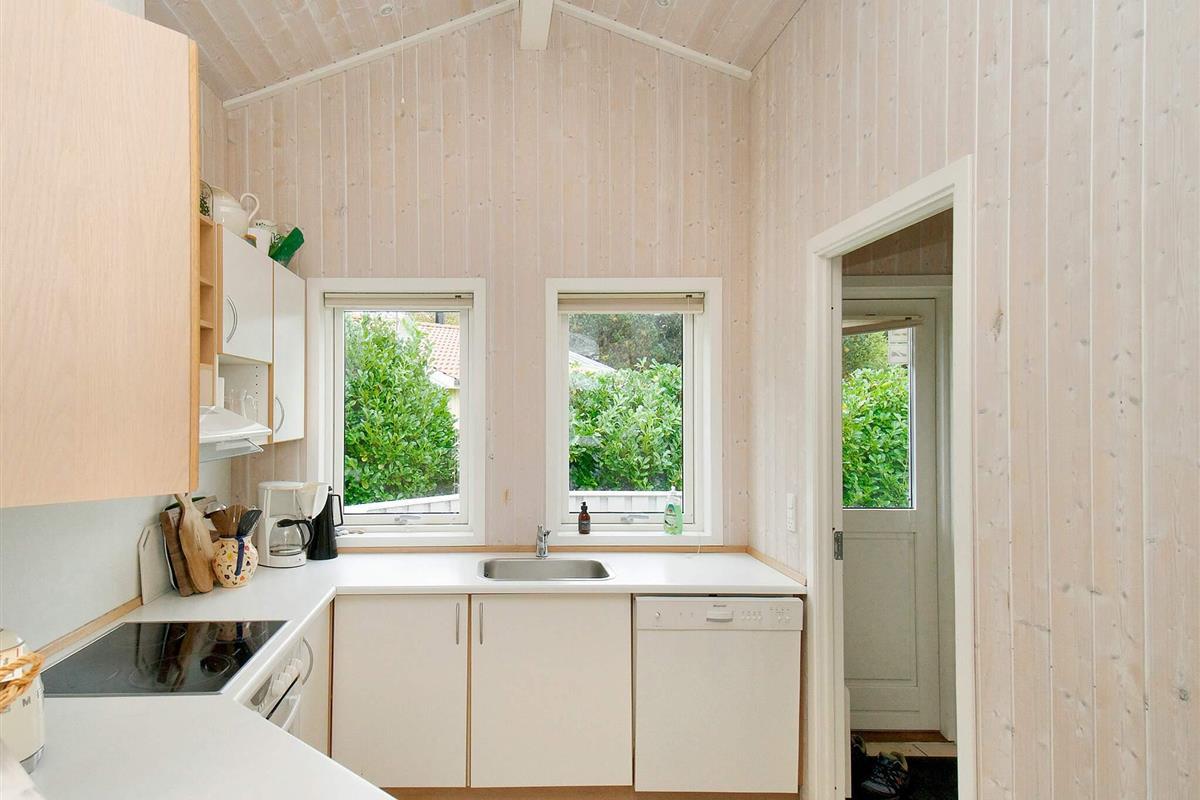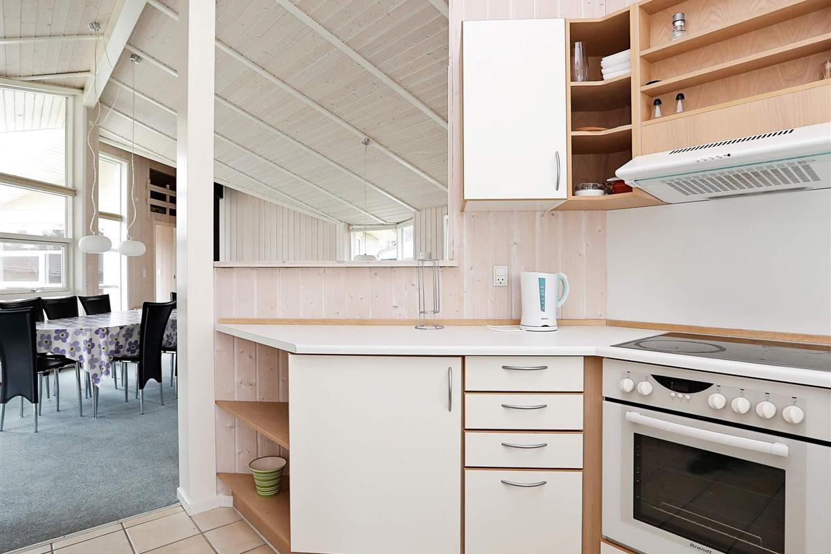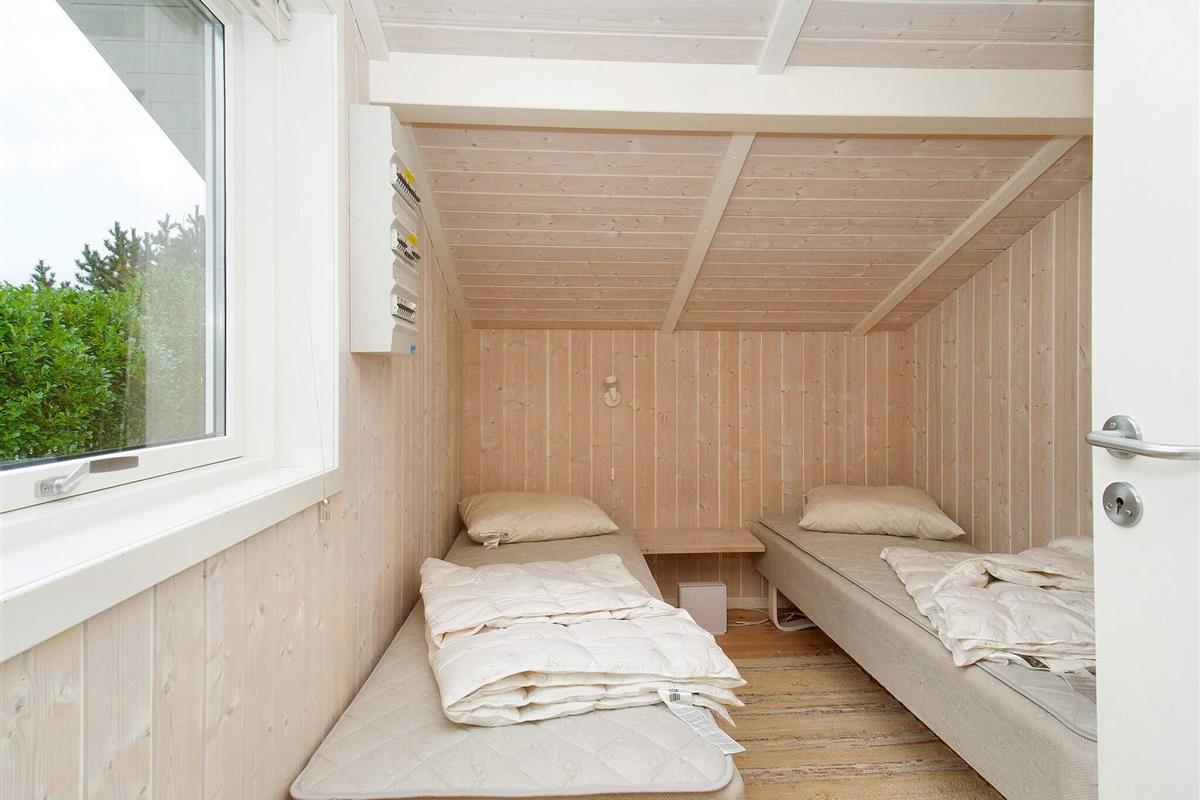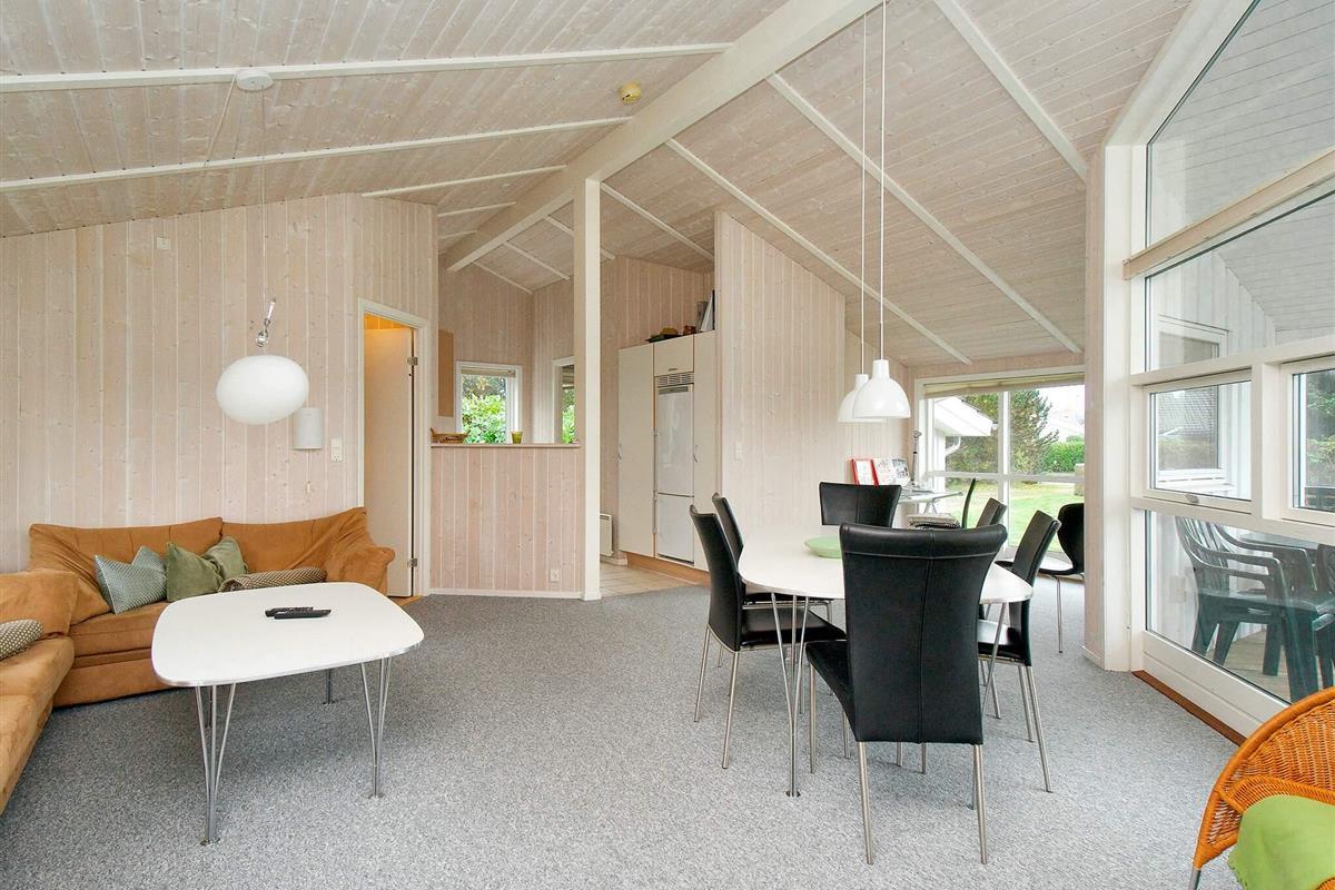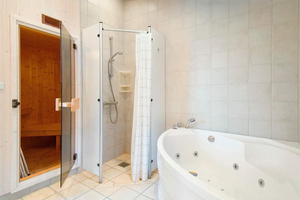 Ferienhaus in einem geschlossenen Gebiet, nicht weit vom Strand gelegen. Das Haus hat einen großen Küchen- /Aufenthaltsraum sowie drei gut eingerichtete Schlafzimmer mit Schrankplatz. Gemütlicher Schlafboden mit Schlafplätzen für zwei Personen. Das Haus hat zwei Badezimmer, eines mit Zugang zum 2-Personen-Whirlpool und einer Sauna für vier Personen.