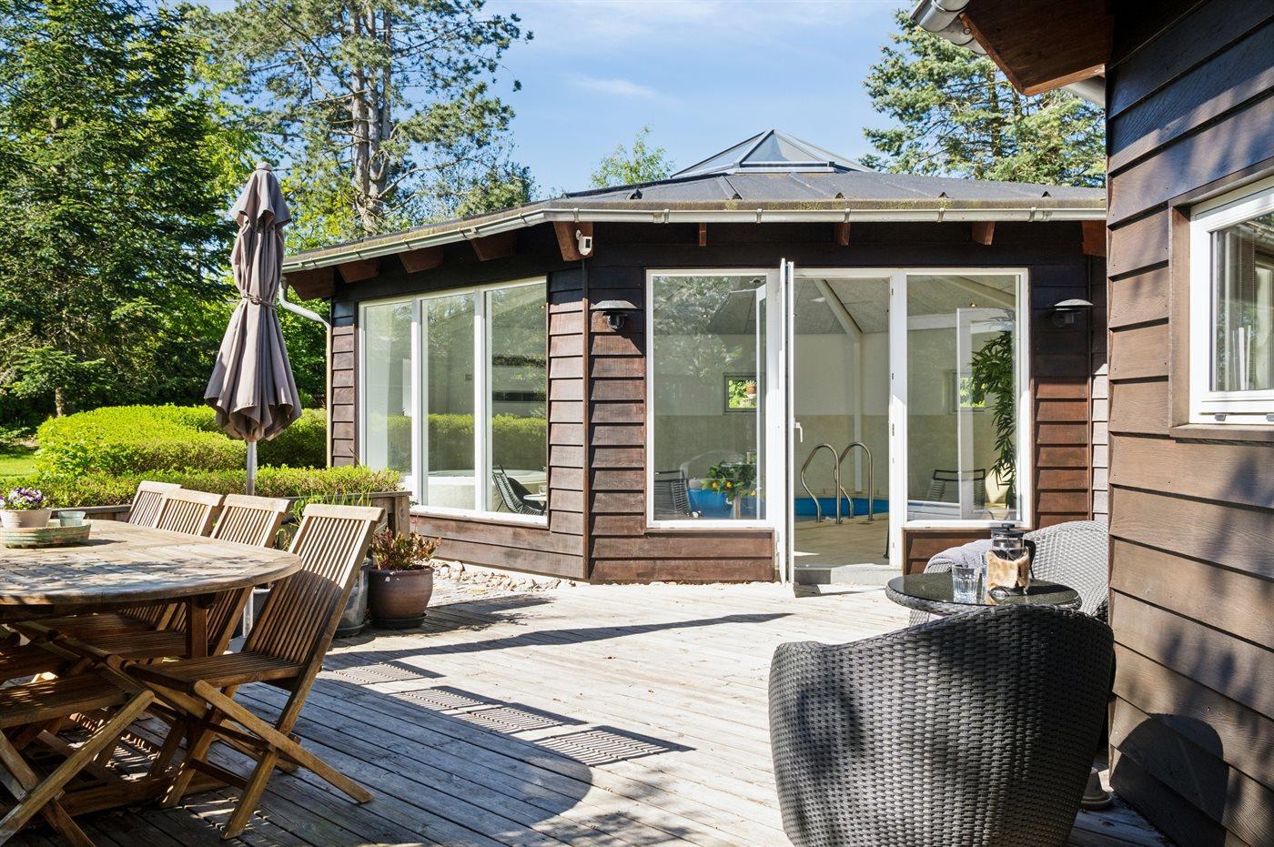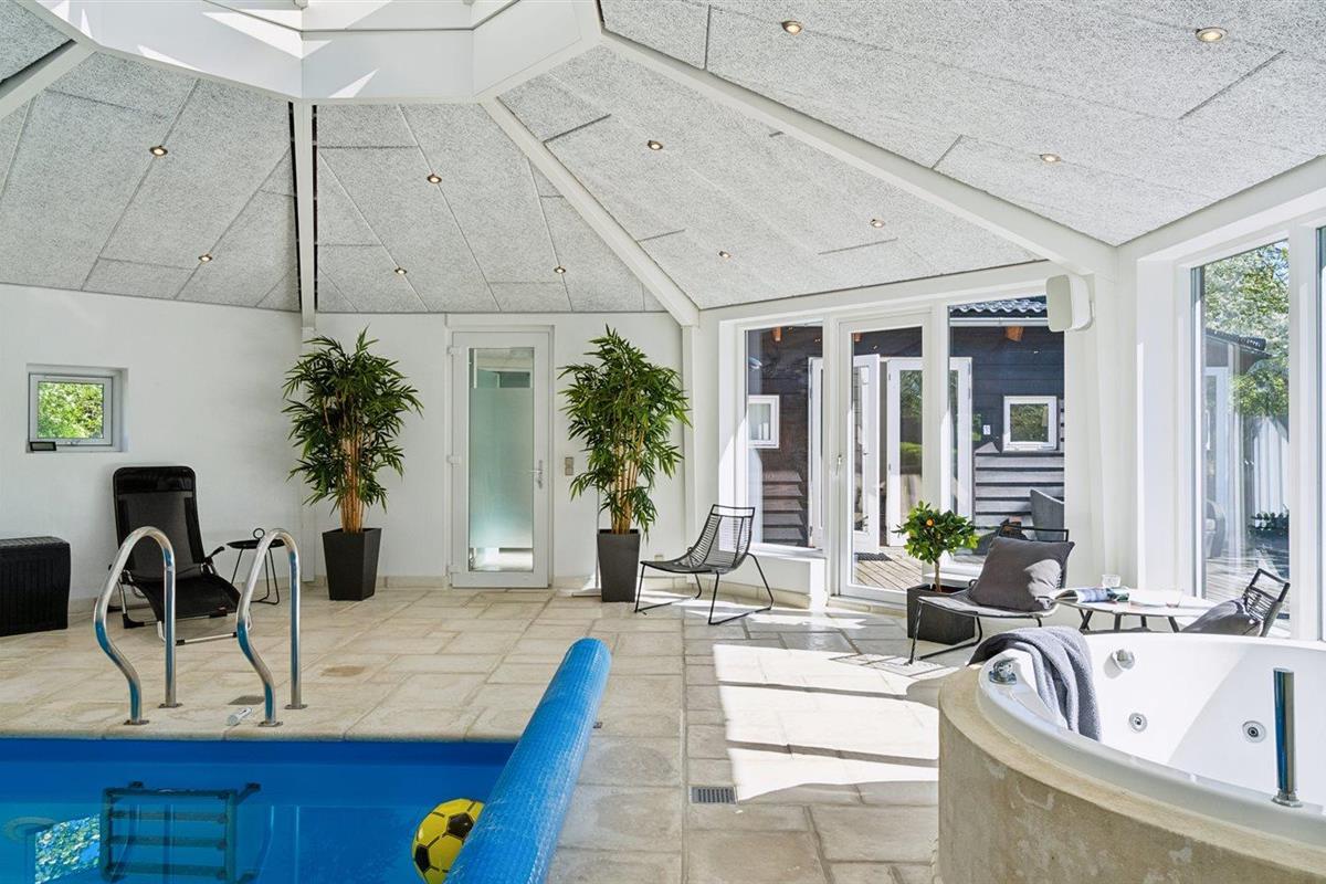 Ruim en modern vakantiehuis met binnenzwembad, bubbelbad en grote tuin nabij zee in Udsholt Strand.