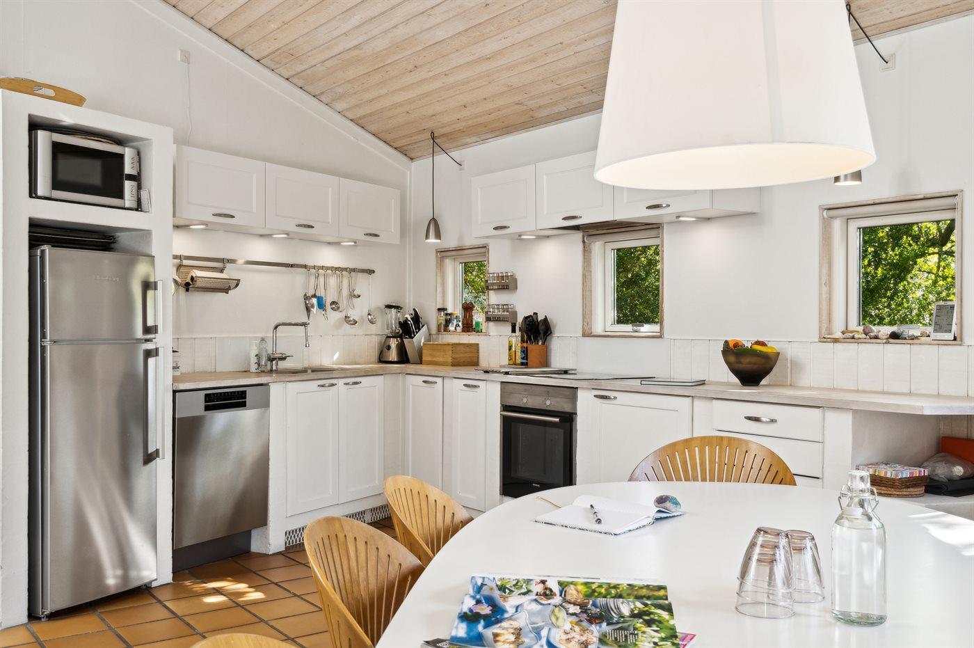 De keuken is uitgerust met koelkast Er is 4 inductiekookplaten, heteluchtoven, magnetron en vaatwasser.