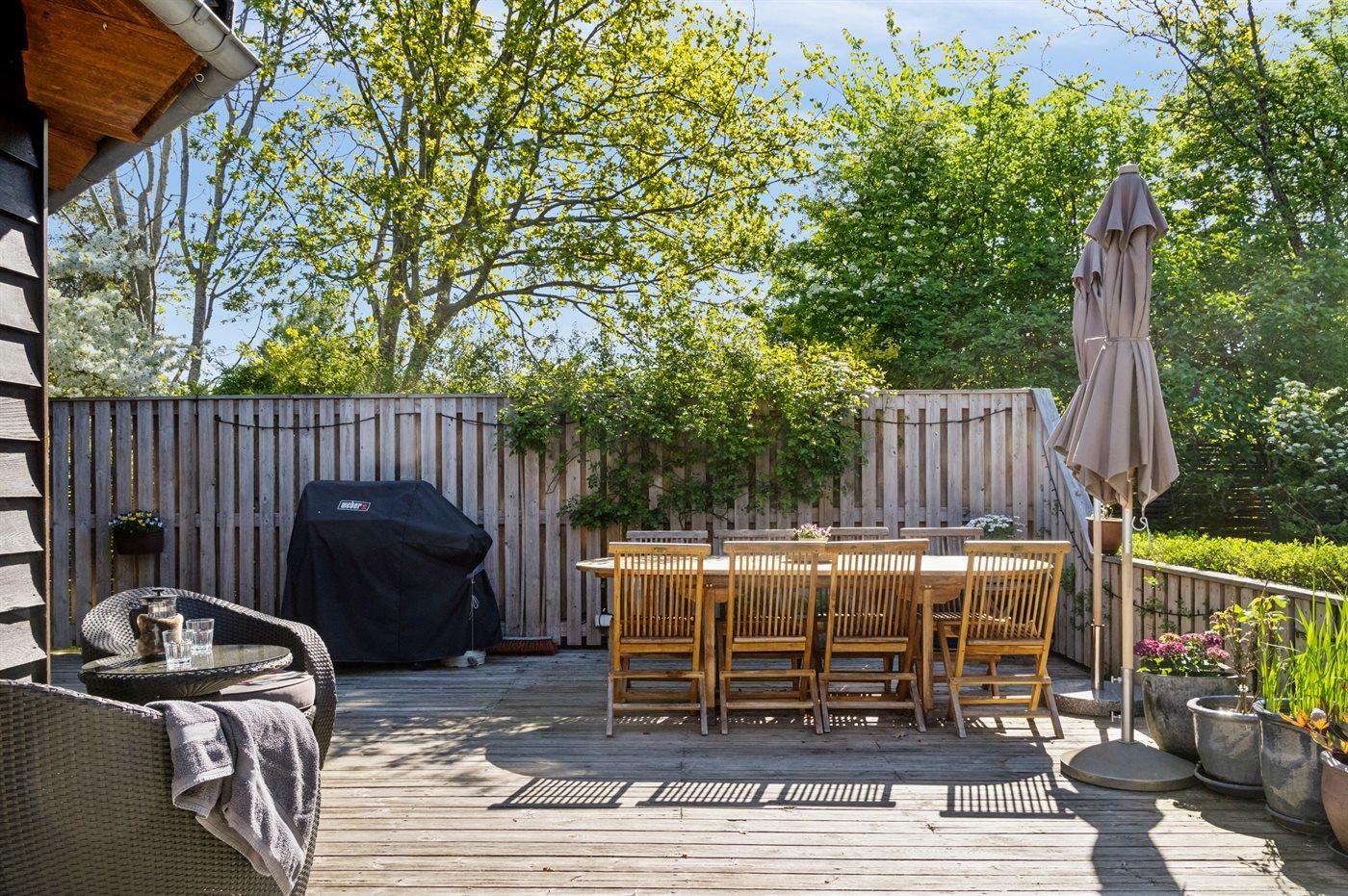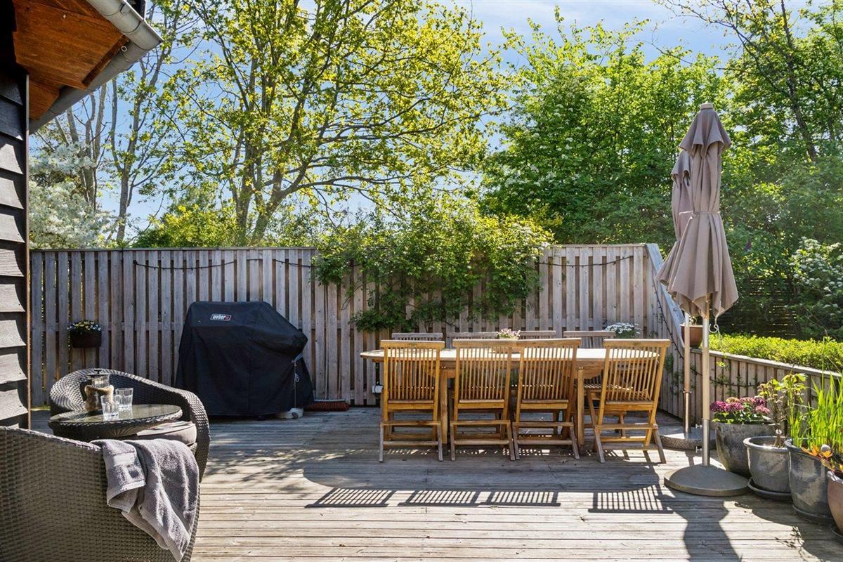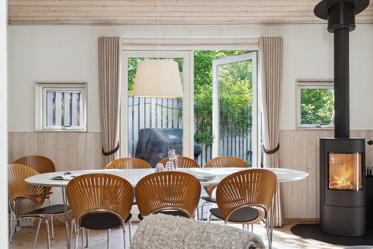 De vakantiewoning is gelegen op een 1231 m² groot aangelegde tuin. Afstand tot de zee 400 m. Dichtstbijzijnde winkel 2300 m. Bij de vakantiewoning hoort terras. Speelhuisje. Trampoline.Vuurplaats. Gasbarbecue ter beschikking. Parkeerplaats bij het huis.