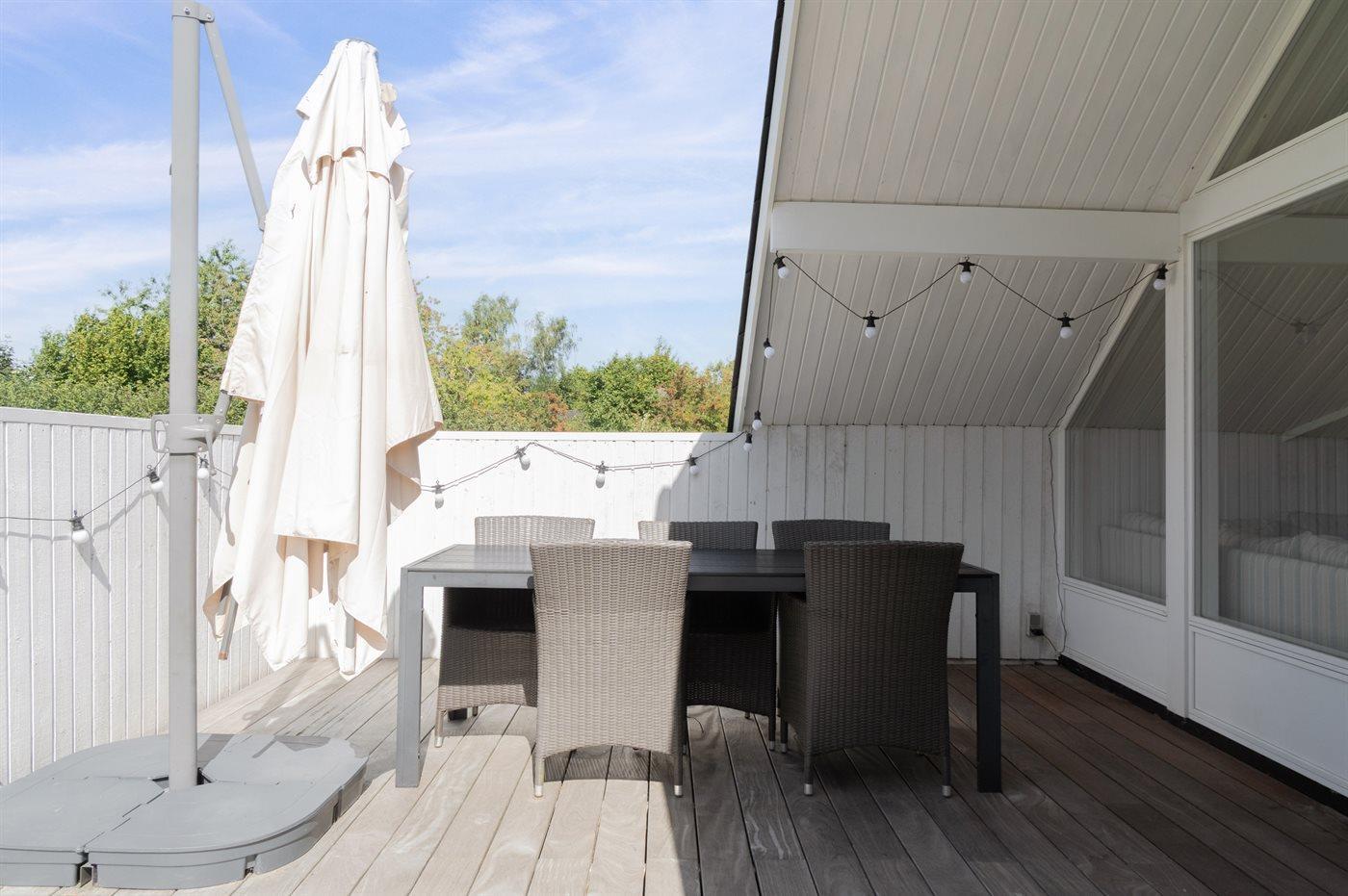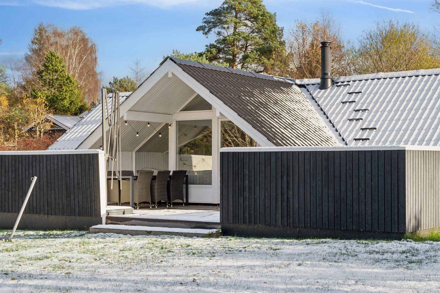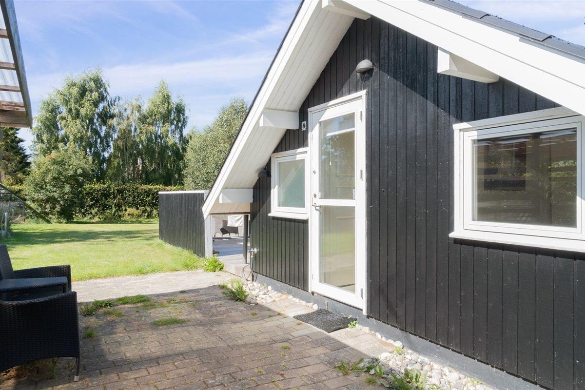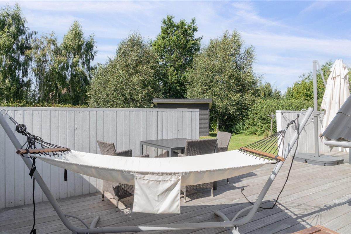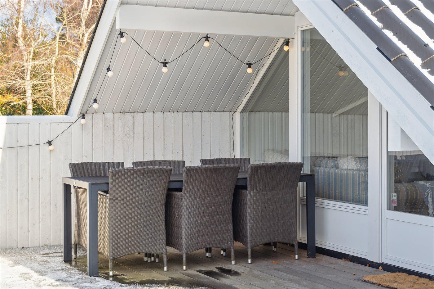 De vakantiewoning is gelegen op een 1209 m² groot aangelegde tuin. De grond is omheind. Afstand tot de zee 1300 m. Dichtstbijzijnde winkel 1500 m. Bij de vakantiewoning hoort terras. Daarnaast is er een overdekt terras. Barbecue. Carport ter beschikking. Parkeerplaats bij het huis.