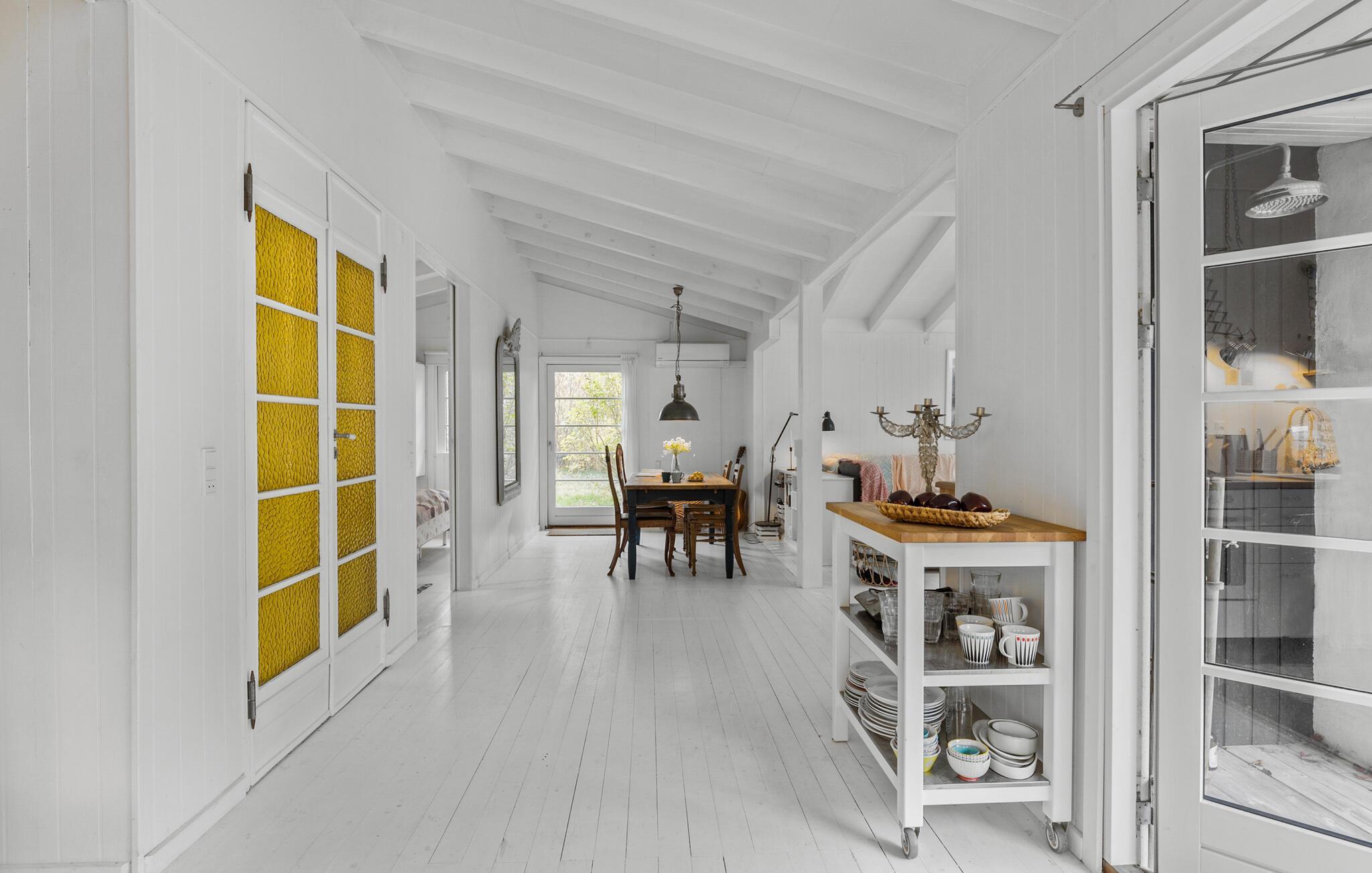 Binnen in het huis vind je een smaakvol, licht interieur dat je uitnodigt om te blijven hangen. Ontspan in de gezellige zithoek voor de open haard, die een aangename warmte uitstraalt, vooral op koelere avonden. Je kunt heerlijke maaltijden bereiden in de open keuken, die is uitgerust met alles wat je nodig hebt. Neem plaats aan de rustieke eettafel en geniet van de tijd samen met familie of vrienden. De combinatie van modern comfort en Scandinavische flair maakt dit vakantiehuis tot een bijzondere plek om te ontspannen.