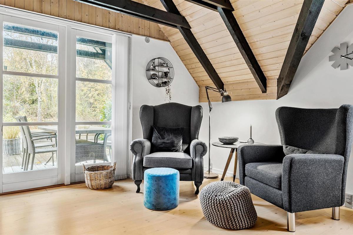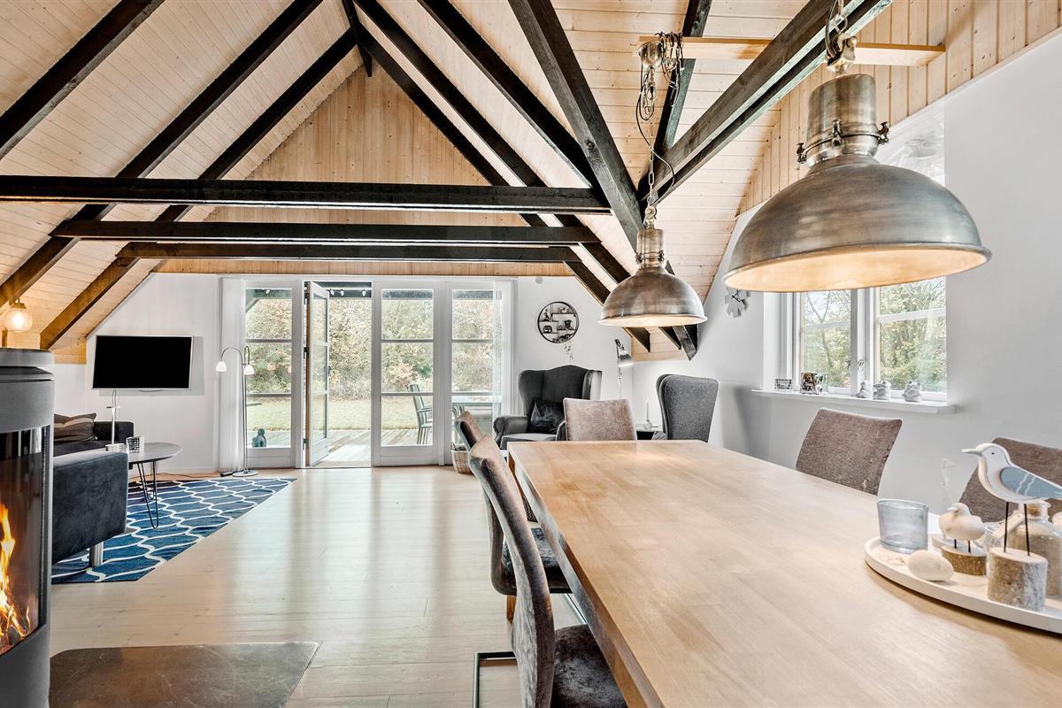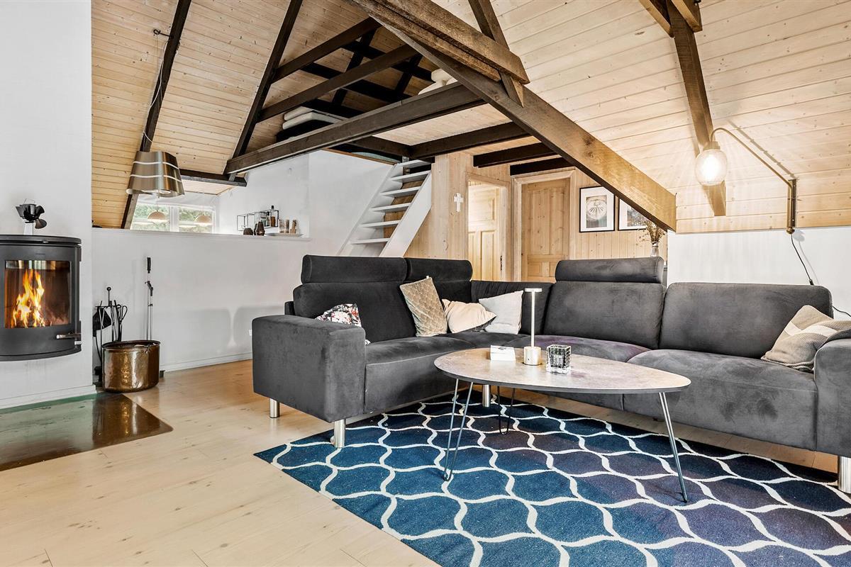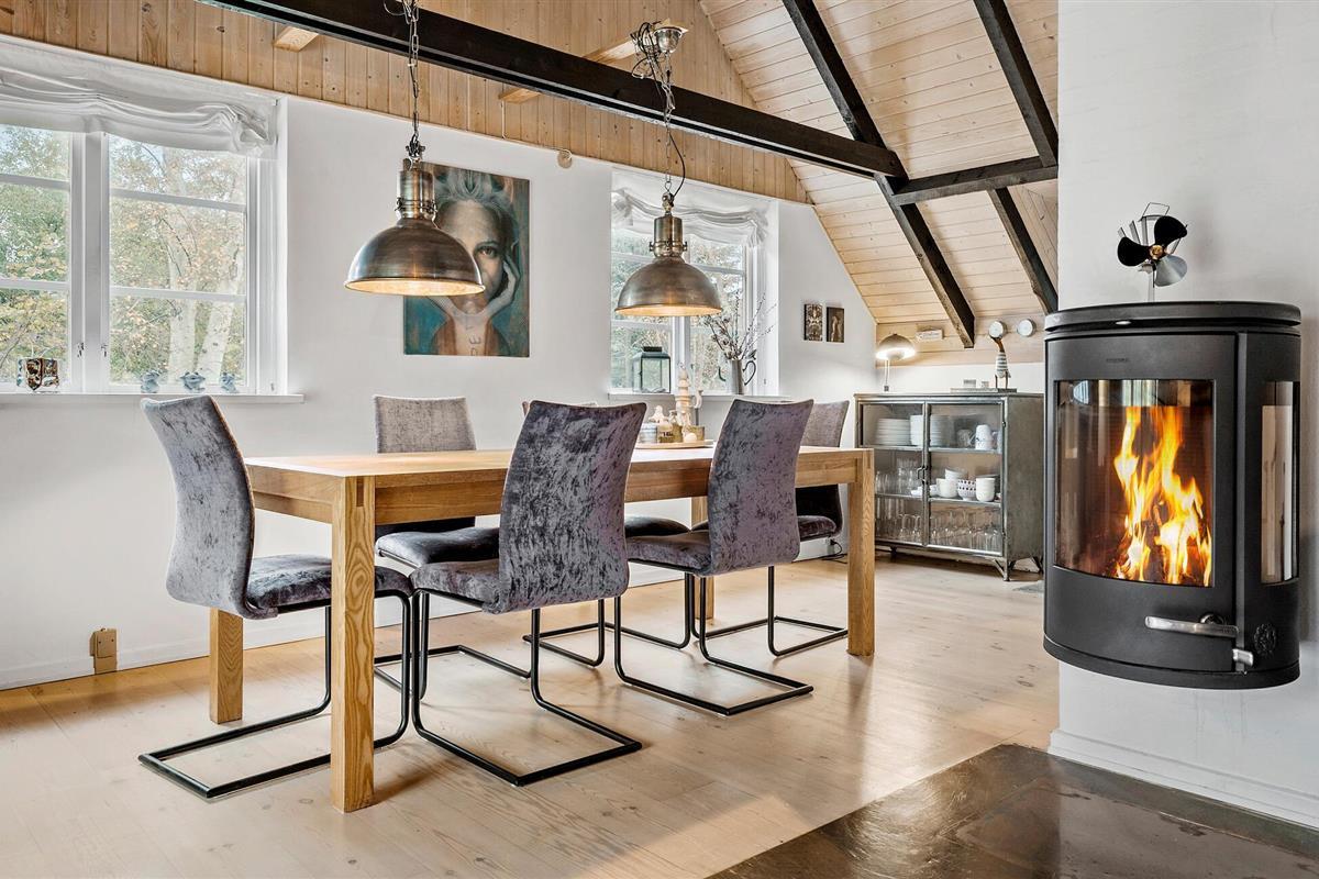 Geniet van een warme, gezellige sfeer in dit charmante vakantiehuis in de buurt van Udsholt Strand. De karaktervolle leefruimtes met schuine plafonds, houten lambrisering en opvallende dakbalken creëren een unieke, gezellige omgeving. De open slaapzolder is een bijzonder charmante kleine schuilplaats voor rustgevende nachten. Kom samen rond de open haard voor ontspannende uren van gezelligheid en spel, of geniet van lange, gezellige avonden op het gedeeltelijk overdekte houten terras. De groene tuin nodigt uit tot spelen en rondrennen - perfect voor gezinnen!