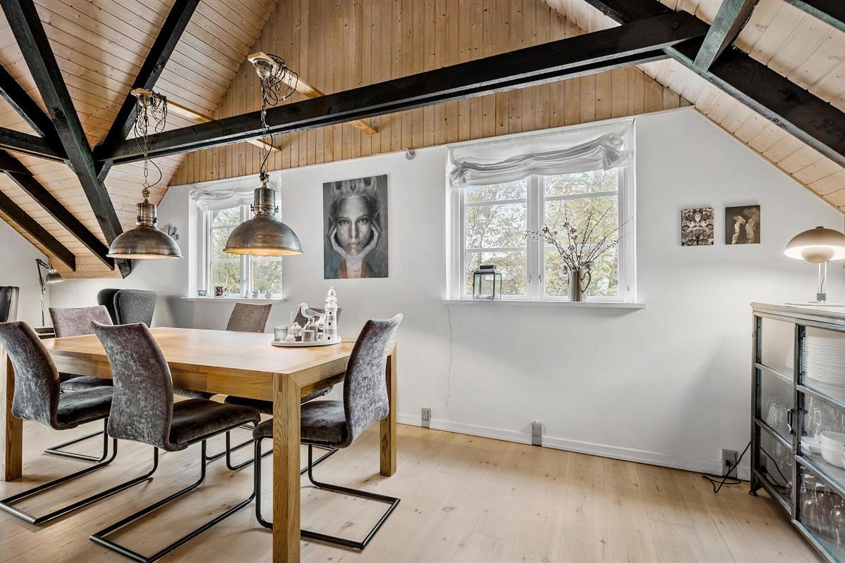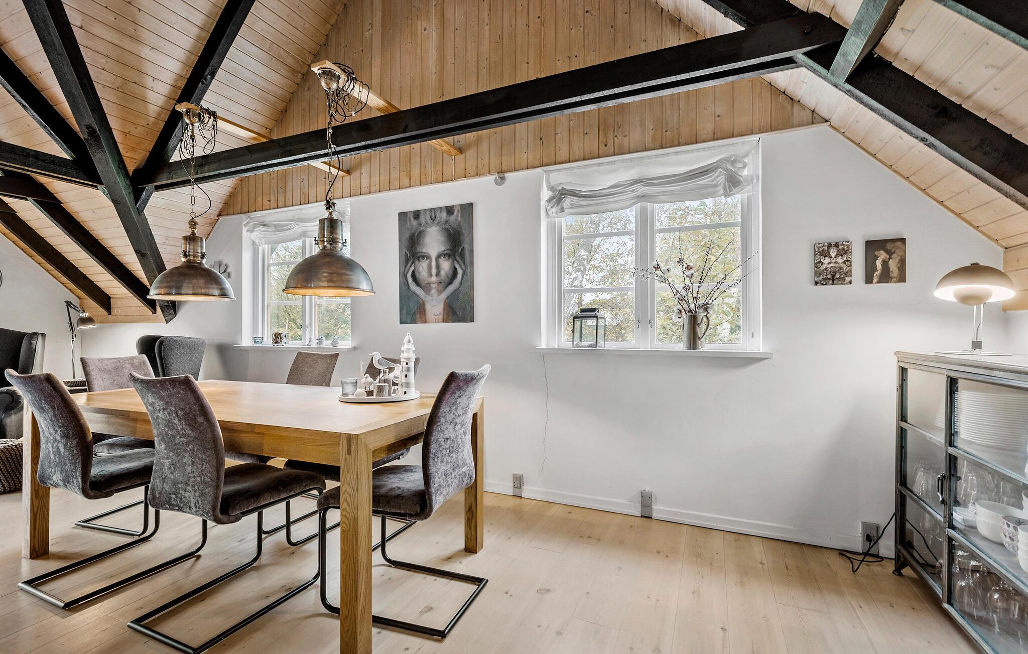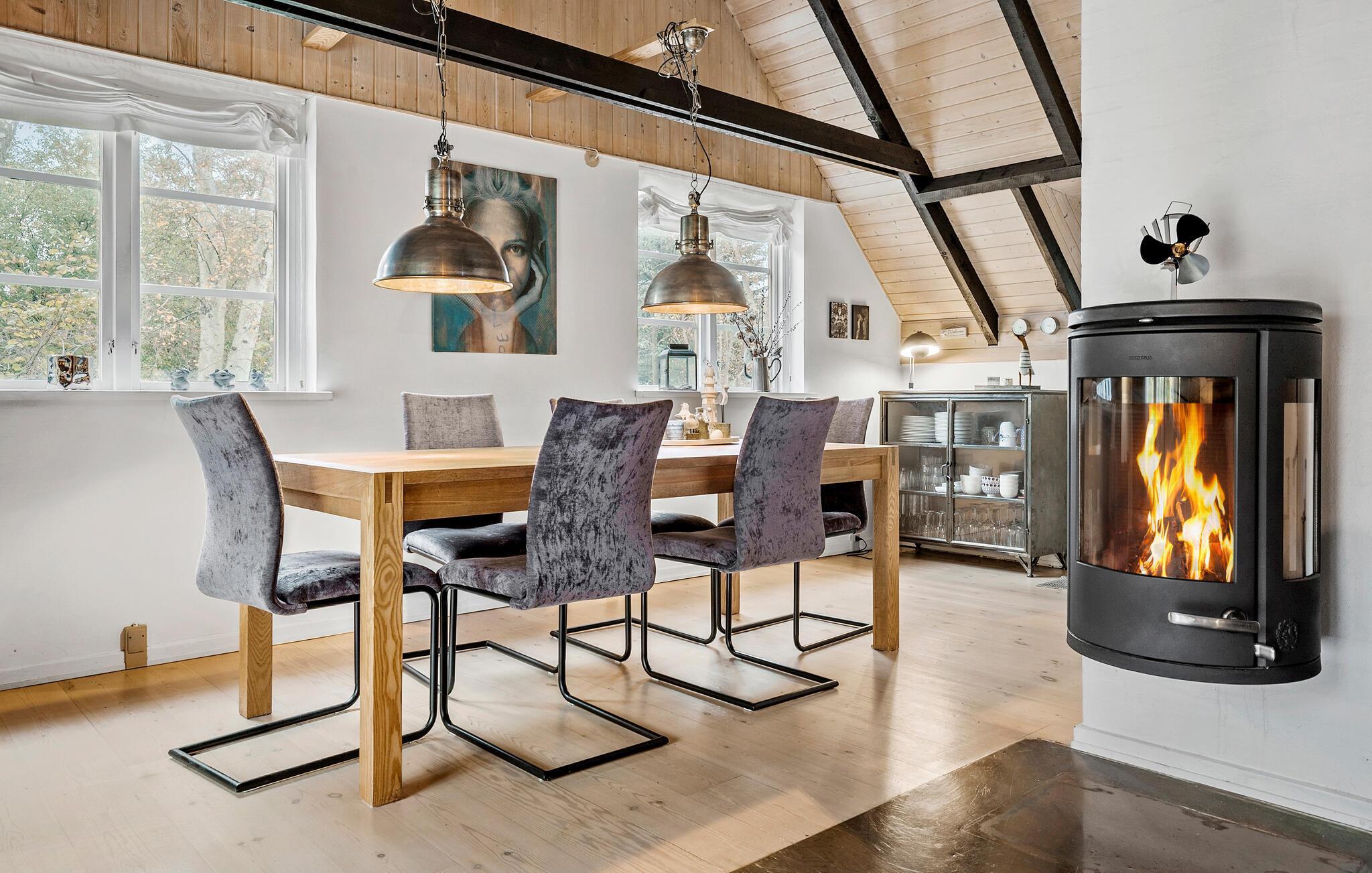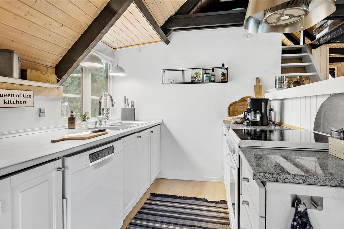Geniet van een warme, gezellige sfeer in dit charmante vakantiehuis in de buurt van Udsholt Strand. De karaktervolle leefruimtes met schuine plafonds, houten lambrisering en opvallende dakbalken creëren een unieke, gezellige omgeving. De open slaapzolder is een bijzonder charmante kleine schuilplaats voor rustgevende nachten. Kom samen rond de open haard voor ontspannende uren van gezelligheid en spel, of geniet van lange, gezellige avonden op het gedeeltelijk overdekte houten terras. De groene tuin nodigt uit tot spelen en rondrennen - perfect voor gezinnen!