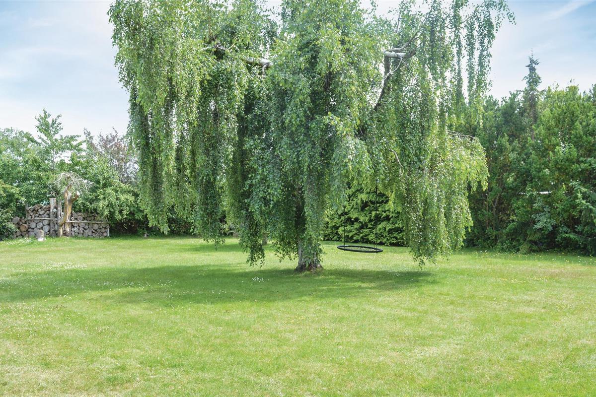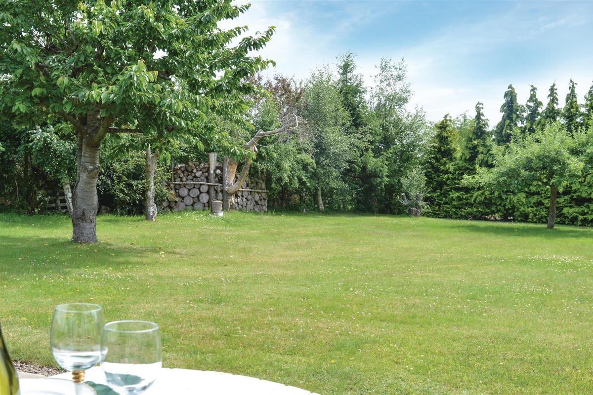 Modern en sfeervol vakantiehuis in Udsholt met tuin en open haard buiten.
