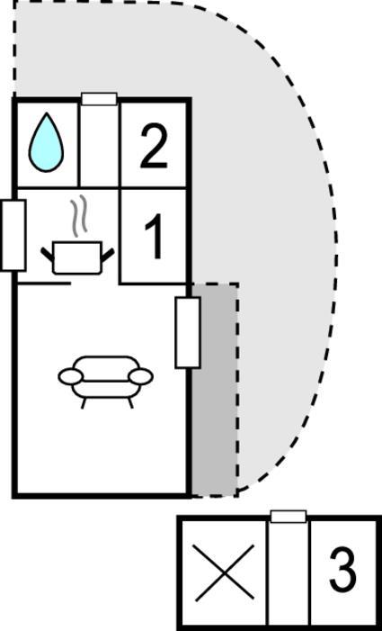 Badkamer 3m2 (nr. 1) - Toilet: warm en koud water. Douche