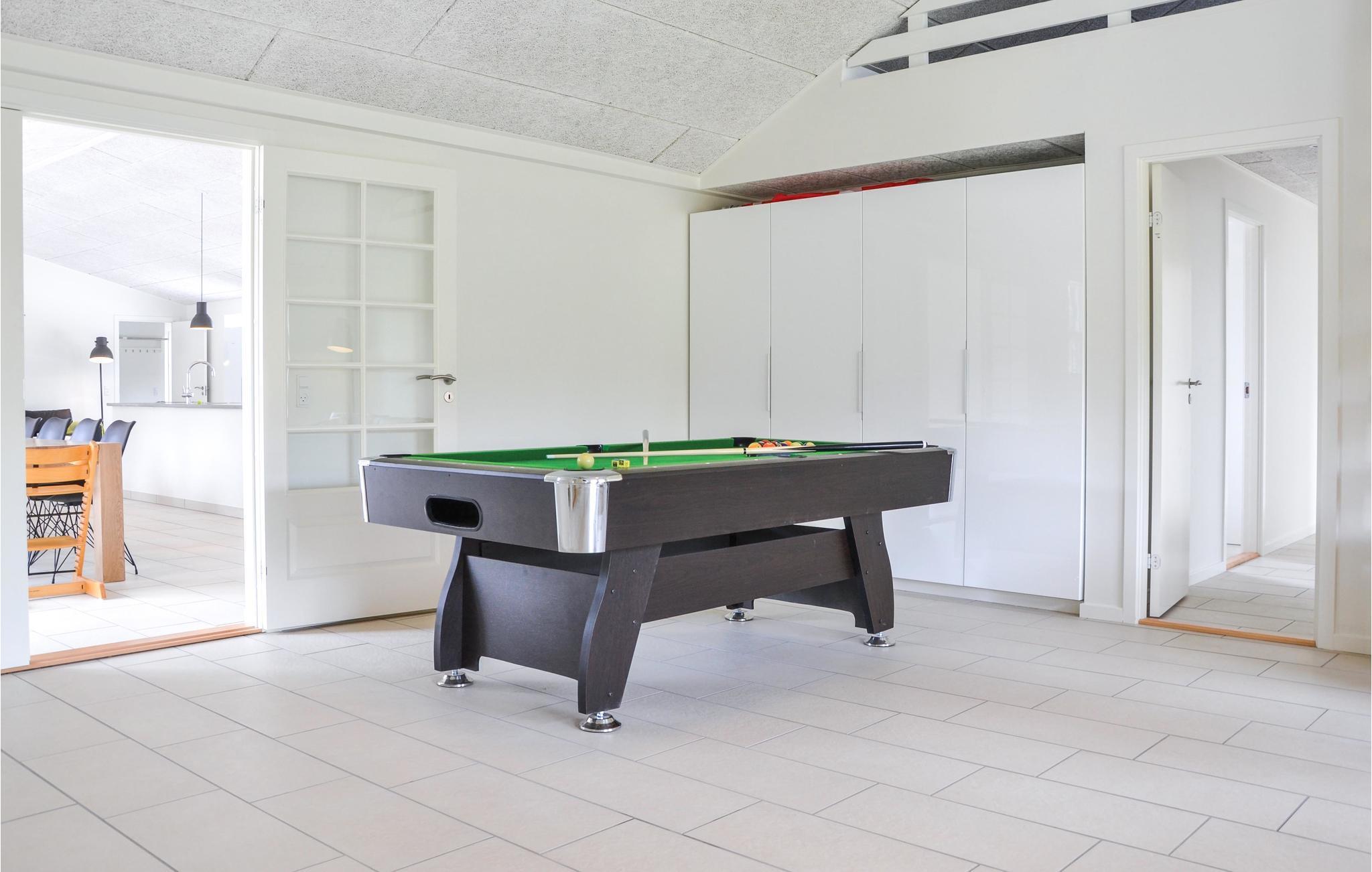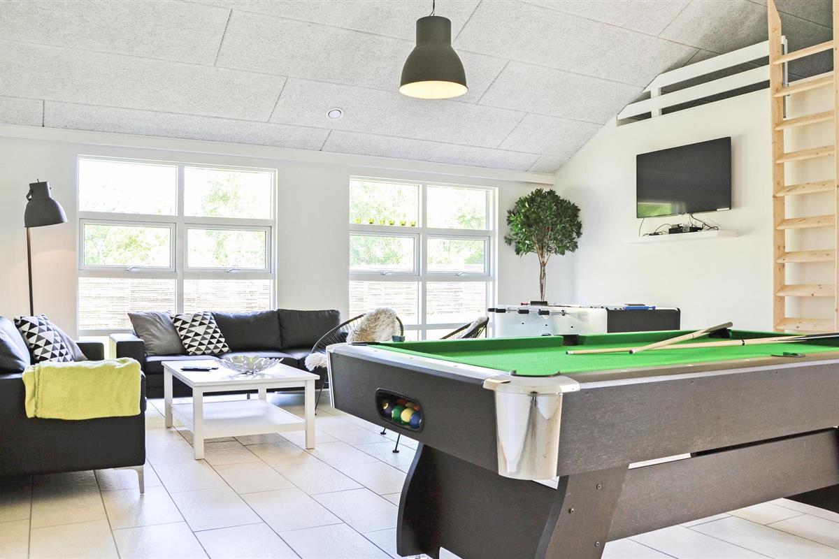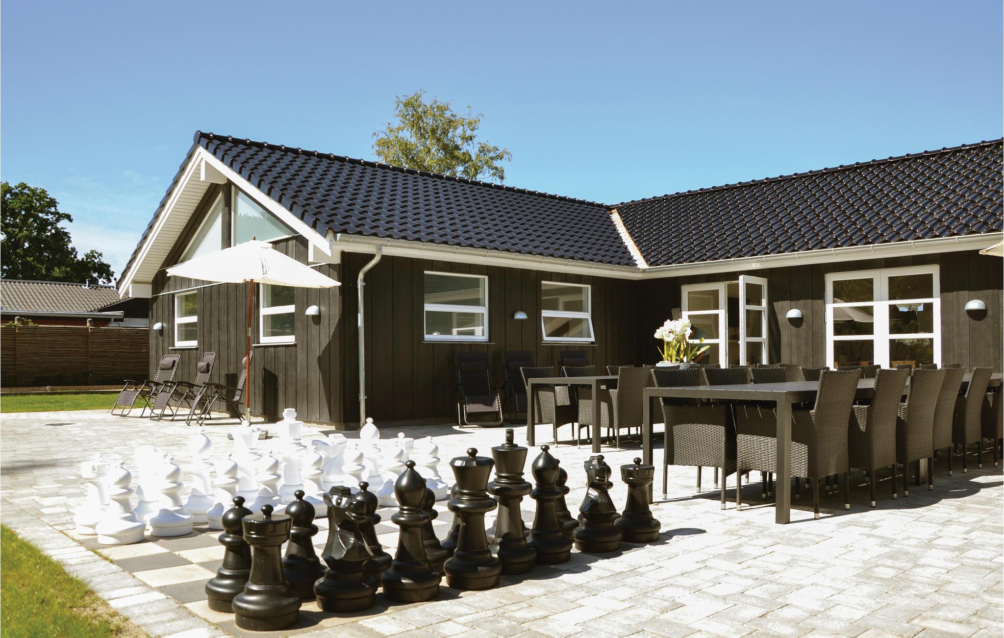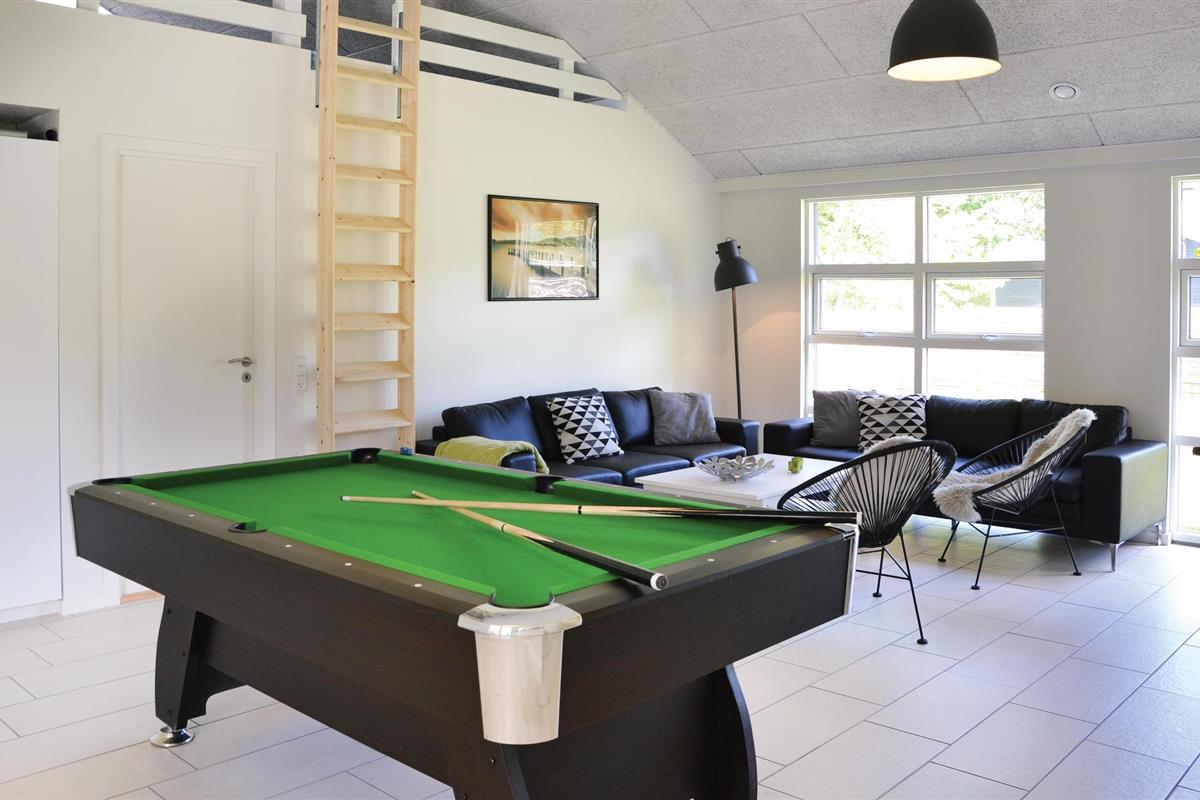 Dit prachtige vakantiehuis is ontworpen door een architect en gebouwd van de beste materialen. Aan elk detail is gedacht zodat uw vakantie een succes kan worden. Er zijn 12 slaapkamers in het huis, verdeeld in drie delen, zodat er genoeg ruimte is voor meerdere gezinnen. De tweepersoonsbedden kunnen indien nodig uit elkaar worden geschoven. De grote en bijzonder functionele keuken en de prachtige woonkamer zijn het hart van het huis en een natuurlijke ontmoetingsplaats, net als de activiteitenruimte. Daar kunt u gezellig biljarten. De keuken omvat een wasruimte waar u voorraden kunt opbergen. De zwembadkamer biedt plezier en ontspanning in het zwembad, ontspanning in de grote whirlpool en aansluitend aangename warmte in de sauna. Op het ruime perceel heeft u alle ruimte om buiten te ravotten en te spelen en een deel van het terras is betegeld als schaakbord. Ook kun je hier jeu de boules spelen. Je loopt niet ver naar het water, dat in elk jaargetijde een bezoek waard is. Er zijn veel mooie uitstapjes en prachtige natuurgebieden in de omgeving, er zijn kastelen en musea te ontdekken, en u rijdt in een klein uurtje naar de hoofdstad Kopenhagen. Welkom!
