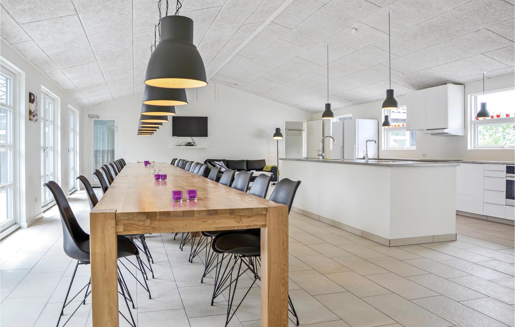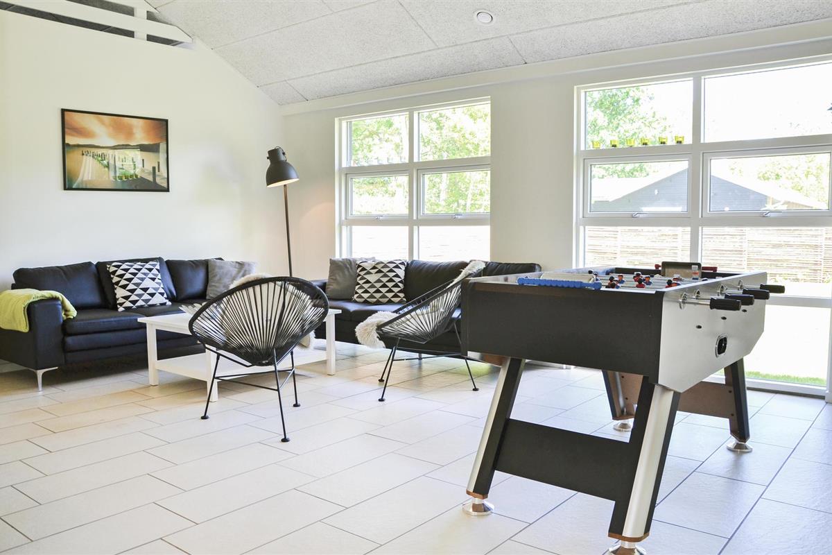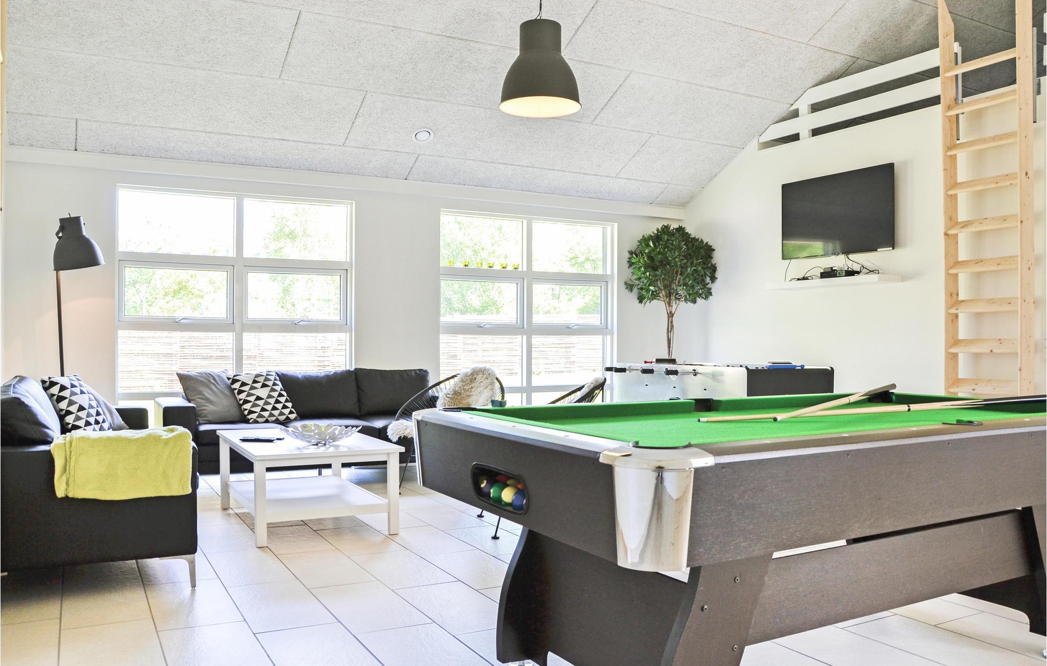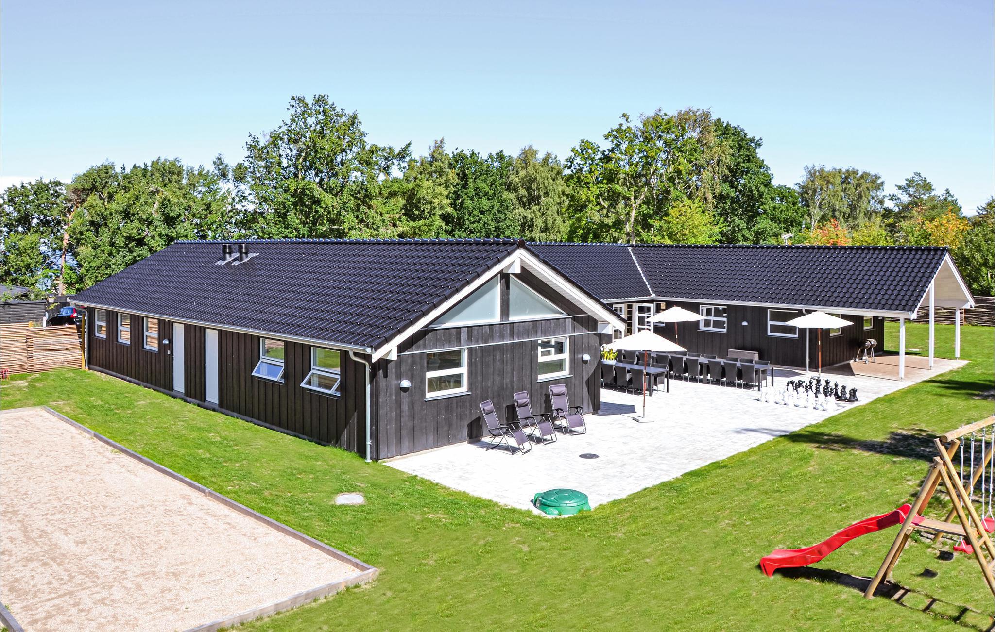 Dit prachtige vakantiehuis is ontworpen door een architect en gebouwd van de beste materialen. Aan elk detail is gedacht zodat uw vakantie een succes kan worden. Er zijn 12 slaapkamers in het huis, verdeeld in drie delen, zodat er genoeg ruimte is voor meerdere gezinnen. De tweepersoonsbedden kunnen indien nodig uit elkaar worden geschoven. De grote en bijzonder functionele keuken en de prachtige woonkamer zijn het hart van het huis en een natuurlijke ontmoetingsplaats, net als de activiteitenruimte. Daar kunt u gezellig biljarten. De keuken omvat een wasruimte waar u voorraden kunt opbergen. De zwembadkamer biedt plezier en ontspanning in het zwembad, ontspanning in de grote whirlpool en aansluitend aangename warmte in de sauna. Op het ruime perceel heeft u alle ruimte om buiten te ravotten en te spelen en een deel van het terras is betegeld als schaakbord. Ook kun je hier jeu de boules spelen. Je loopt niet ver naar het water, dat in elk jaargetijde een bezoek waard is. Er zijn veel mooie uitstapjes en prachtige natuurgebieden in de omgeving, er zijn kastelen en musea te ontdekken, en u rijdt in een klein uurtje naar de hoofdstad Kopenhagen. Welkom!