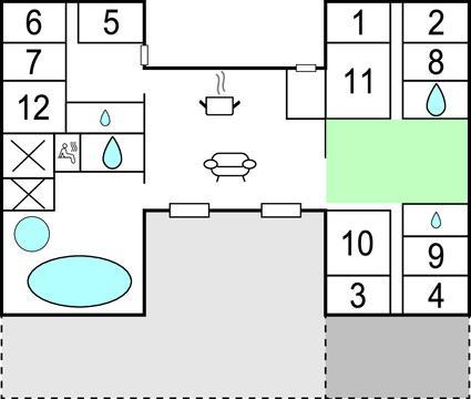 Slaapkamer 8m2 (nr. 9) - 2 Slaapplaatsen. (1-persoonsbed(den)).