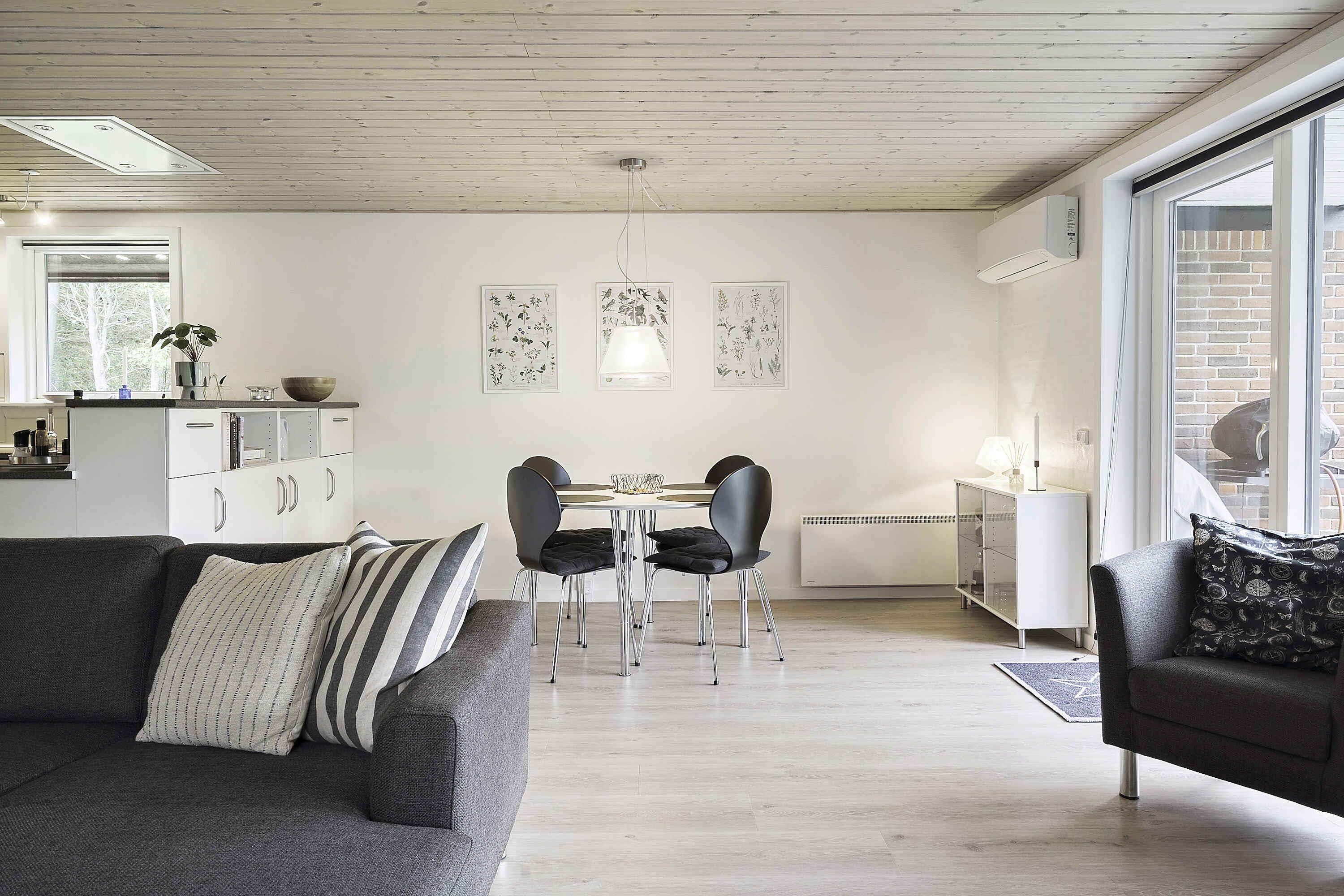 Dit betoverende vakantiehuis is als een schat verborgen in het hart van Ulfborg, West-Jutland. Met een ongeëvenaarde locatie opent het huis de deur naar een wereld van fantastische ervaringen. Op slechts 400 meter van het huisje strekt zich een kindvriendelijk strand uit en een charmante rubberboothaven bij Nissum Fjord nodigt uit tot avontuur. Als u een grotere strandervaring nodig heeft, bereikt u de majestueuze Noordzee in slechts 10 minuten rijden. Tegelijkertijd is dit vakantiehuis omgeven door natuurlijke schoonheid, omringd door bossen en een netwerk van paden die om ontdekking vragen. Stap binnen in de gezellige sfeer van het huisje, waar drie kamers wachten om je te omarmen. Twee slaapkamers bieden eenpersoonsbedden en de derde verwent met een comfortabel tweepersoonsbed - in totaal ruimte voor vier personen. De woning biedt meer dan kamers alleen: een goed ingerichte inkomhal en bijkeuken met voorzieningen als wasmachine, wasdroger en wastafel. Een licht betegelde badkamer met vloerverwarming en moderne armaturen nodigt u uit om te ontspannen. De nieuwe, stijlvolle laminaatvloeren en ramen uit 2021 geven een gevoel van elegantie. De keuken presenteert zich prachtig met witte armaturen en een halve wand die hem gedeeltelijk scheidt van de woonkamer, waar een houtkachel uit 2020 zorgt voor warmte en sfeer. Vanaf hier leiden deuren naar een gedeeltelijk overdekt terras op het zuiden dat lonkt met zijn schoonheid en rustgevende uitzichten. Dit vakantiehuis is niet zomaar een bestemming, het is een beleving. Een kans om je terug te trekken, rust te vinden en tegelijkertijd verrijkt te worden door alles wat de omgeving te bieden heeft. Of u nu de schilderachtige paden wilt verkennen, de plons van de Noordzee wilt voelen of u wilt laten verleiden door de lokale cultuur, dit vakantiehuis heeft de sleutel tot alles.